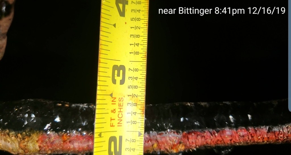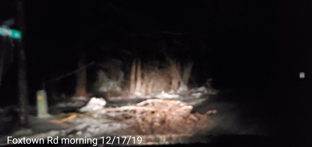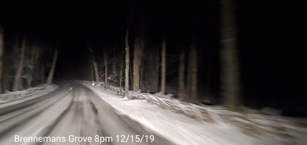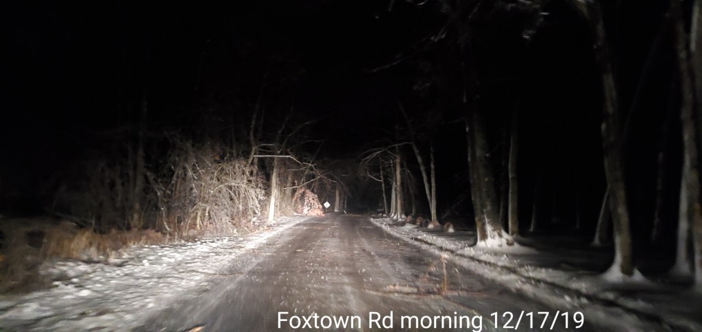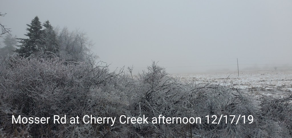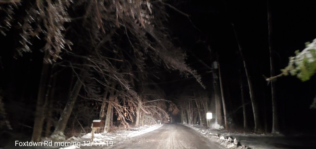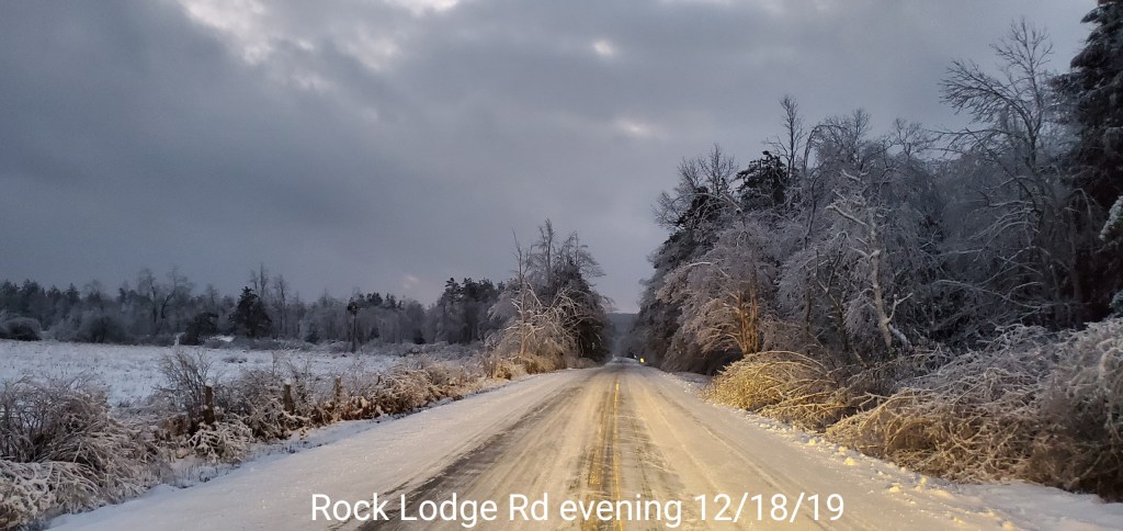 Freezing rain amounts, always a difficult judgement as freezing rain varies object to object. If its wind faced, if its marginal more can run to the end of tree limbs vs the upper parts etc…that said .4 to .6 range was common.