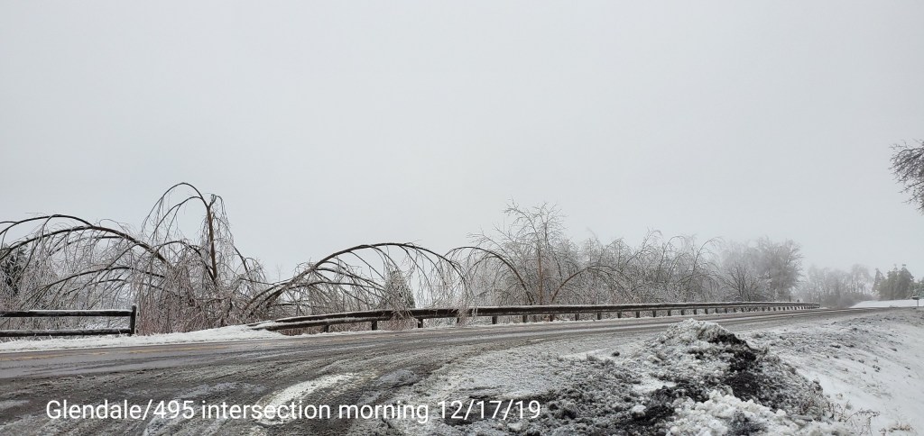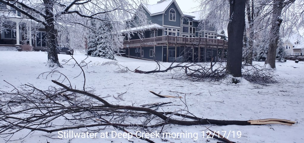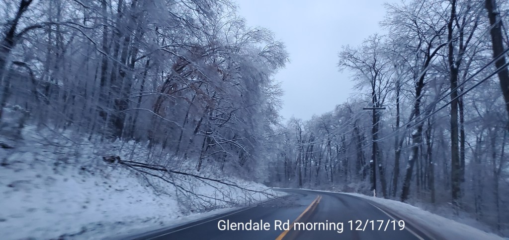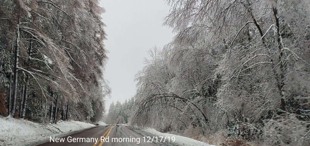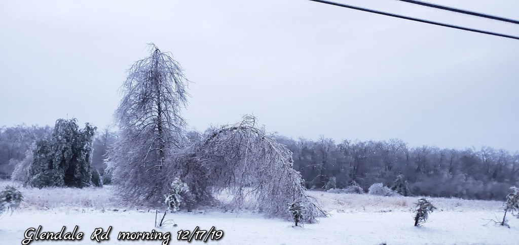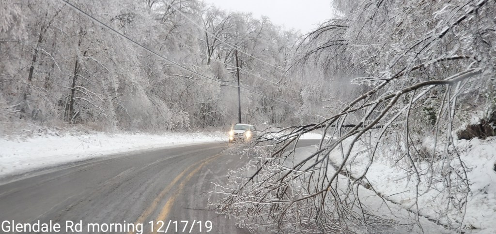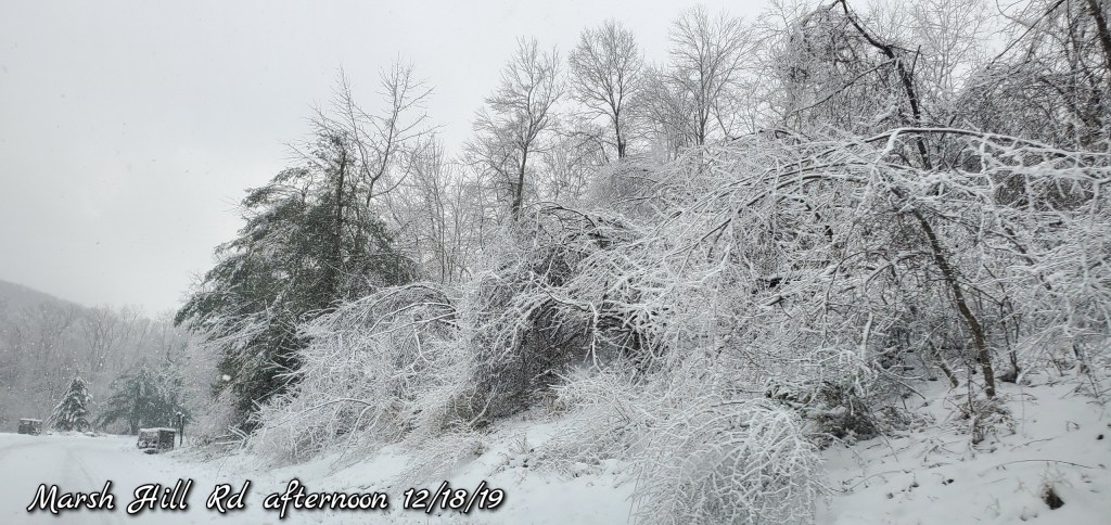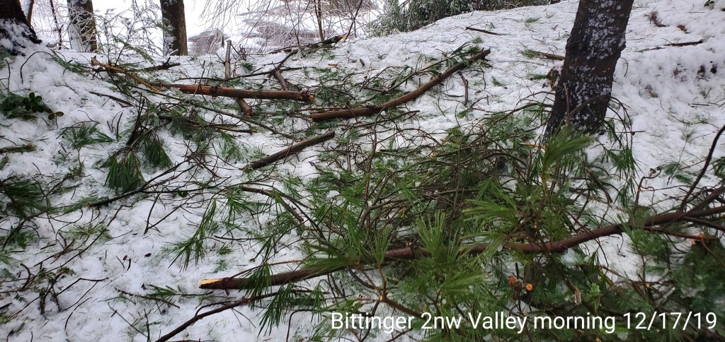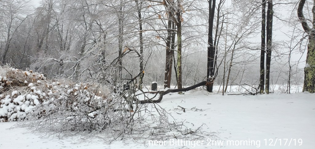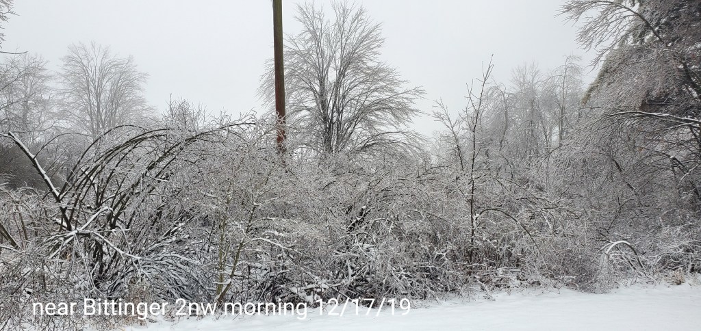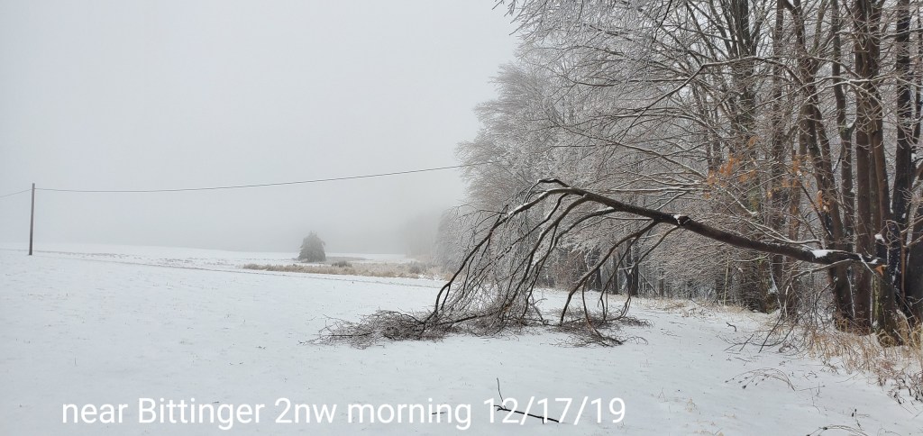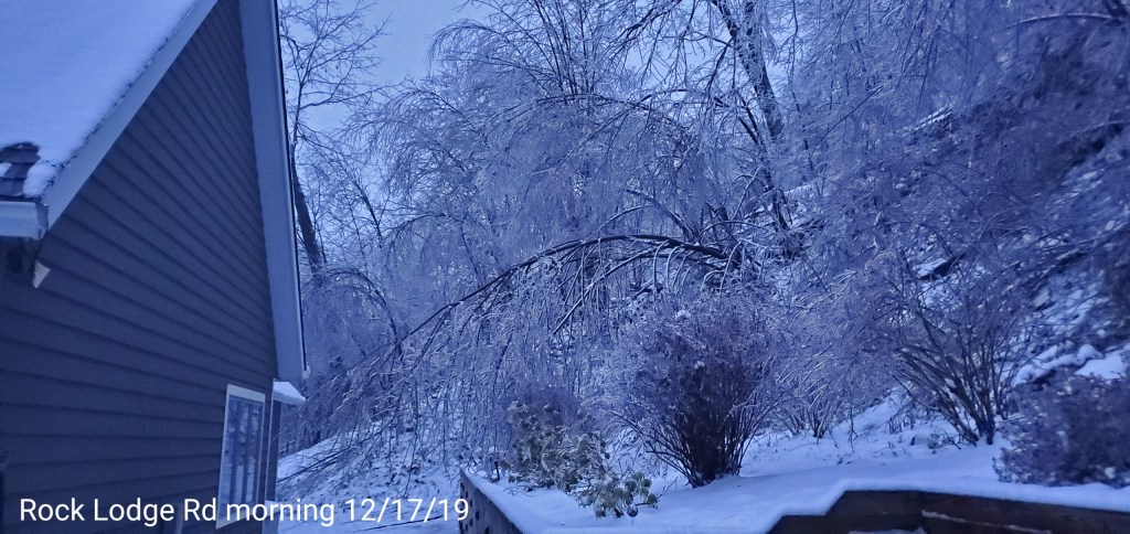 Snow overnight, changing to freezing rain in the morning. Plain rain Wv high ground. Light freezing rain through the day, increasing in coverage and intensity late day and by overnight, the tree load was greatly increasing.