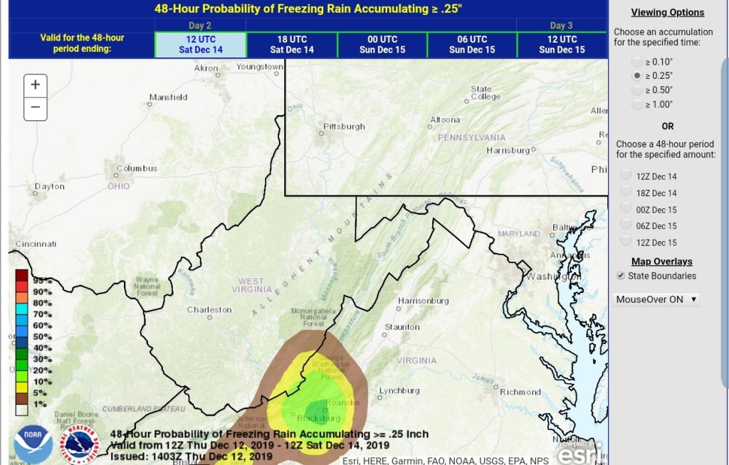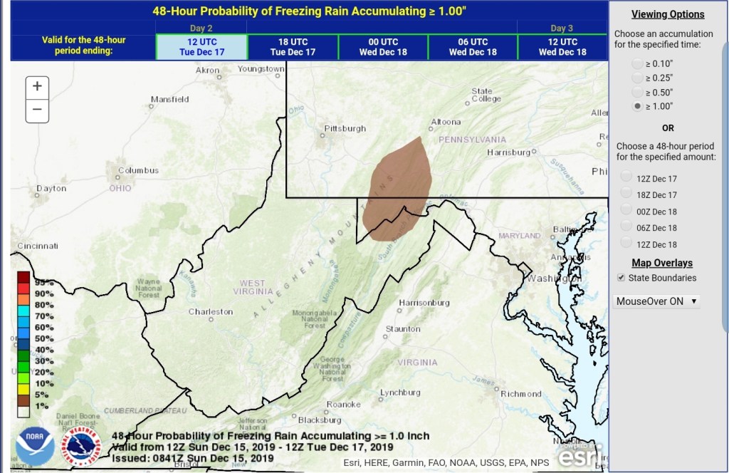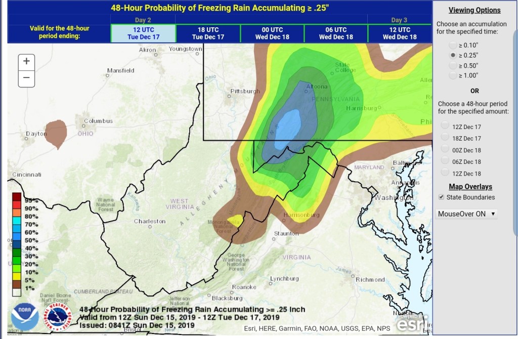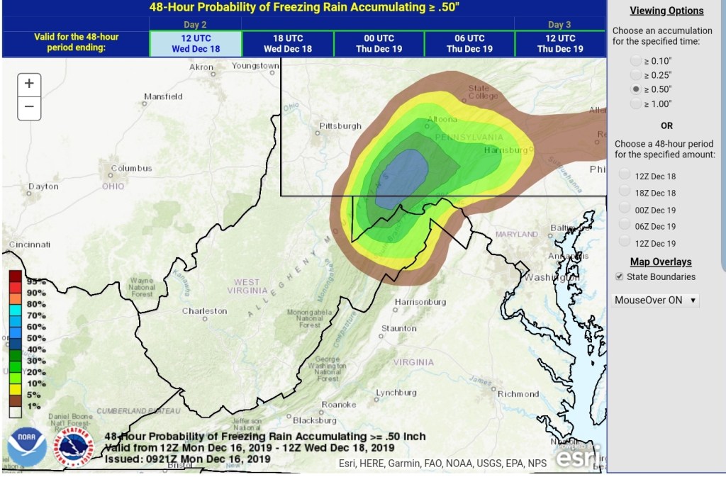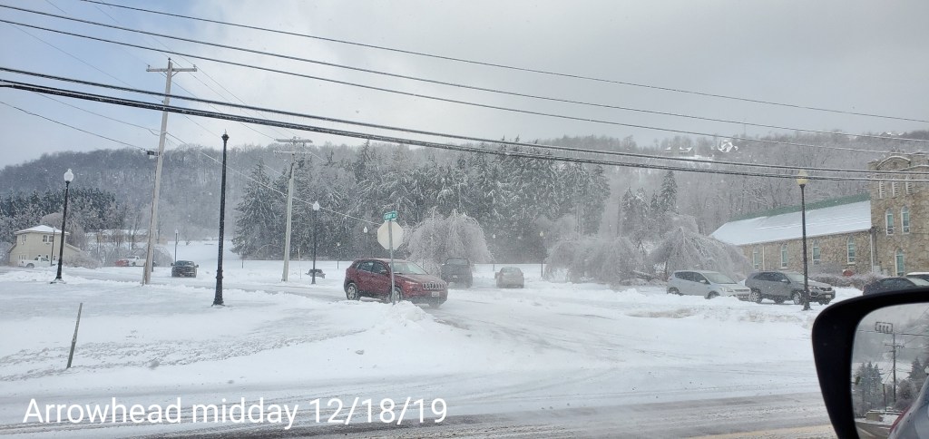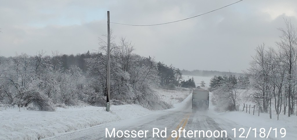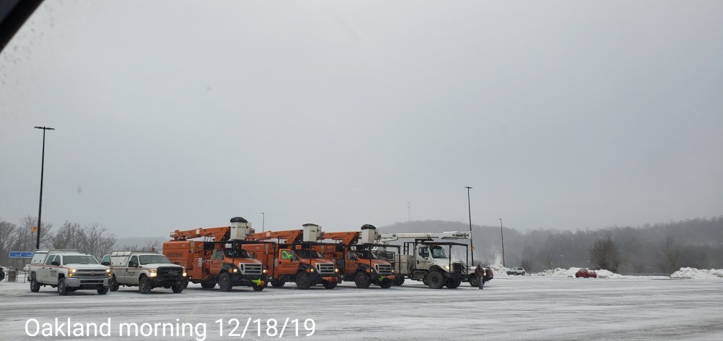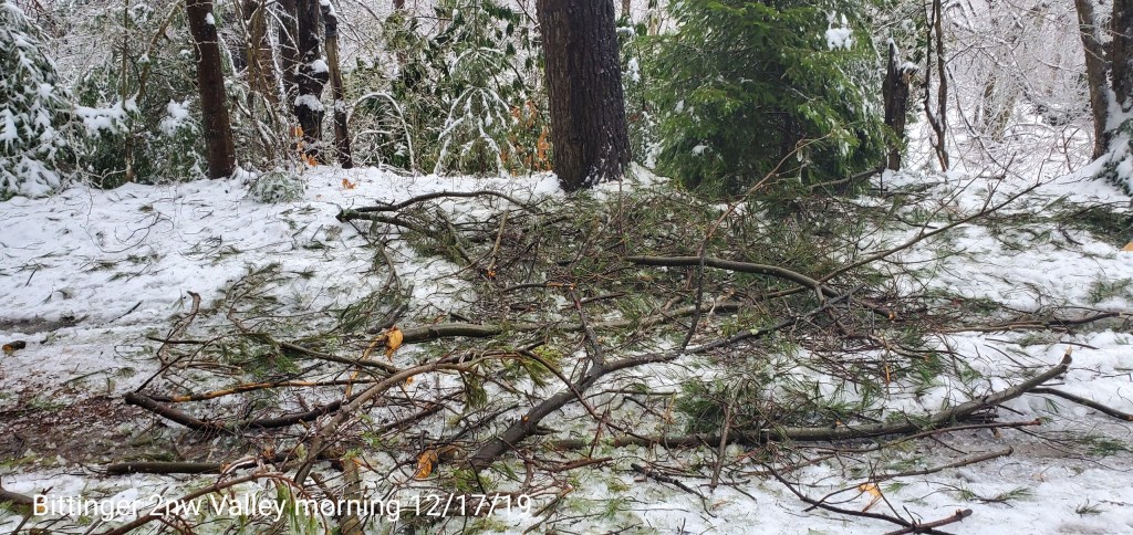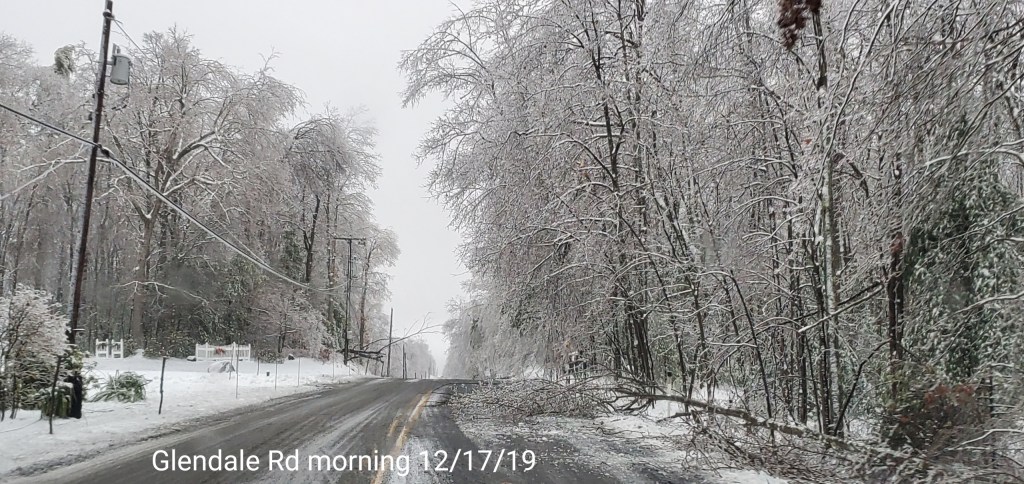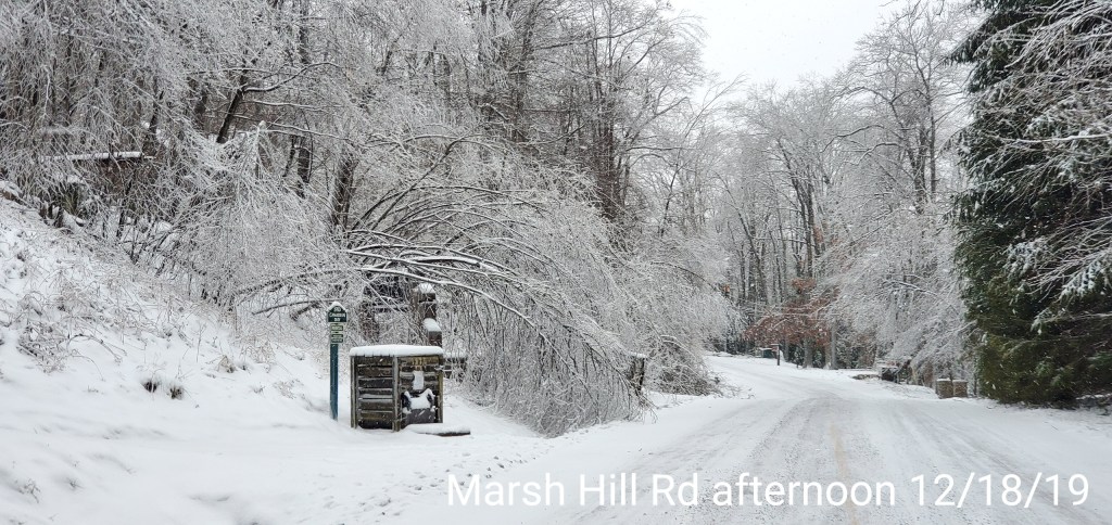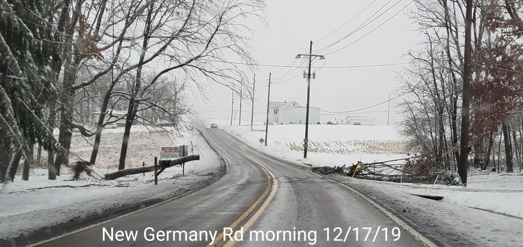 Snow overnight, changing to freezing rain in the morning. Plain rain Wv high ground. Light freezing rain through the day, increasing in coverage and intensity late day and by overnight, the tree load was greatly increasing.