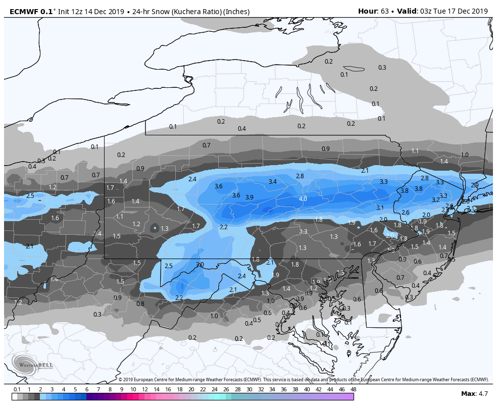 Some quick views of the latest model guidance for snowfall that begins first in the Wv high ground midday, early afternoon tomorrow, early to mid afternoon north of Canaan.