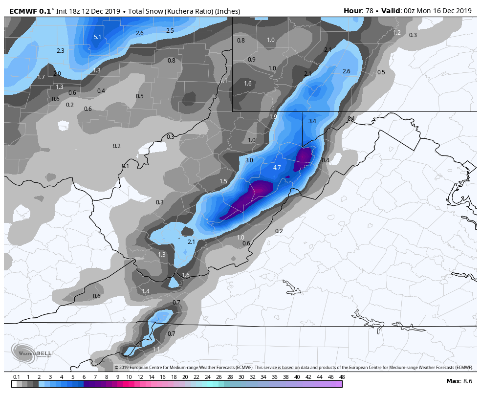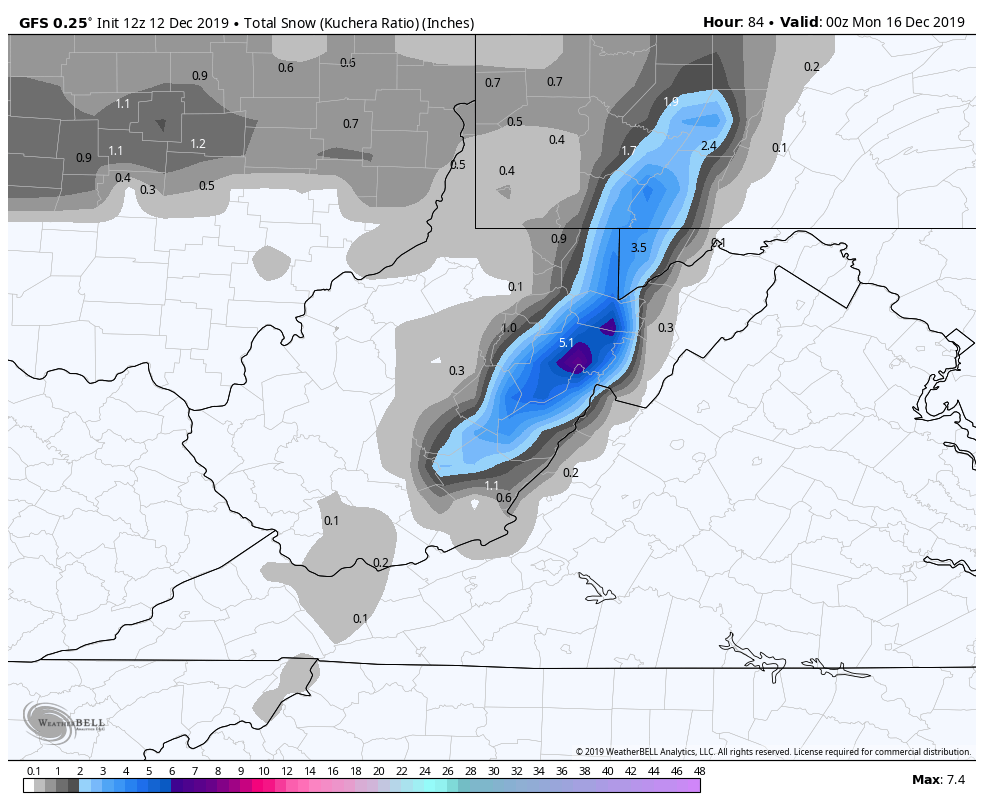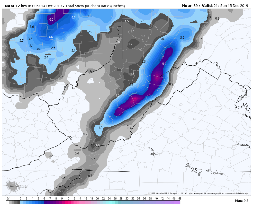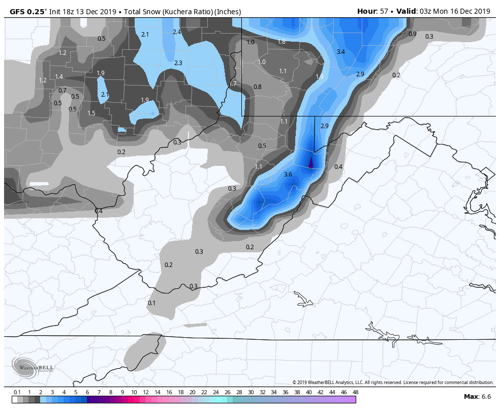 Overall looks like a 3-6″ event Wv high ground, as always I lean low to mid and allow for a good performance to achieve the high en .