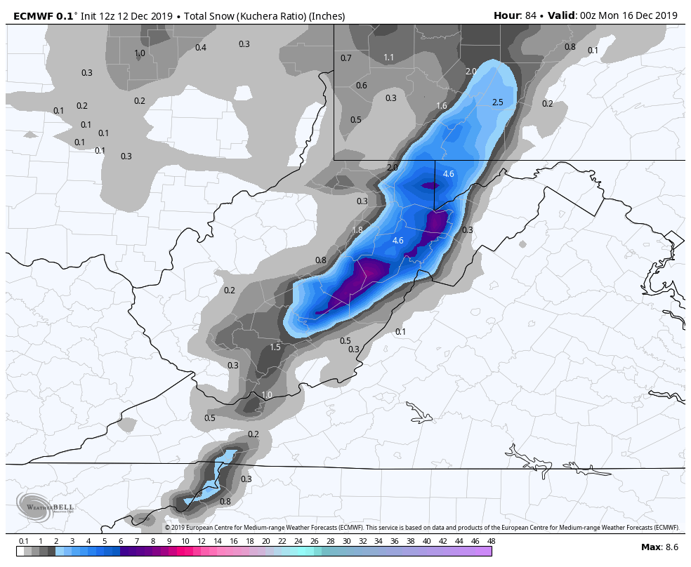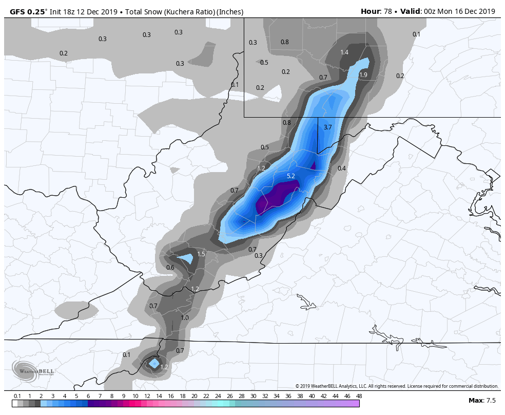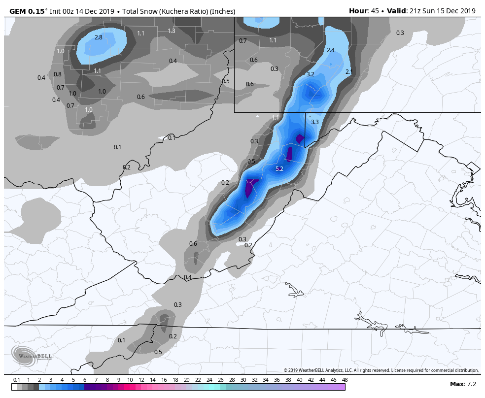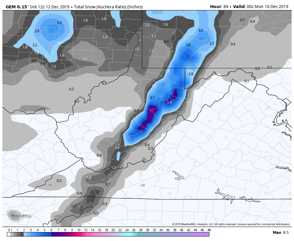 Overall looks like a 3-6″ event Wv high ground, as always I lean low to mid and allow for a good performance to achieve the high en .