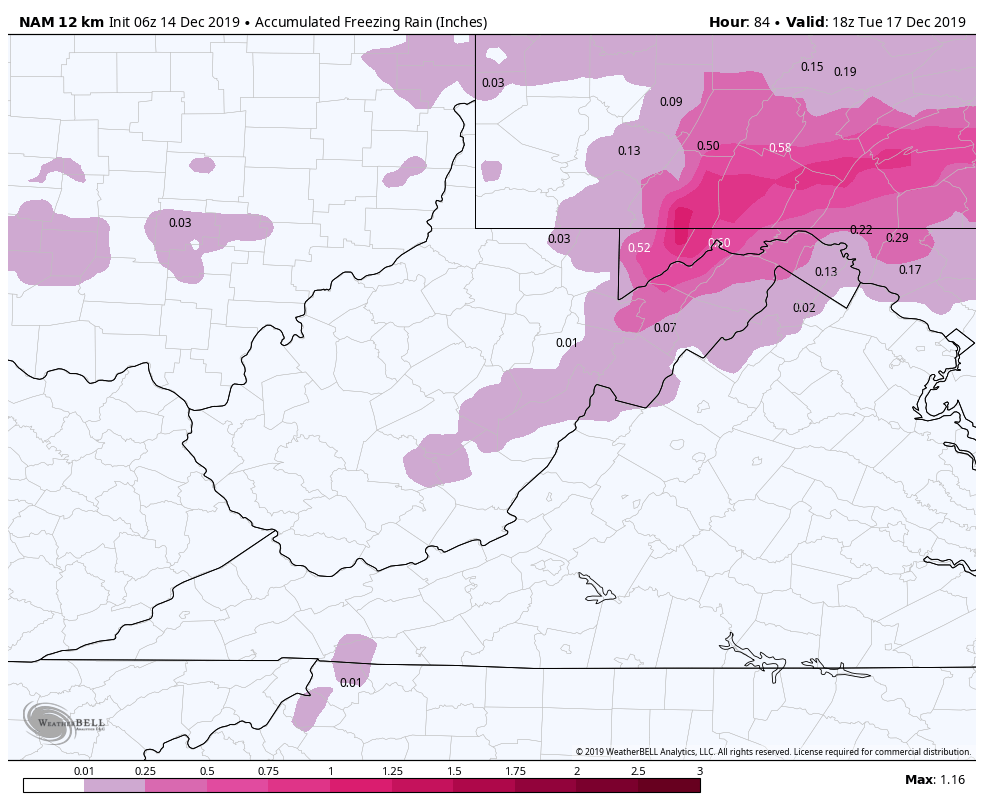 East facing ridges could see in excess of .5 total ice accretion as we go through tonight.