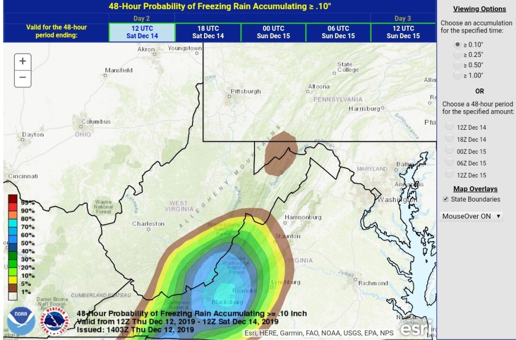 Ice- which for the southern areas mainly comes in early tomorrow, and then watch for lingering cold pockets tomorrow night in the deeper valleys. More widespread initially.