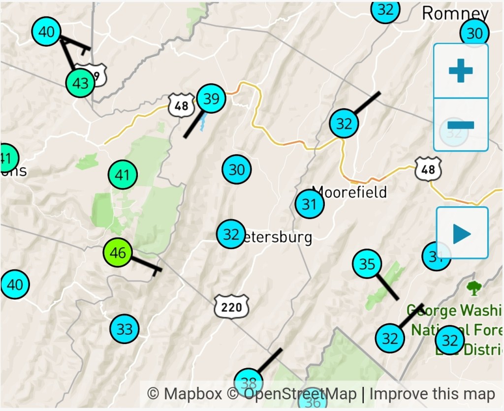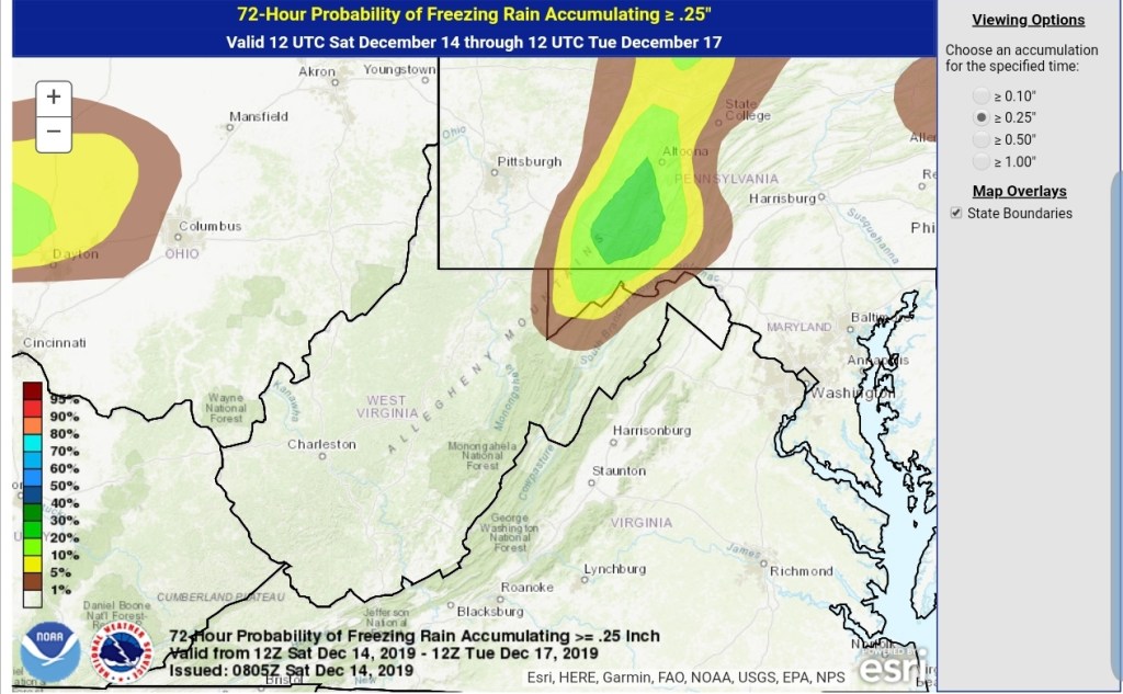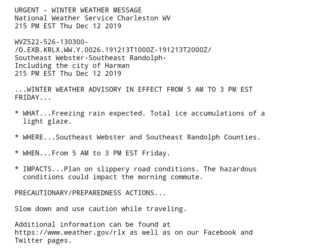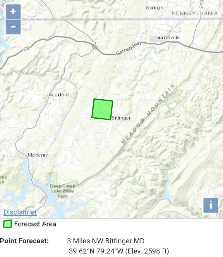 From east of 219 and near Sand Flat to the Swanton area, angle to Mt.Storm, and points north, northeast this looks to be a duration ice event. Stay tuned.