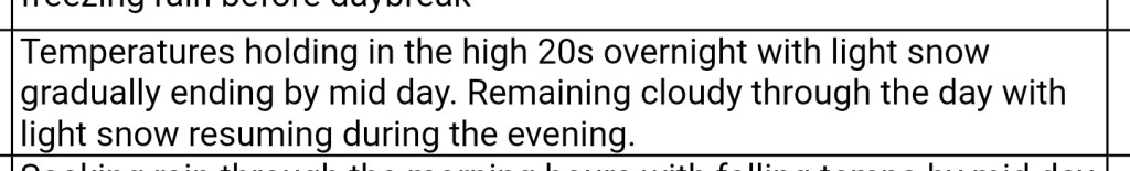 It would not at all be surprising if some of these areas never got above freezing with the event and it’s a event that’s moisture loaded. I would suspect the winter weather advisories may change to ice storm warnings in these areas. We shall see.