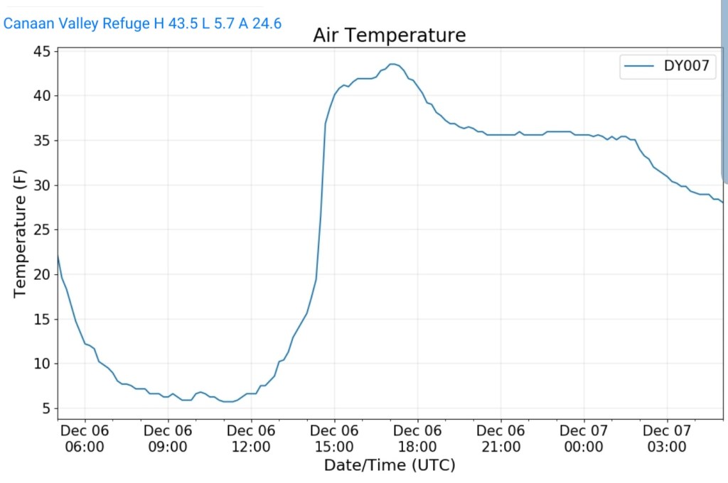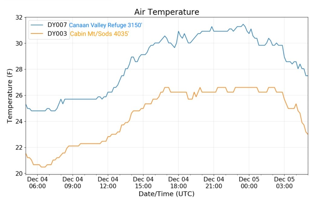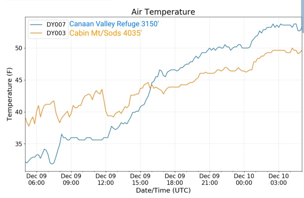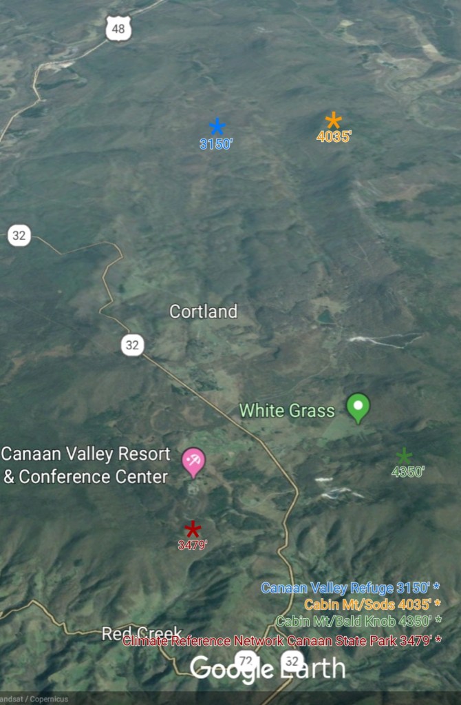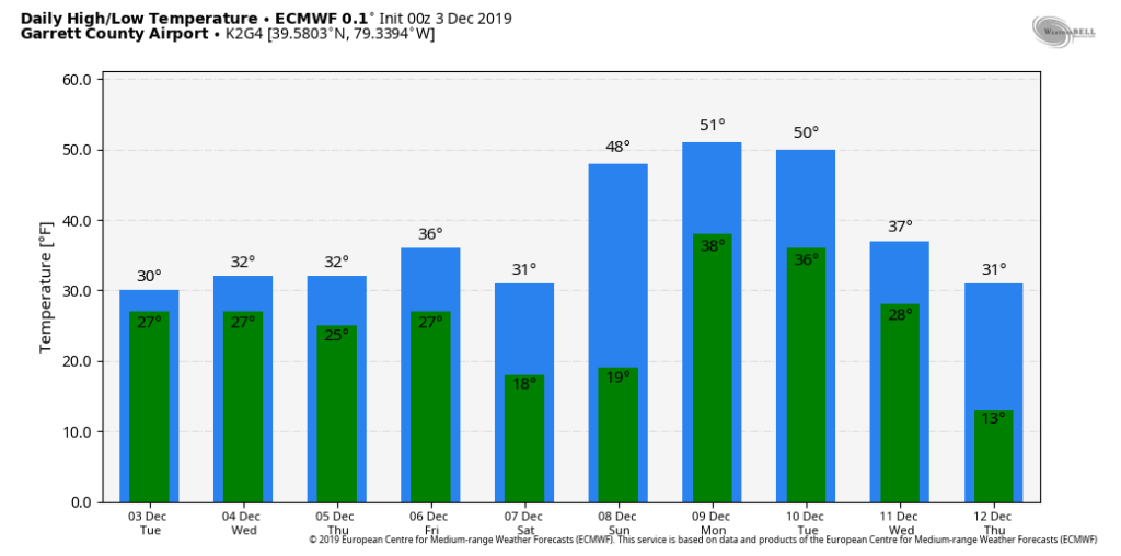 Friday temps into the weekend off the 3km Nam, and the ICON model with windstream. The ICON handles these situations well, but the 3km Nam being king. That said, it’s likely a tad too cold. Beginning with a zoomed in look at Garrett and then expanded back with another look at the 3km Nam, with the ICON last