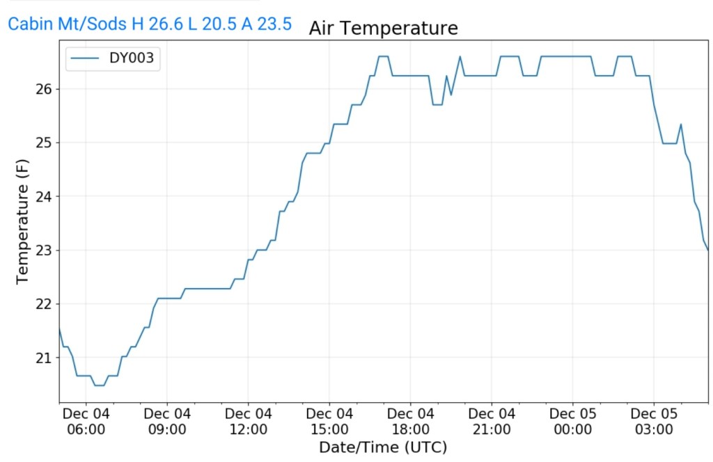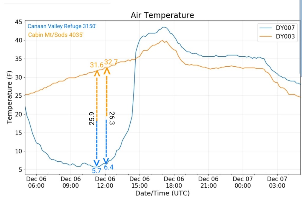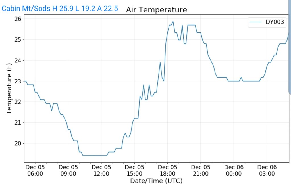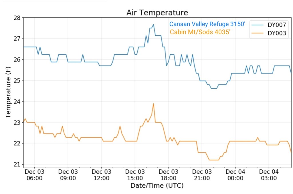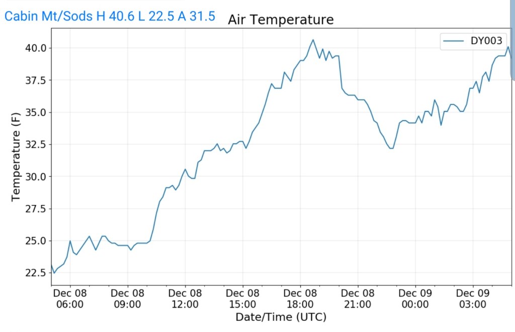 Friday temps into the weekend off the 3km Nam, and the ICON model with windstream. The ICON handles these situations well, but the 3km Nam being king. That said, it’s likely a tad too cold. Beginning with a zoomed in look at Garrett and then expanded back with another look at the 3km Nam, with the ICON last