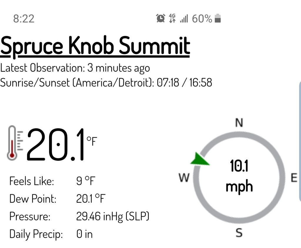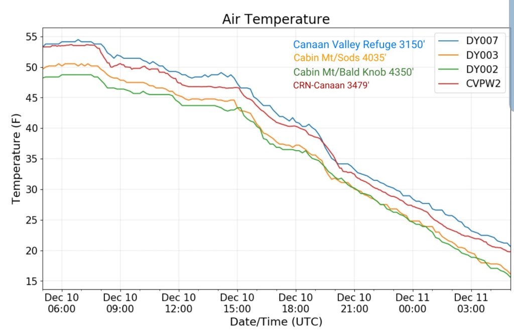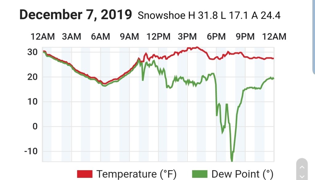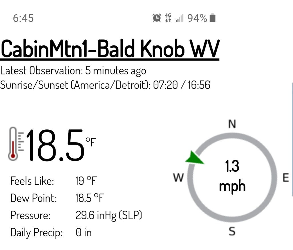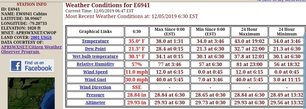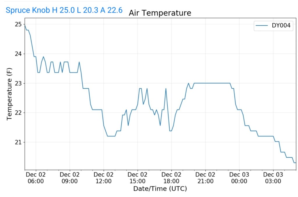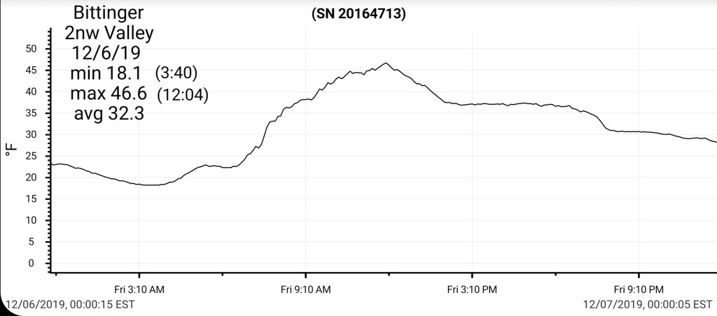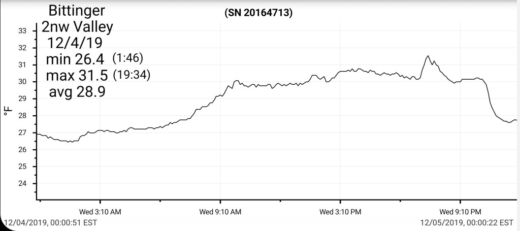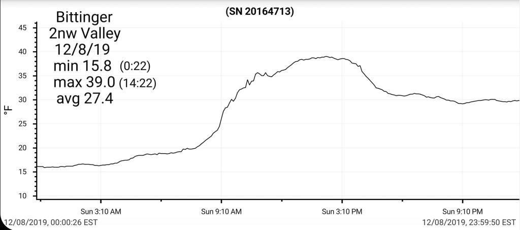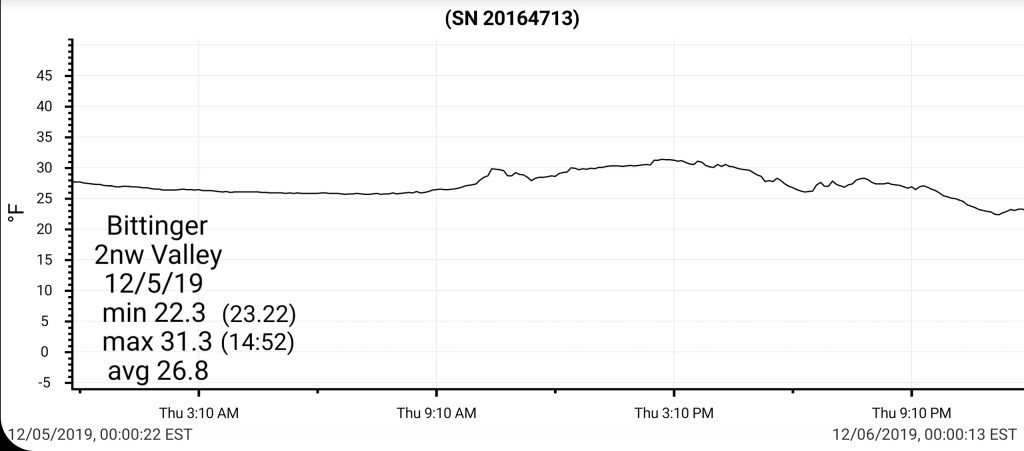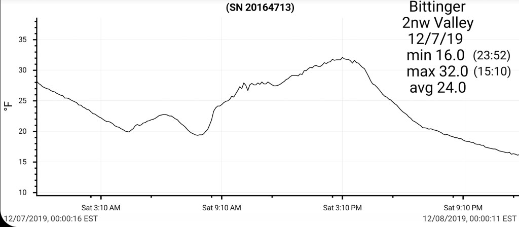 Winds die off overnight, valley temps should fall off pretty good before dawn. Cold across the board and holding chilly tomorrow. Friday, that will see some moisture, pressing north from the Carolinas. It will be fighting low level dry air initially and likely radar will be showing virga for awhile. Across the southern Alleghenies, over into the deeper valleys into VA, when precip does reach the ground, albeit light, there will likely be areas of light freezing rain and that coming on the heels of a few cold days, may give some surface areas a light glazing and create slick conditions.