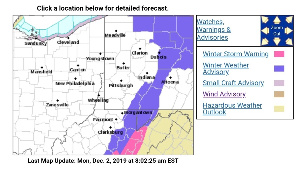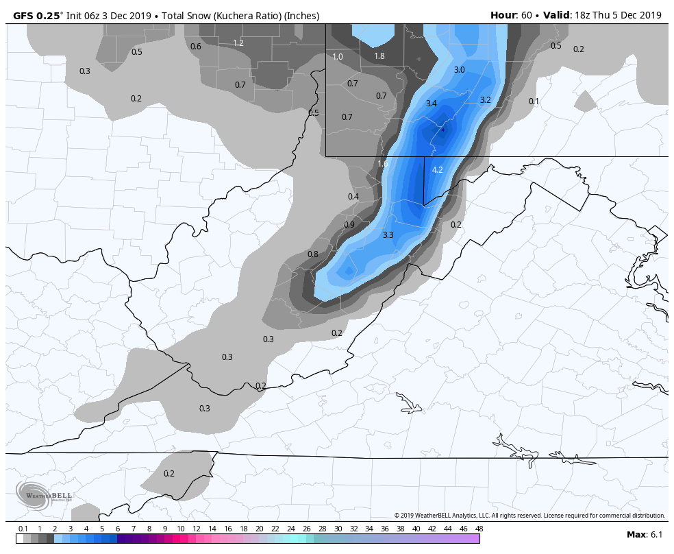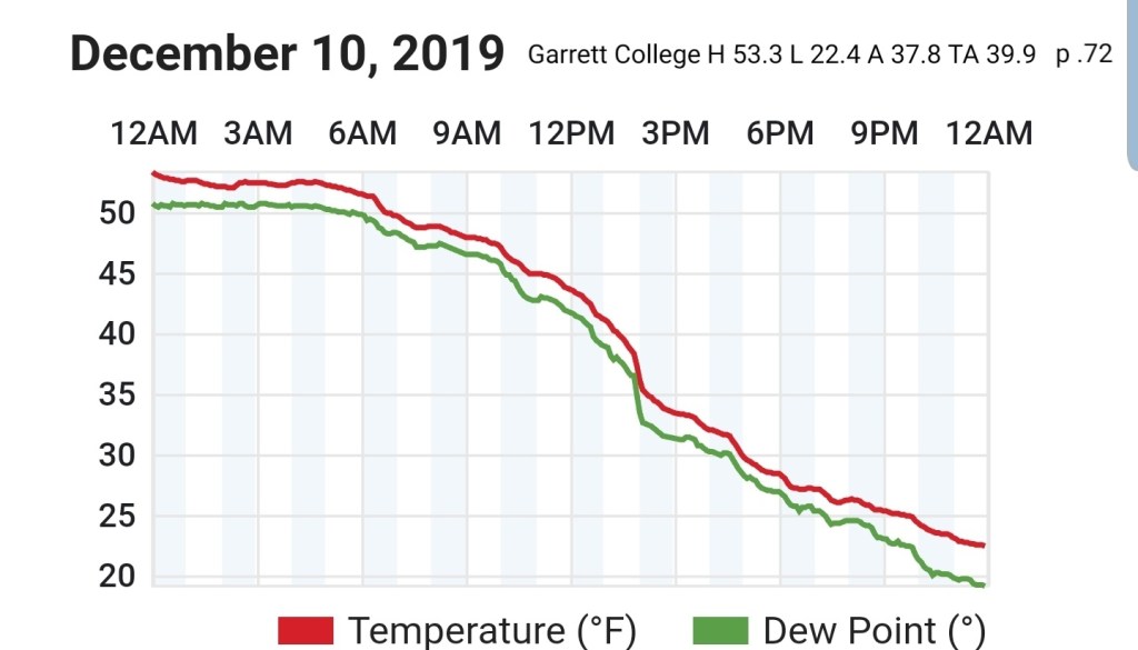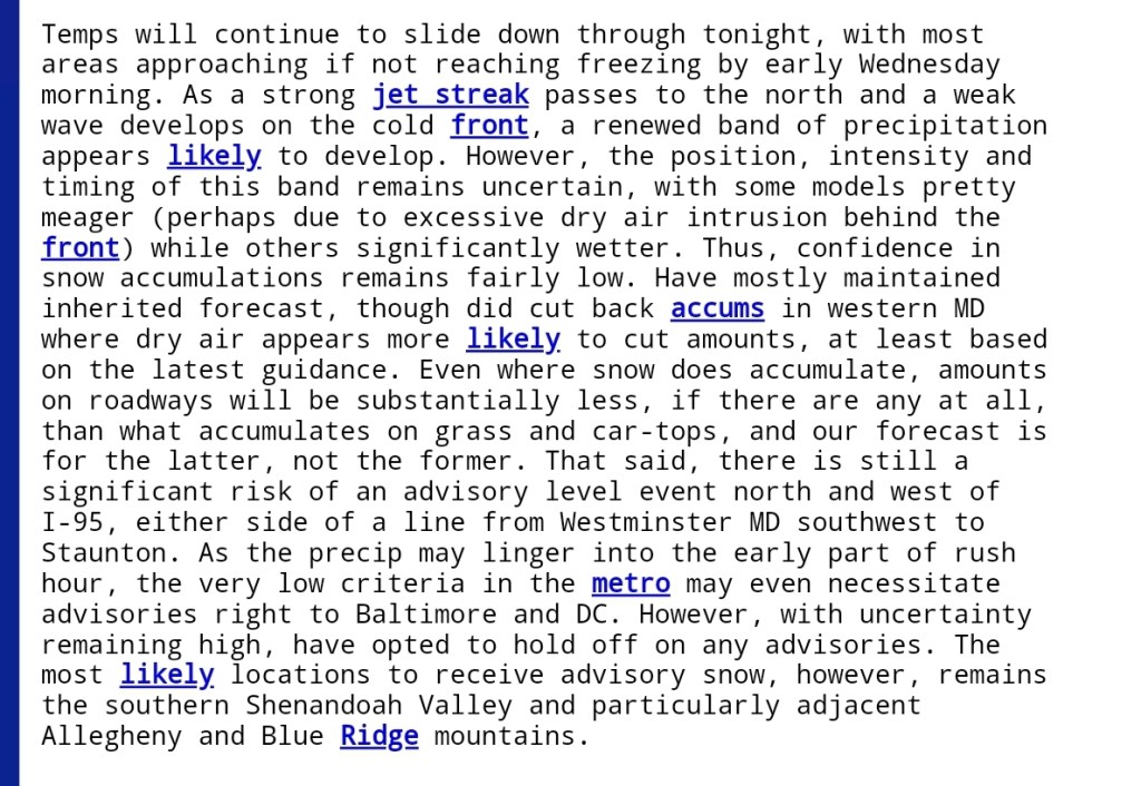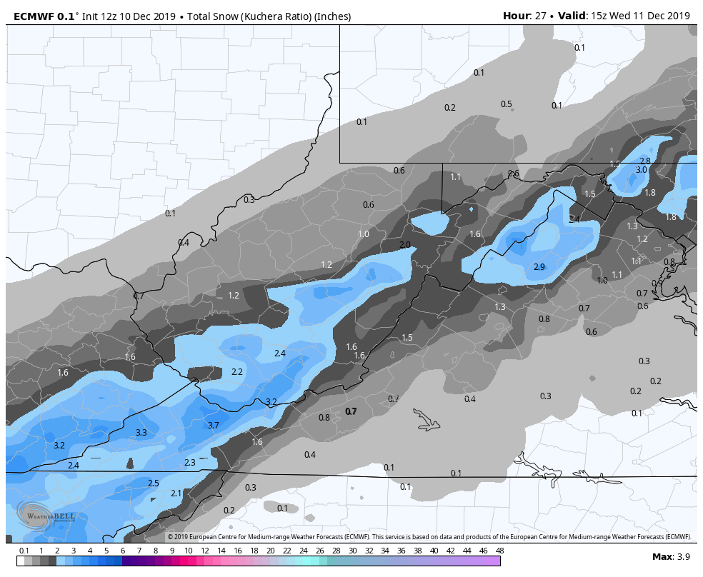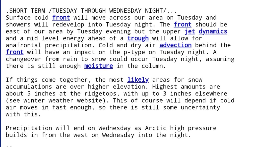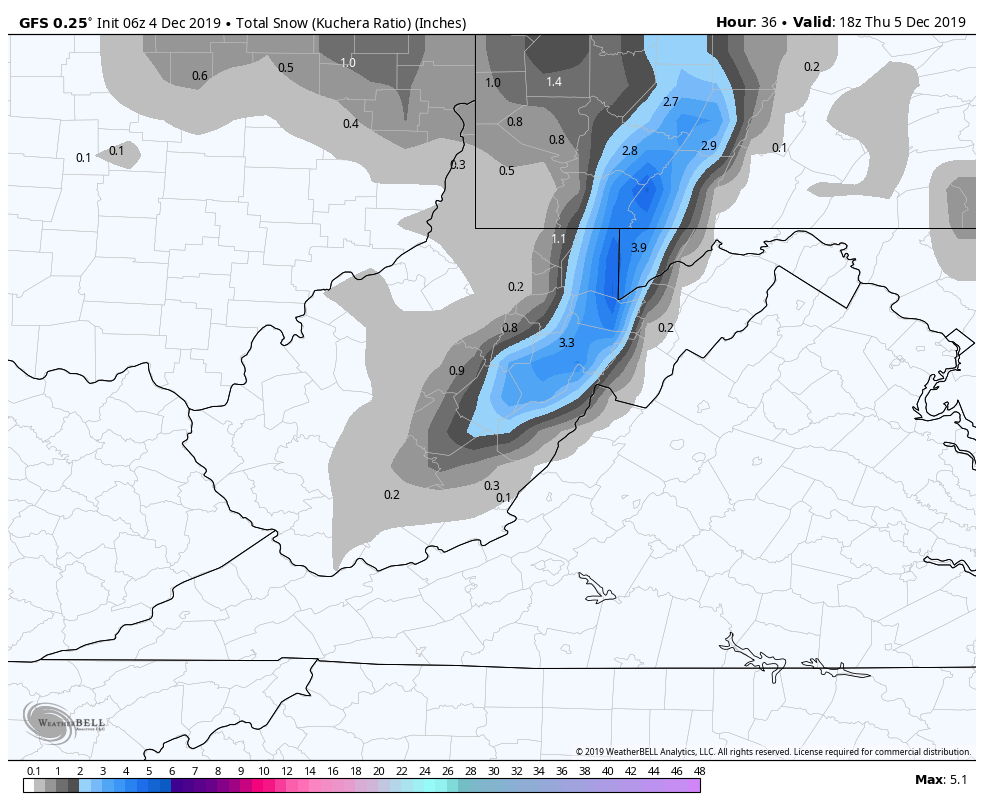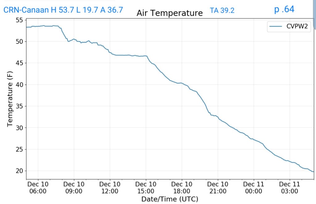 Winds die off overnight, valley temps should fall off pretty good before dawn. Cold across the board and holding chilly tomorrow. Friday, that will see some moisture, pressing north from the Carolinas. It will be fighting low level dry air initially and likely radar will be showing virga for awhile. Across the southern Alleghenies, over into the deeper valleys into VA, when precip does reach the ground, albeit light, there will likely be areas of light freezing rain and that coming on the heels of a few cold days, may give some surface areas a light glazing and create slick conditions.
