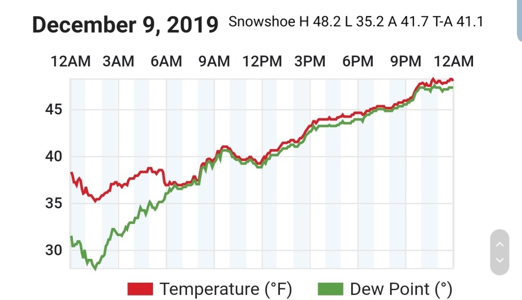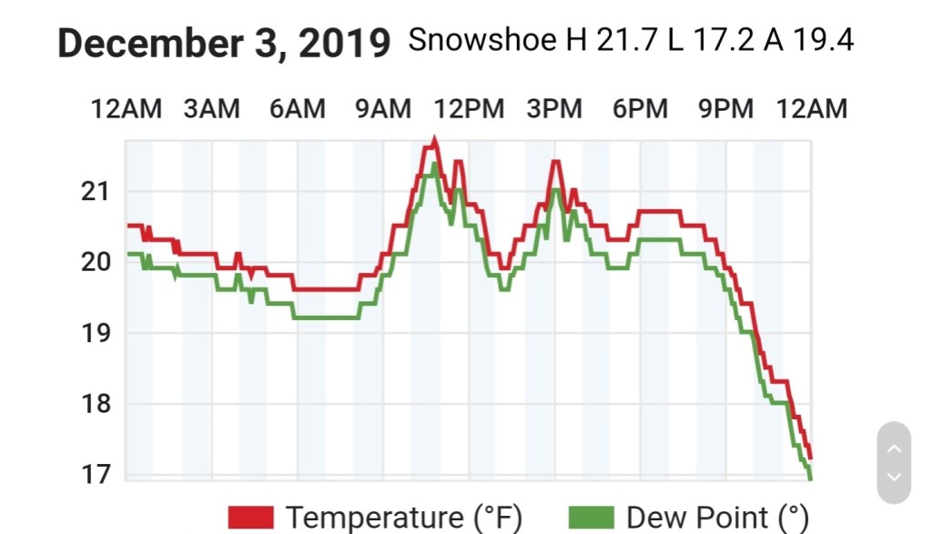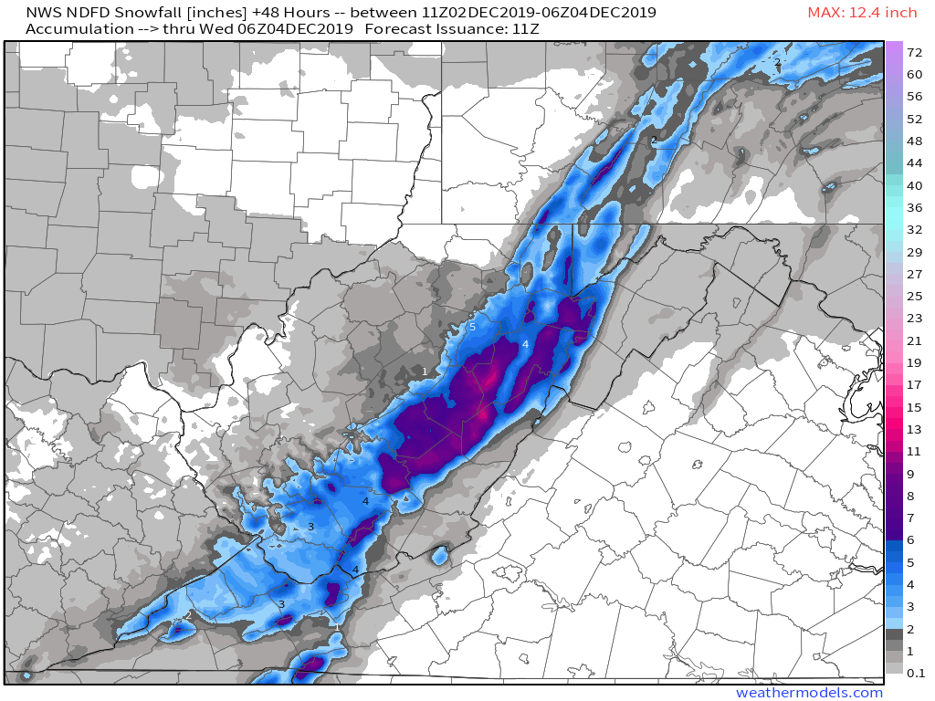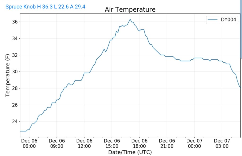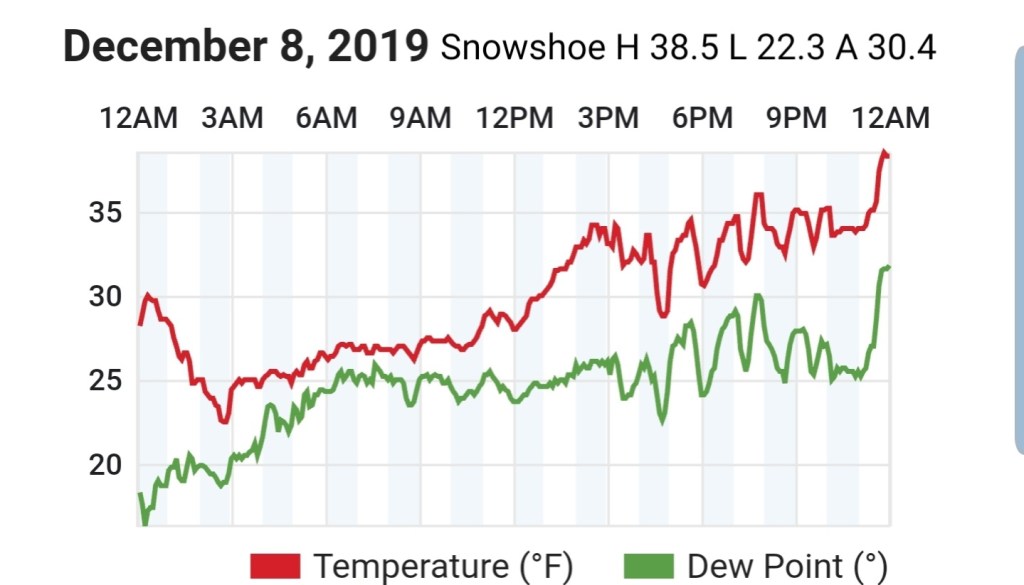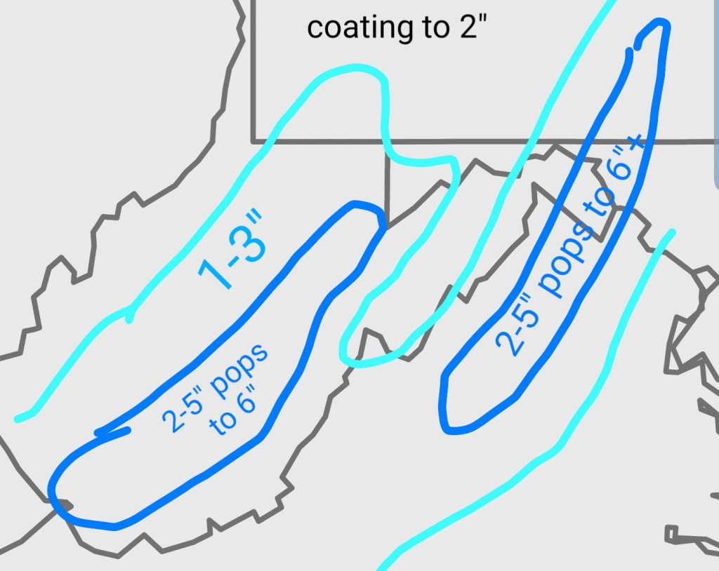 On Saturday morning, steady rain, and by late morning to early afternoon max temps f upper 30s, lower 40s will have been reached and slowly falling temps through the remainder of the day with rain transitioning to snowfall. Beginning first across the Wv high ground, with snow continuing into Sunday morning in a bit more of a classic upslope vs this recent rain to snow transition.