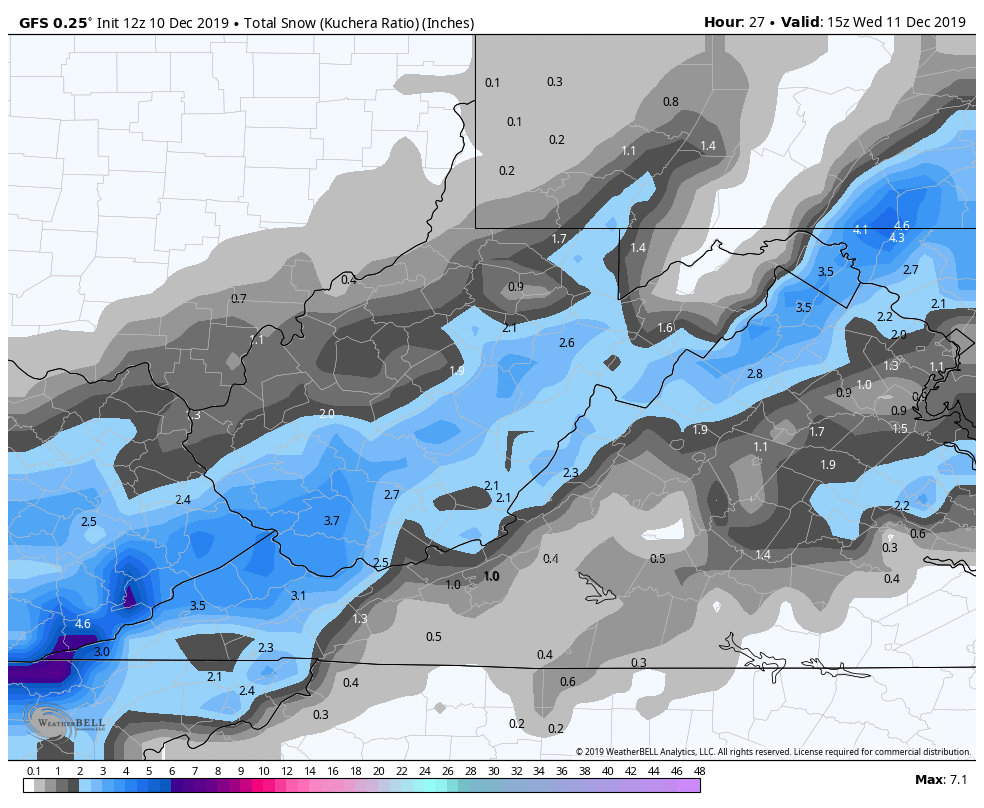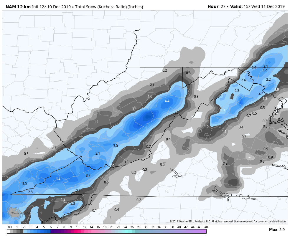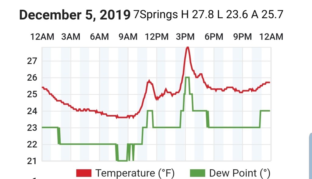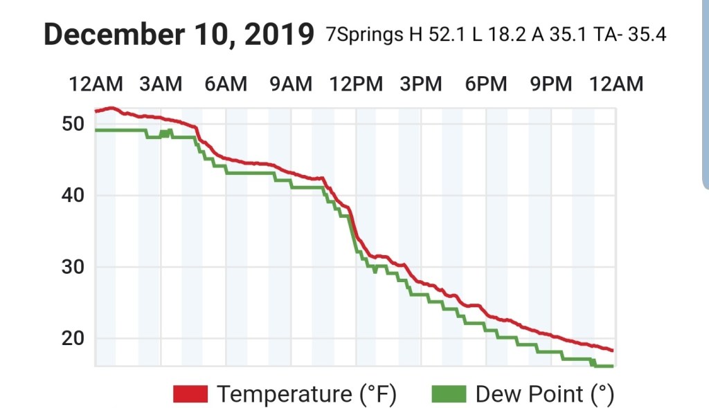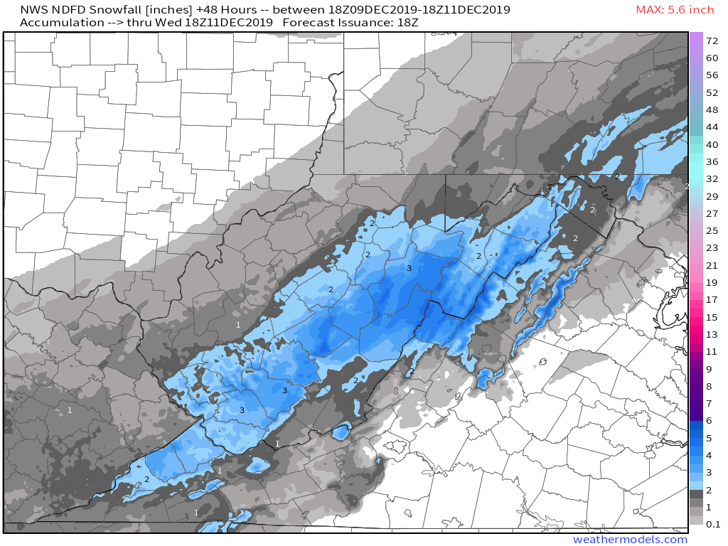 On Saturday morning, steady rain, and by late morning to early afternoon max temps f upper 30s, lower 40s will have been reached and slowly falling temps through the remainder of the day with rain transitioning to snowfall. Beginning first across the Wv high ground, with snow continuing into Sunday morning in a bit more of a classic upslope vs this recent rain to snow transition.