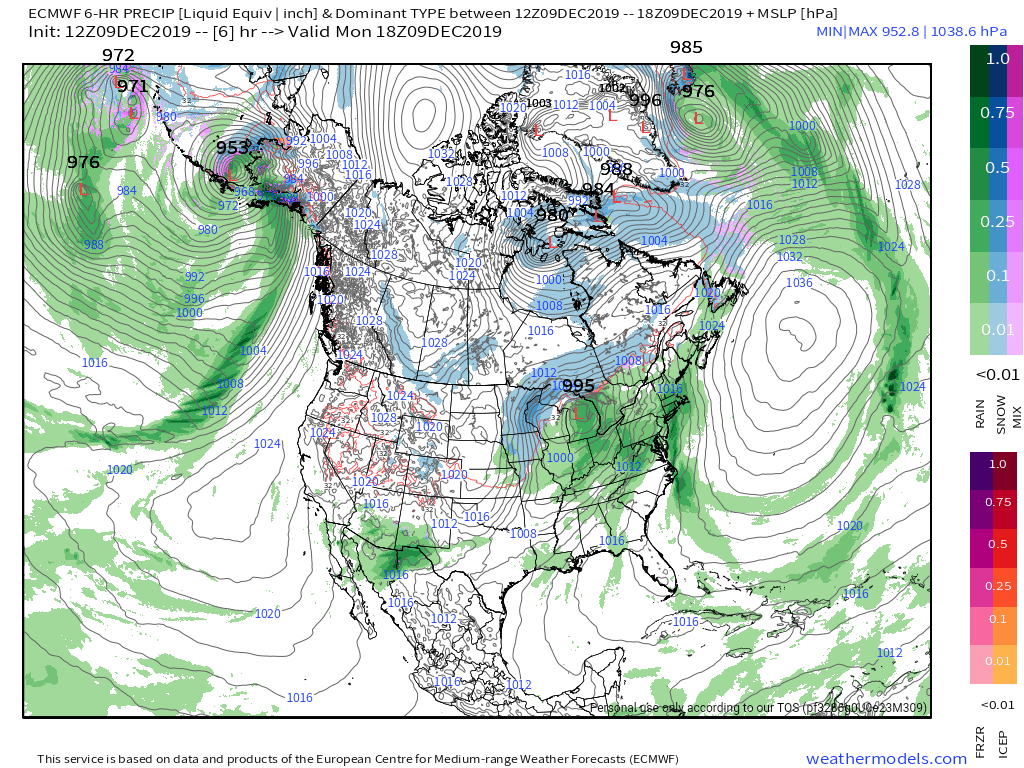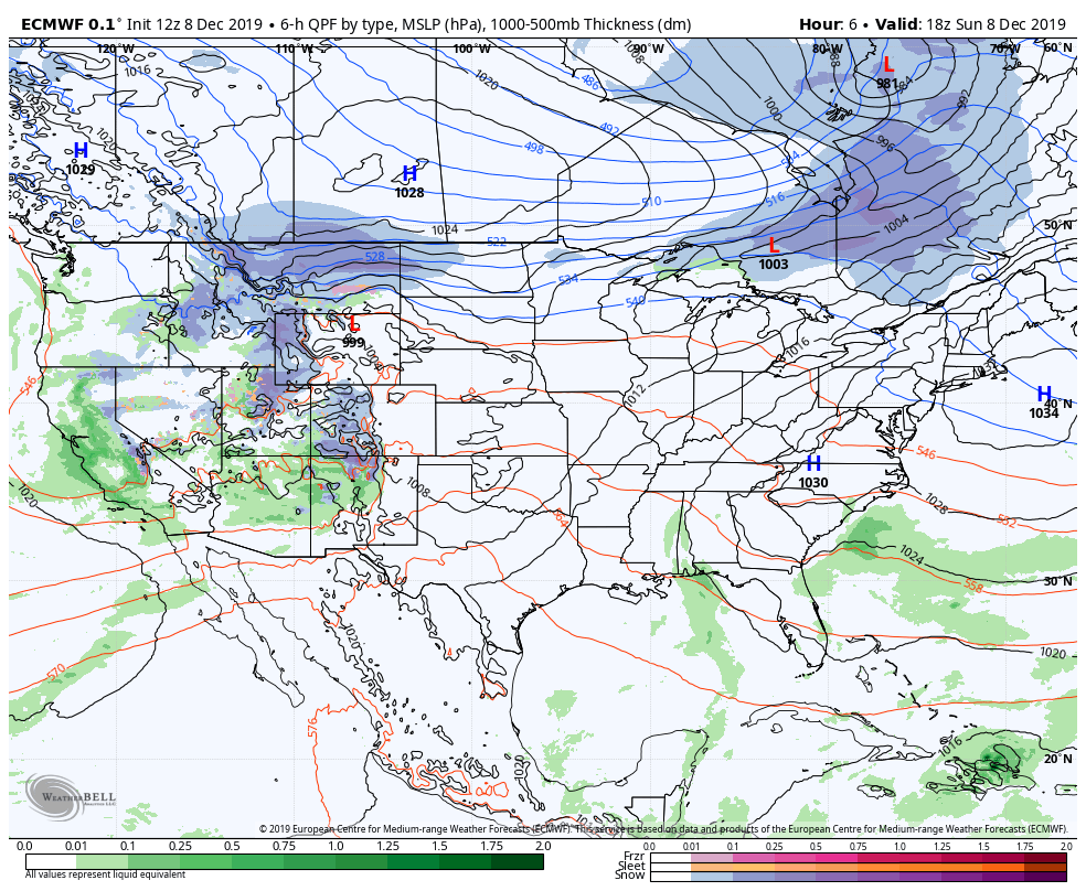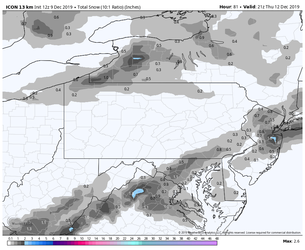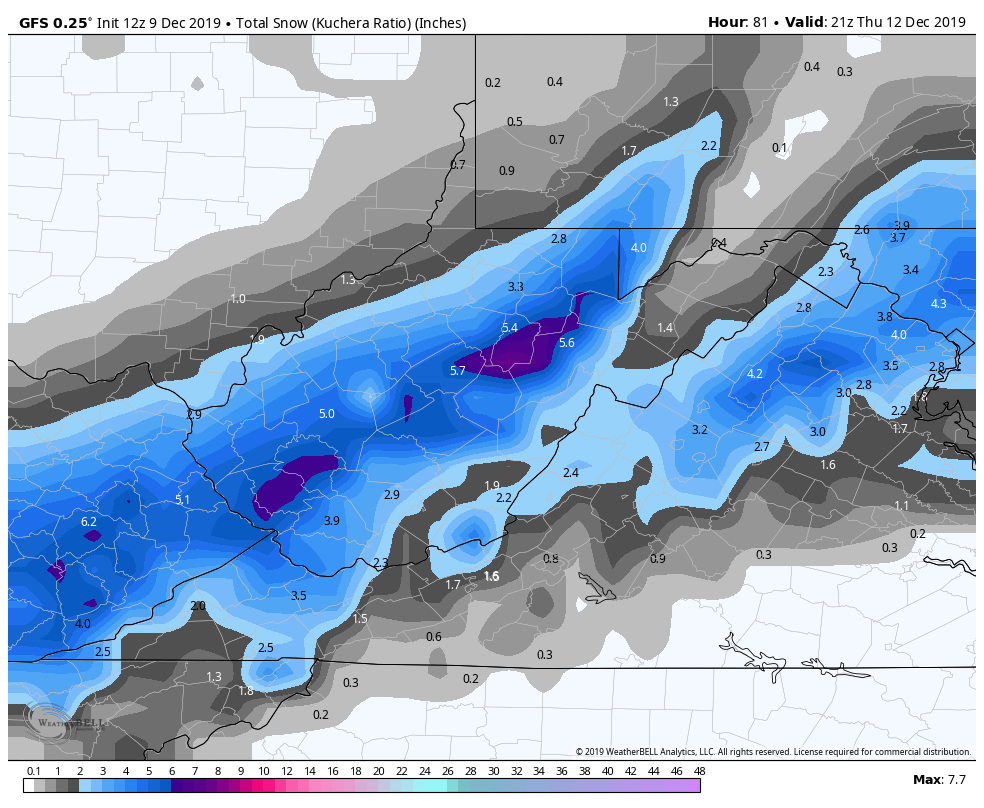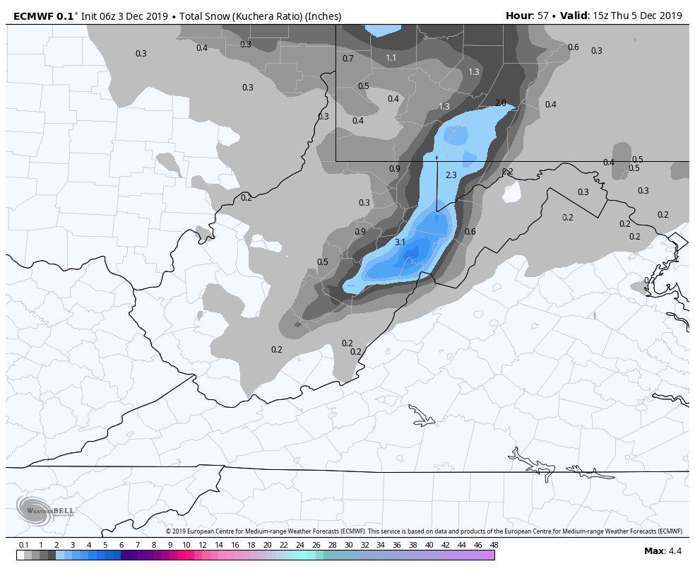 Snowfall amounts Saturday night into Sunday off the 12z ECMWF and 18z GFS