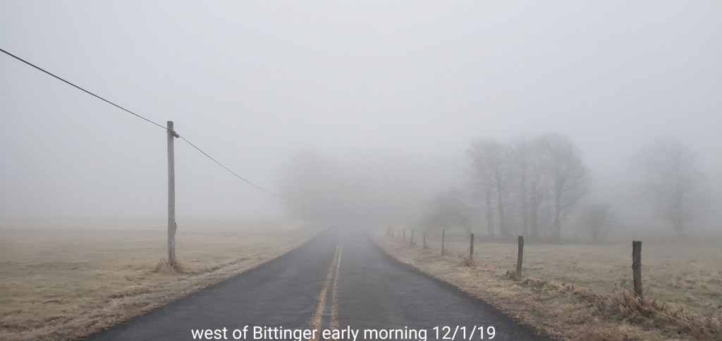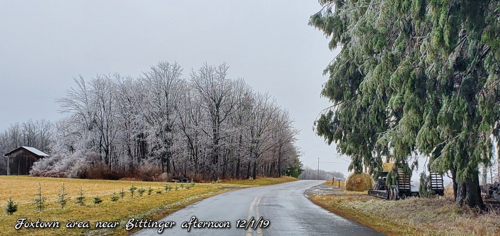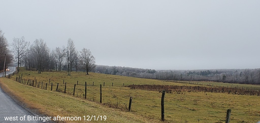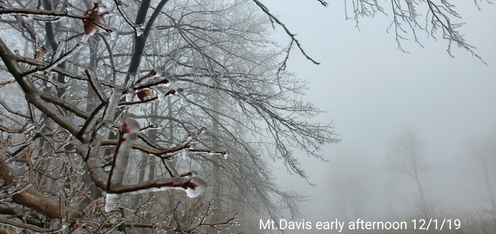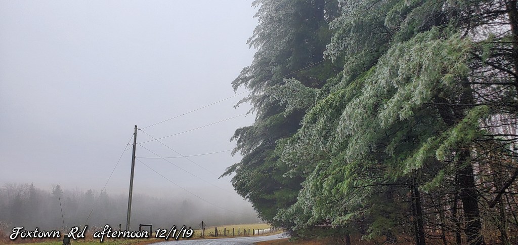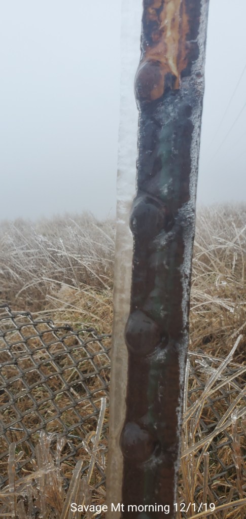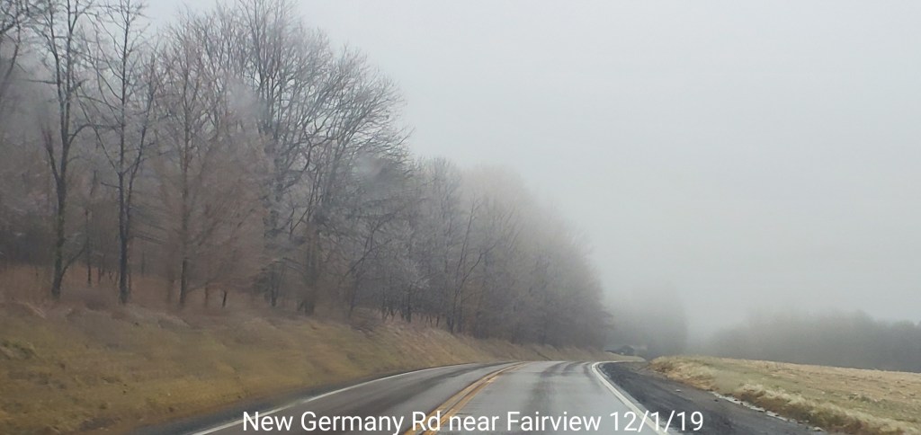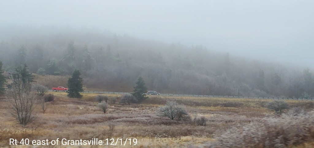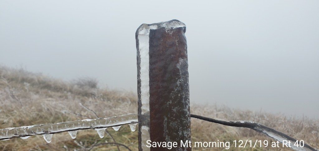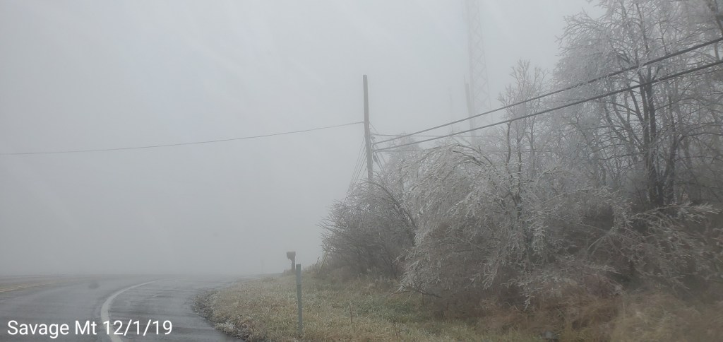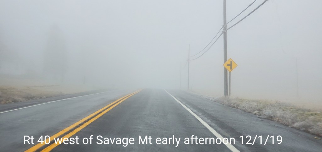 A icy start, and that ice lingered into the afternoon. In some locations in those classic areas, it held the entire day. West areas saw rain. After nightfall some thunder, lightning, soft hail, graupel, wet snow. Dense fog across Savage Mt with a large wreck today.