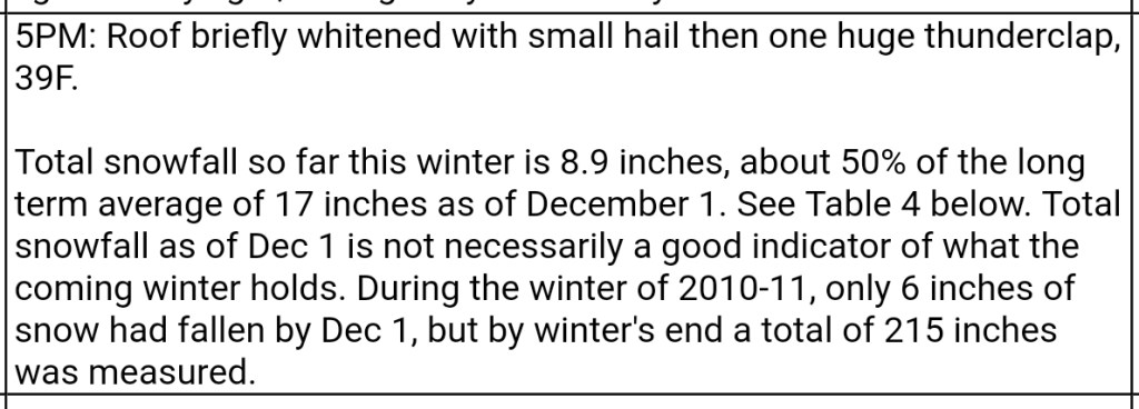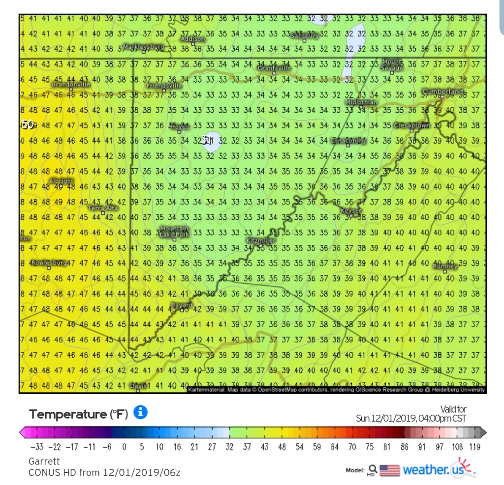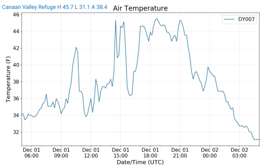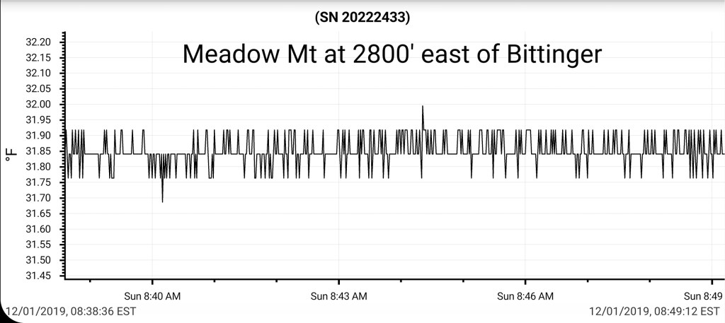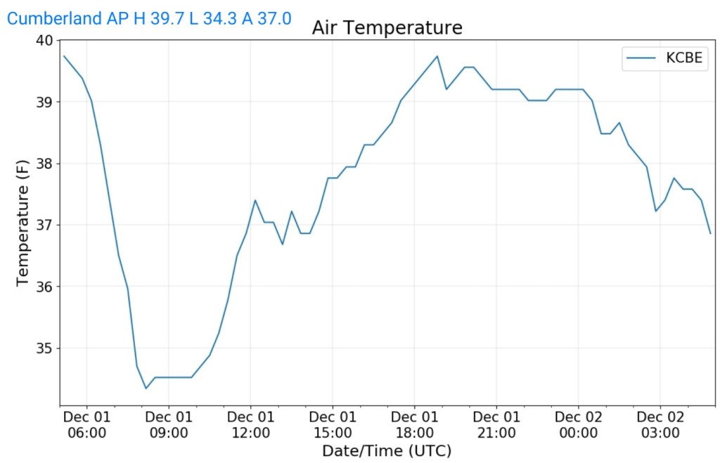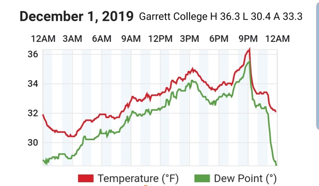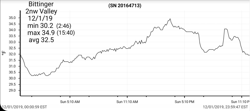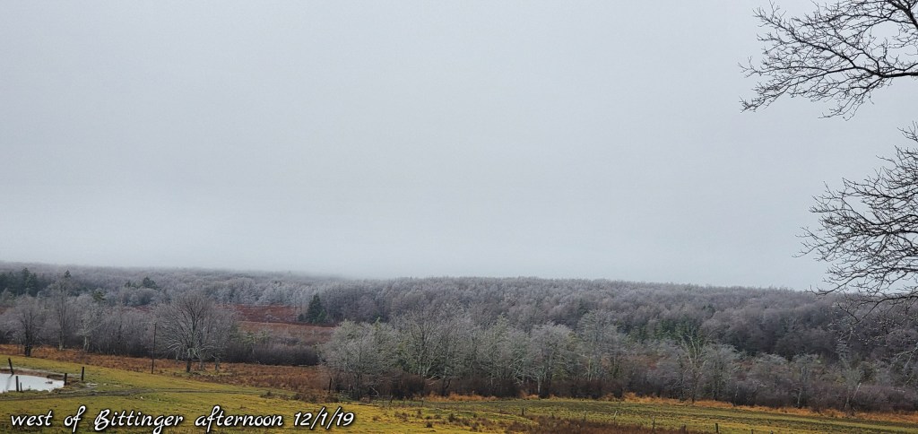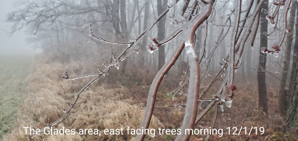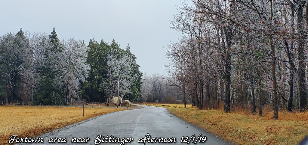 A icy start, and that ice lingered into the afternoon. In some locations in those classic areas, it held the entire day. West areas saw rain. After nightfall some thunder, lightning, soft hail, graupel, wet snow. Dense fog across Savage Mt with a large wreck today.
