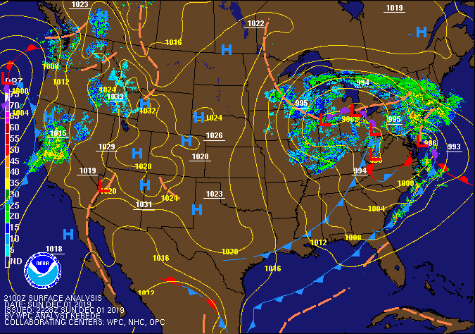 Surface features and 500mb height anomalies and flow