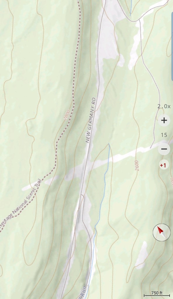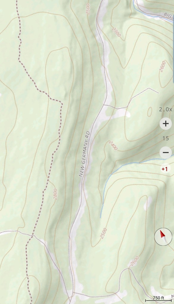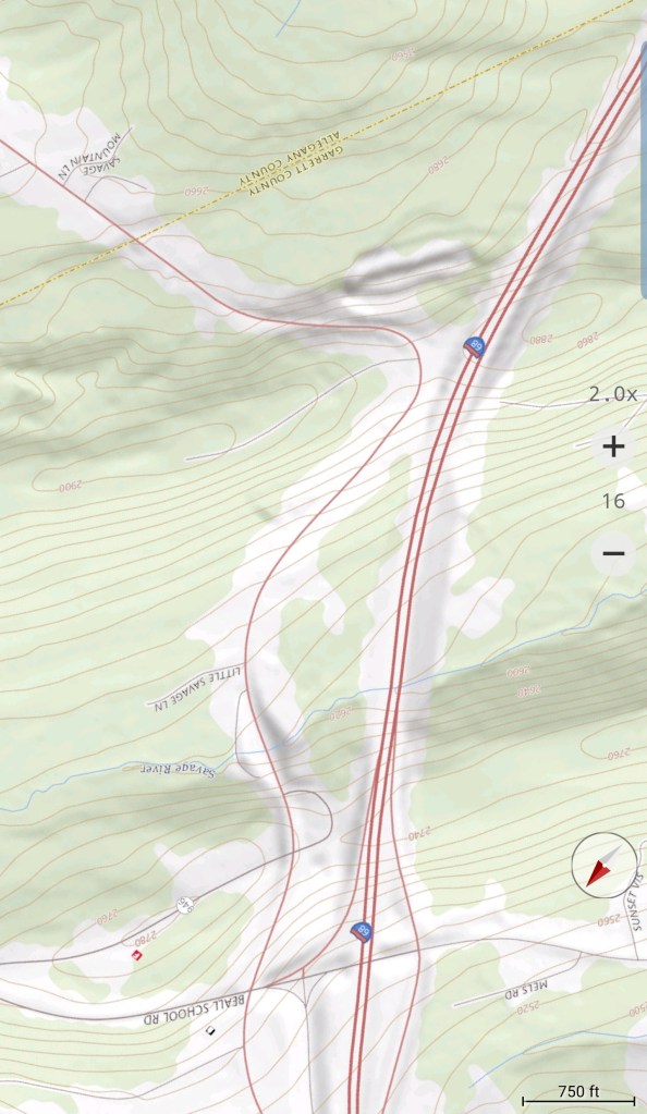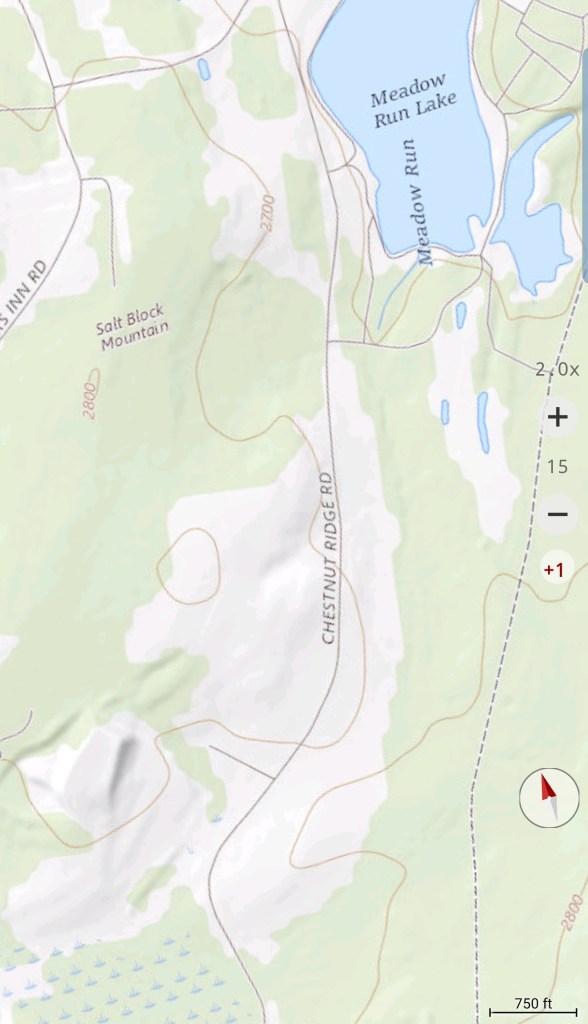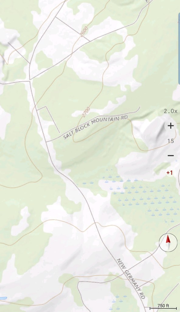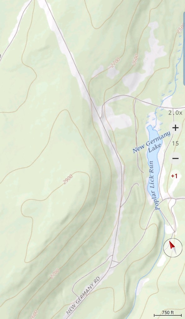 Meadow Mt north on New Germany, then to Rt 40 east of Grantsville via Chestnut Ridge