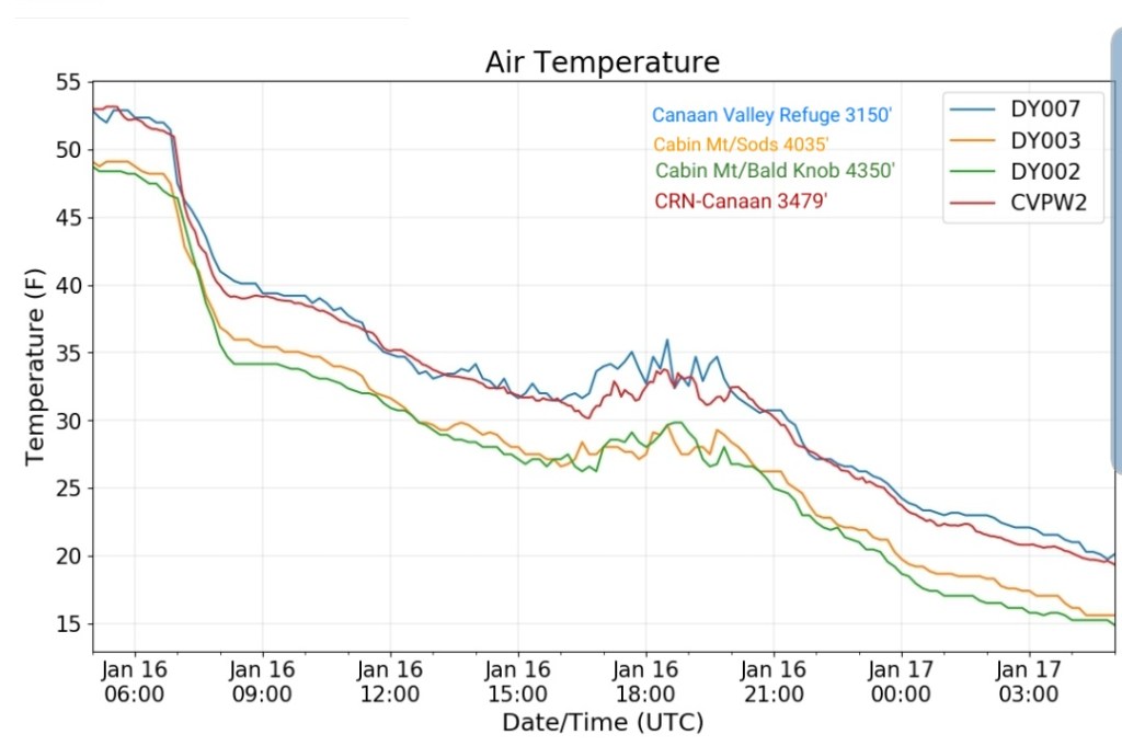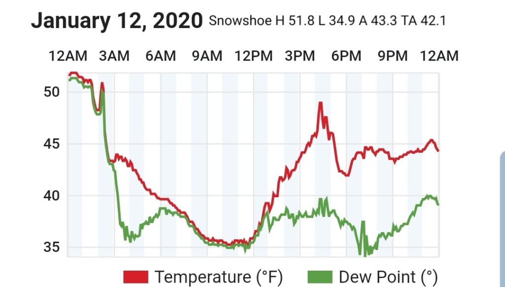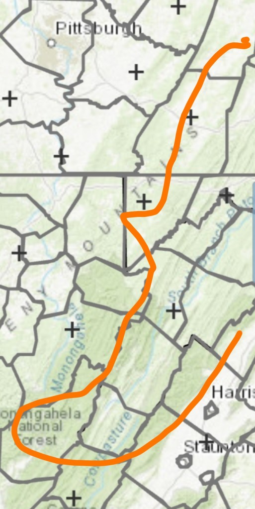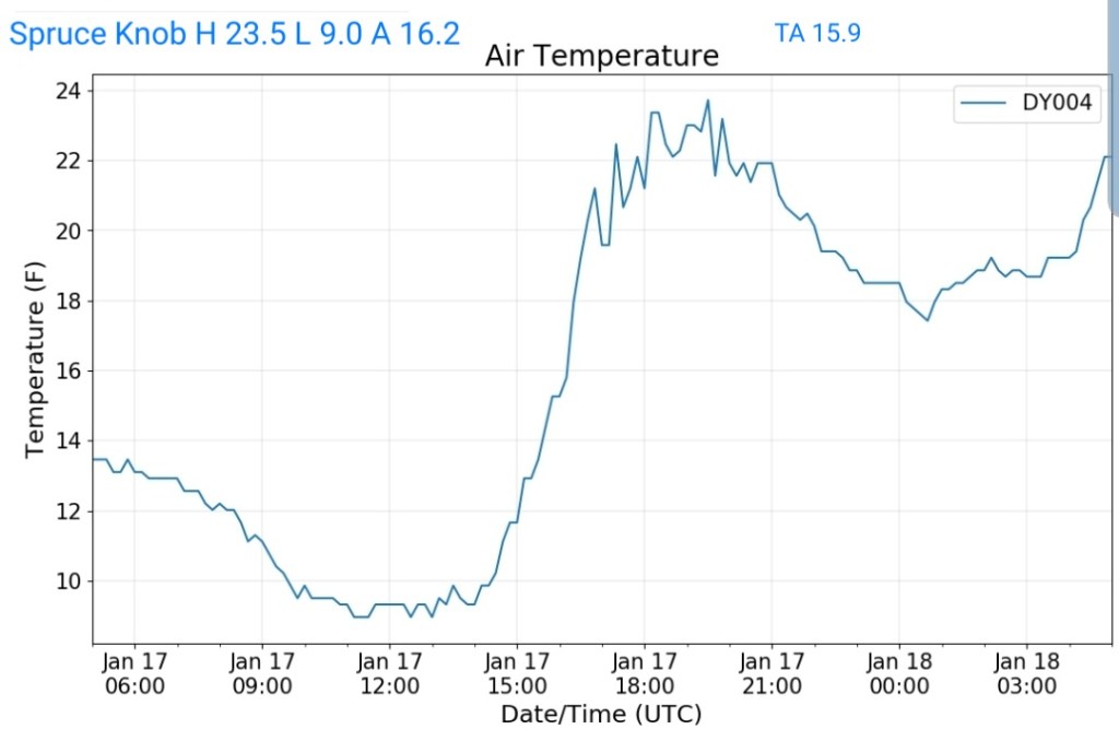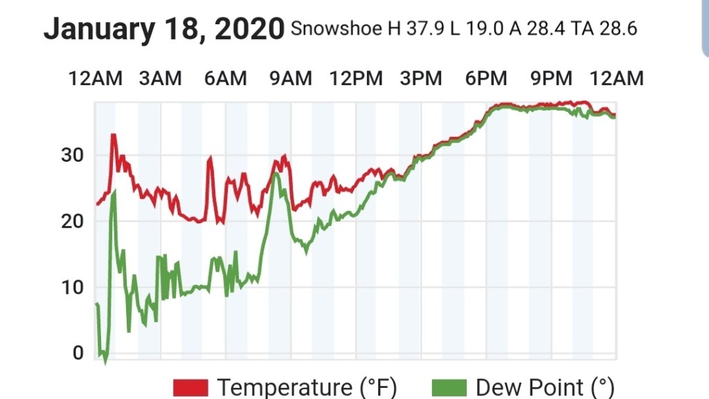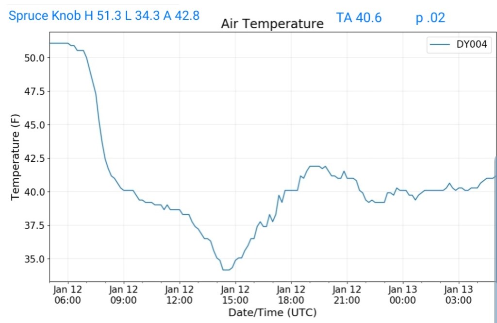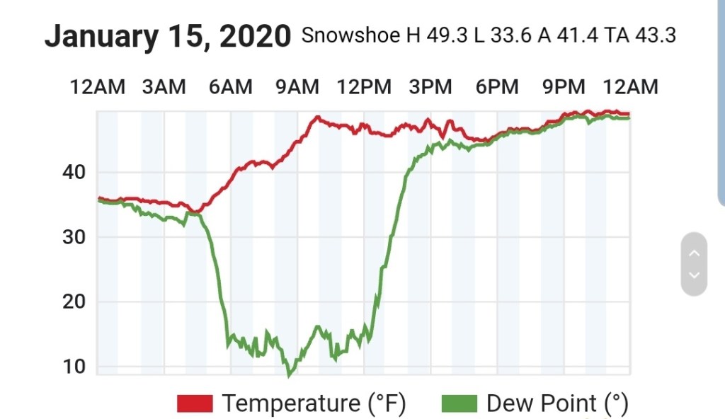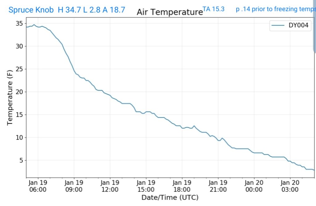 What about the 850 level, roughly the tops of the Wv high ground. See that rapid temp drop in that 1500′ +/-