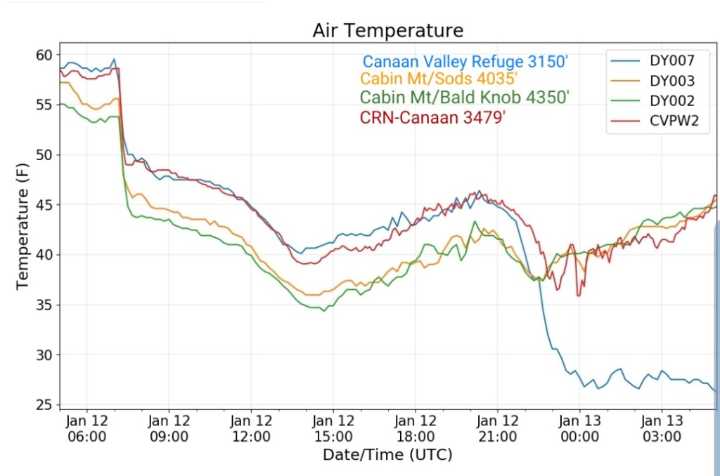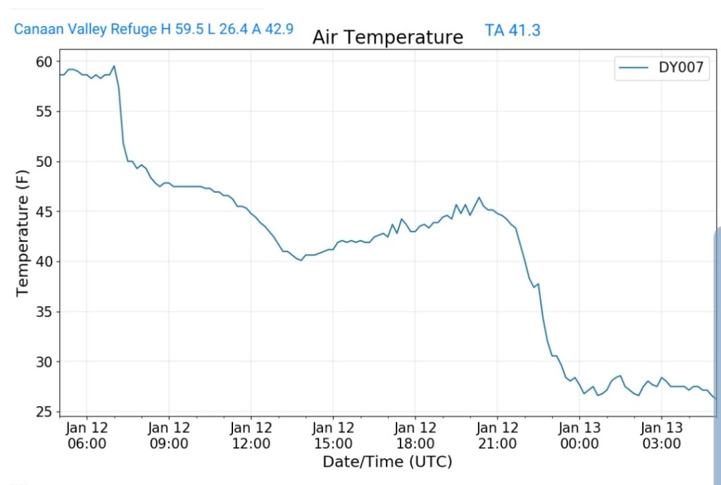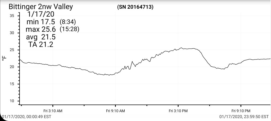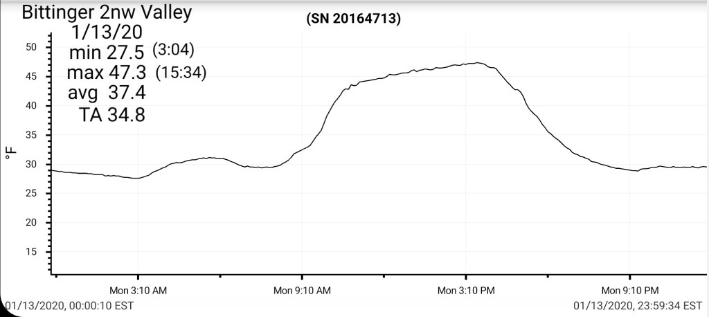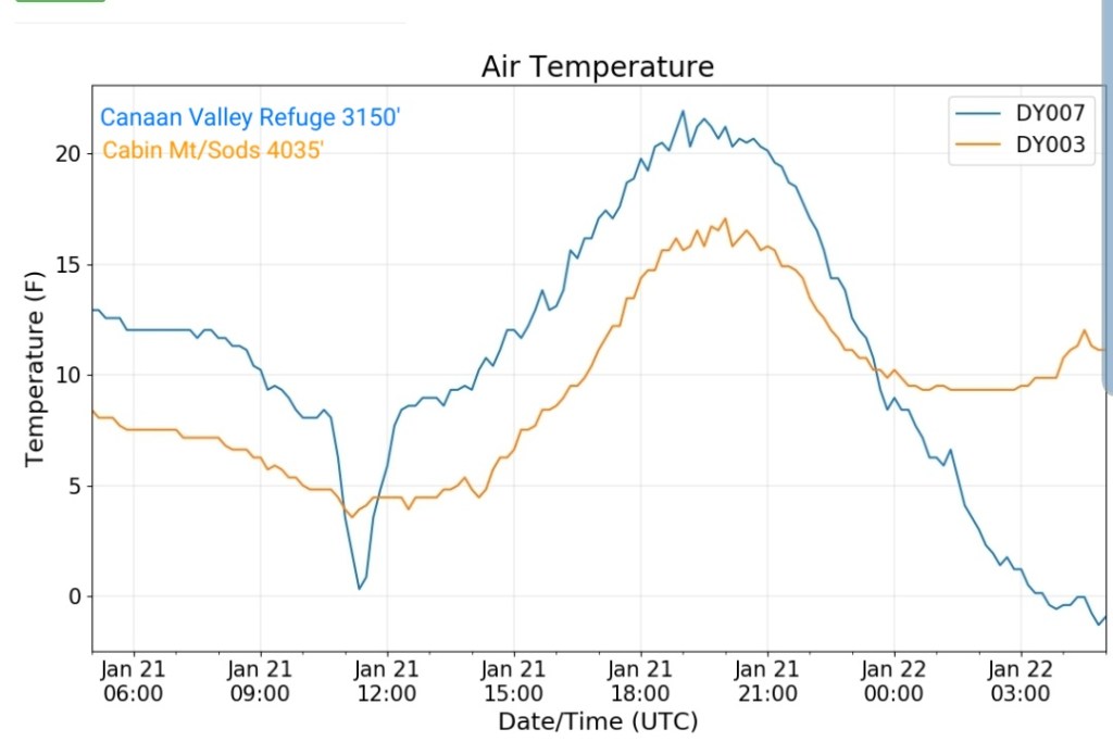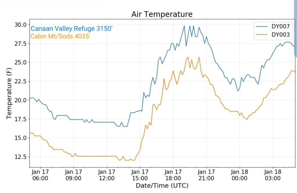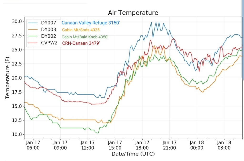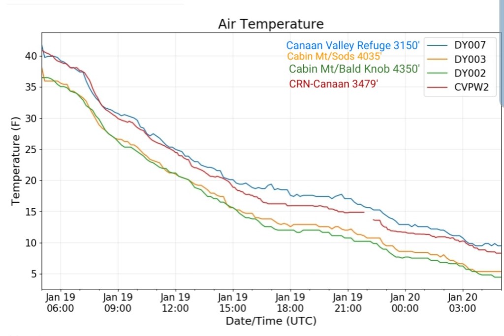 What about the 850 level, roughly the tops of the Wv high ground. See that rapid temp drop in that 1500′ +/-