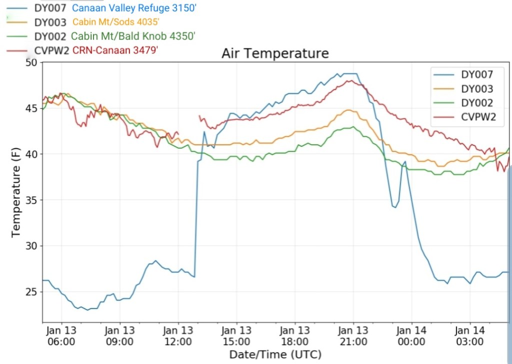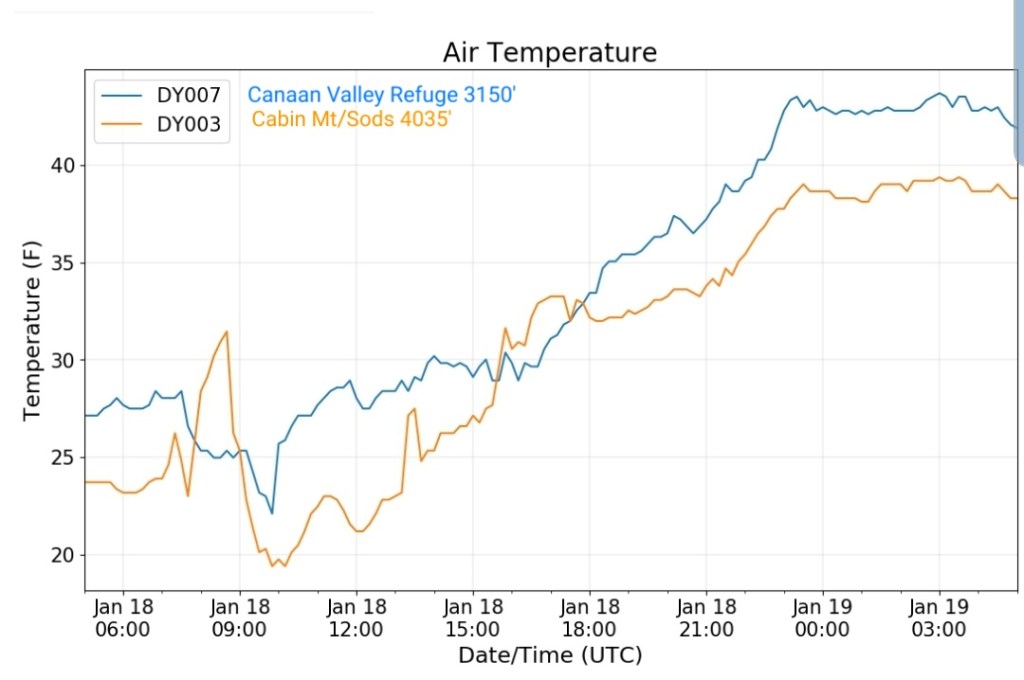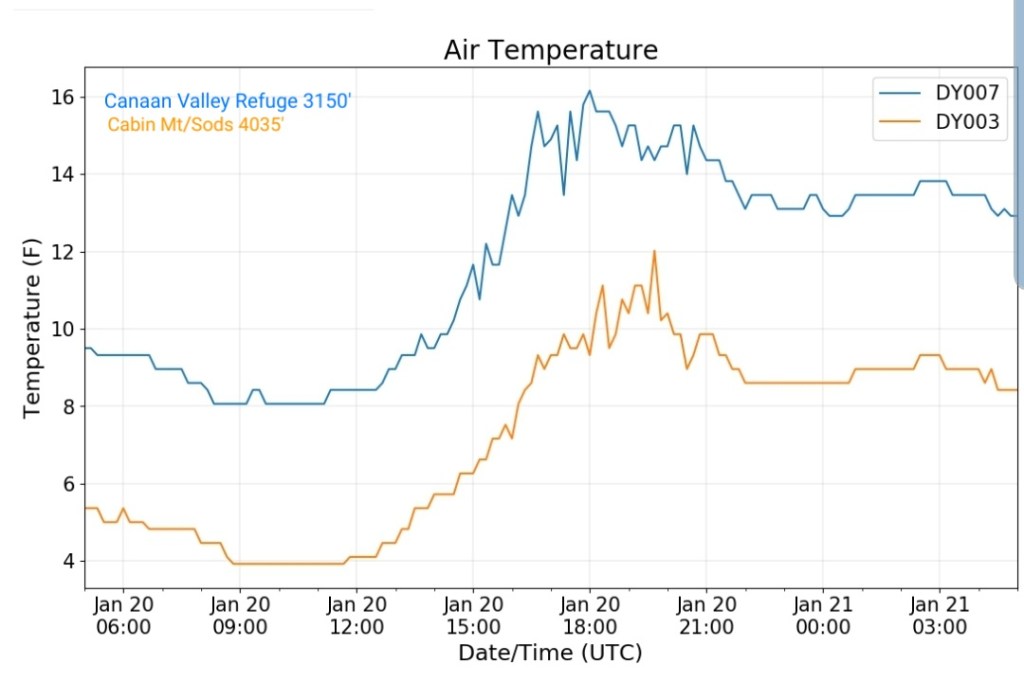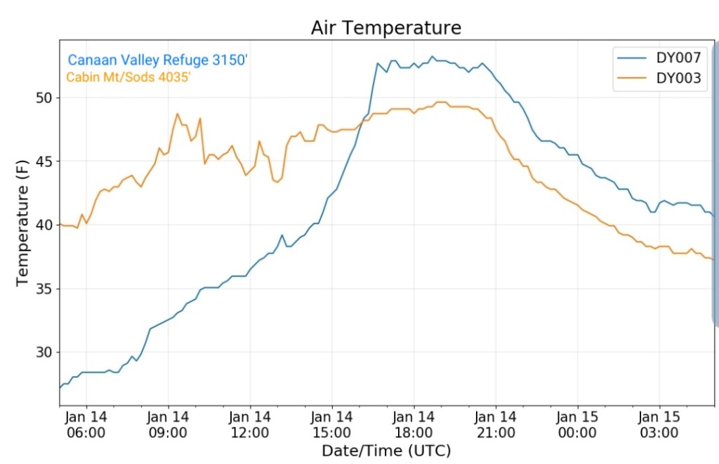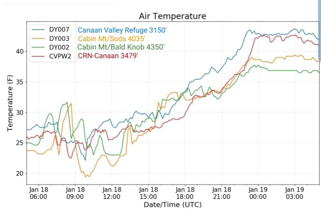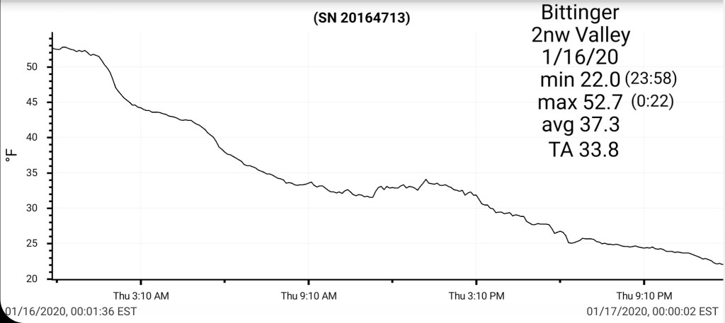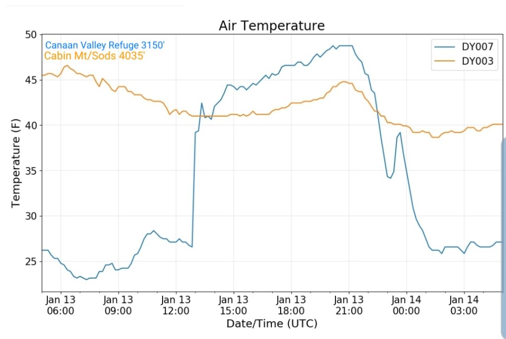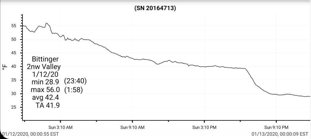 What about the 850 level, roughly the tops of the Wv high ground. See that rapid temp drop in that 1500′ +/-