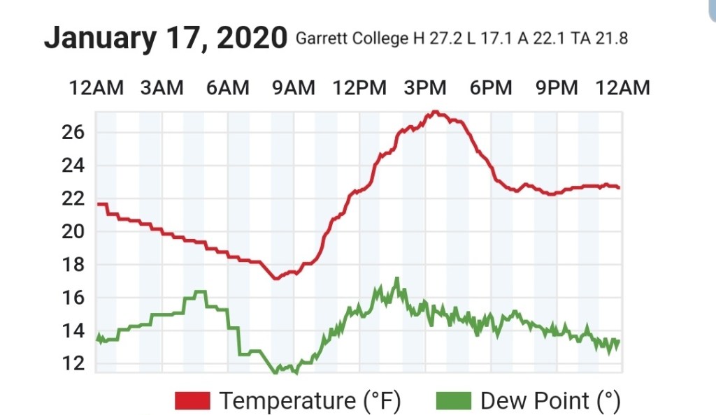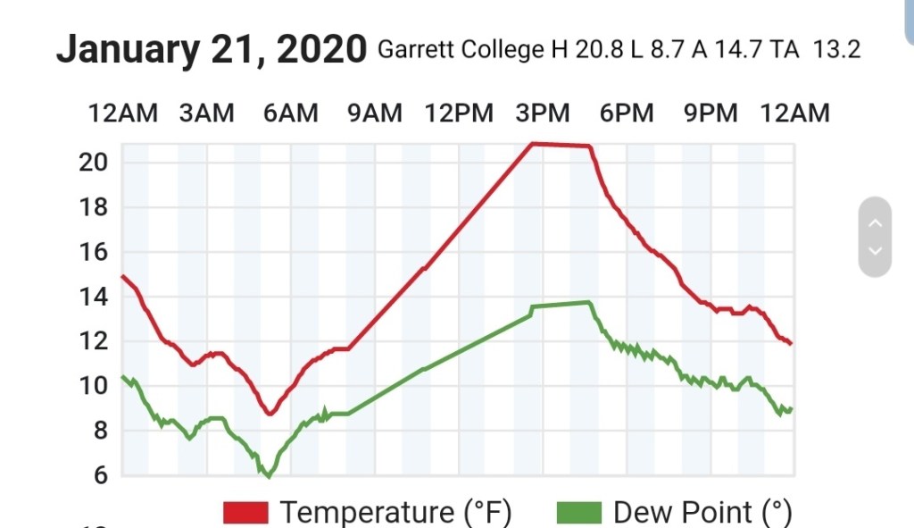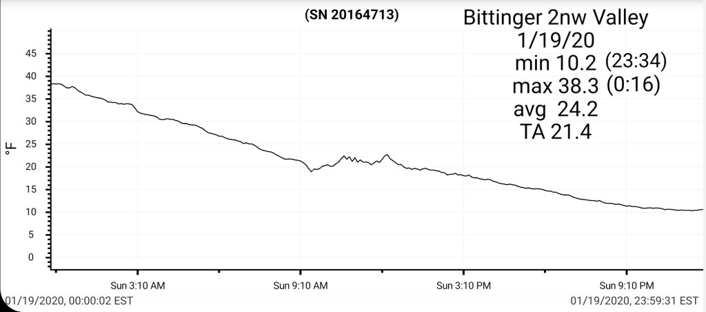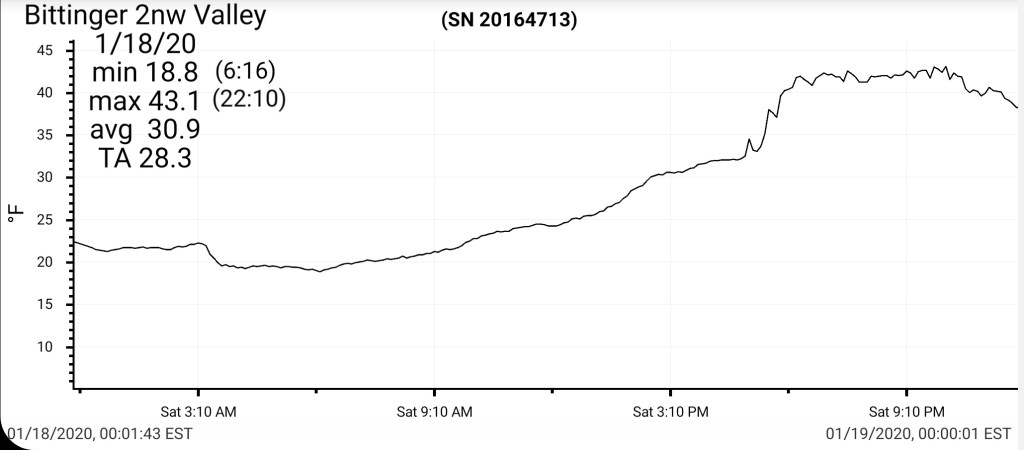 A touch of light snow this morning, there was more accumulation last evening, overnight towards Grantsville vs Bittinger. The day featured plenty of sun and cold temps.