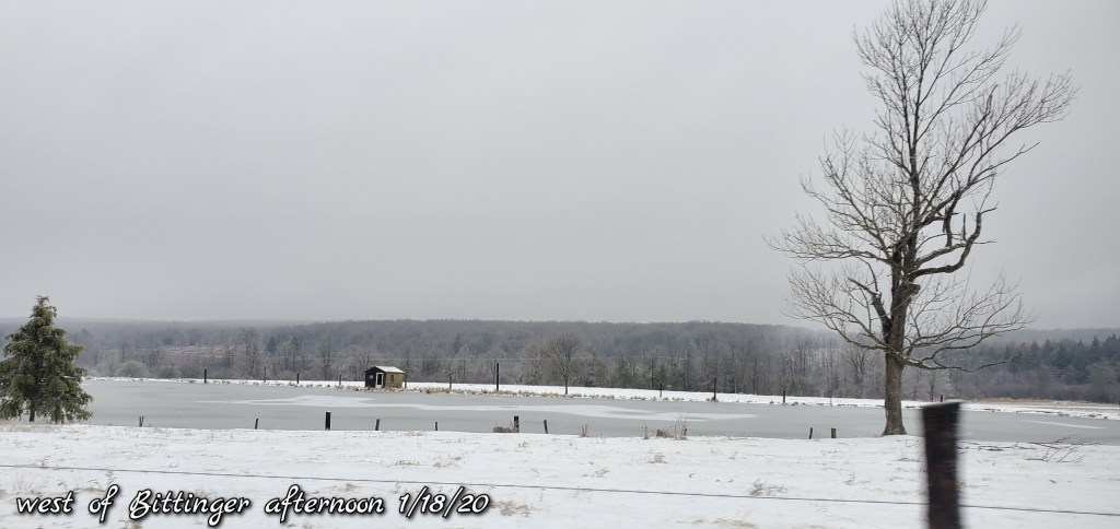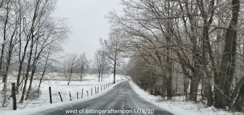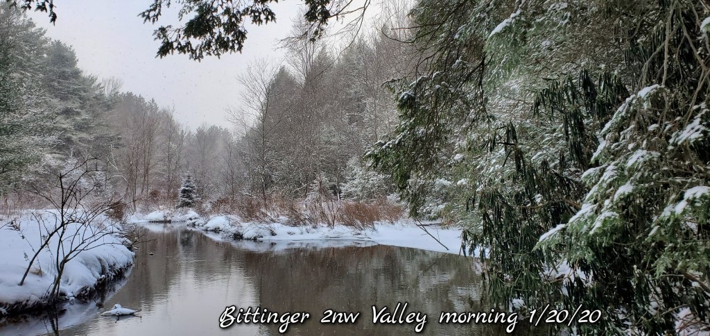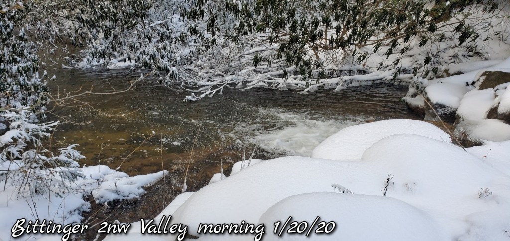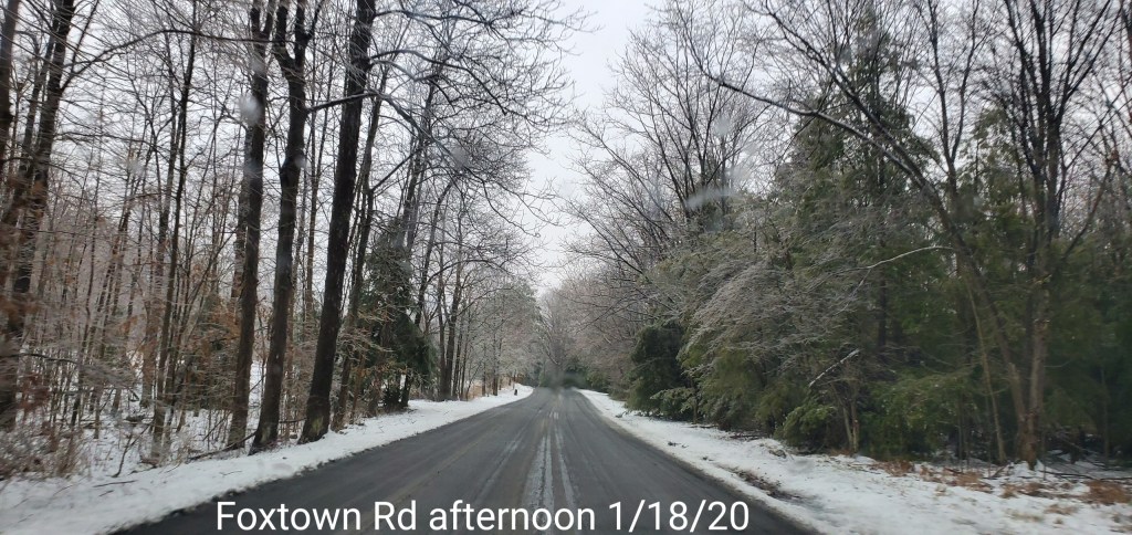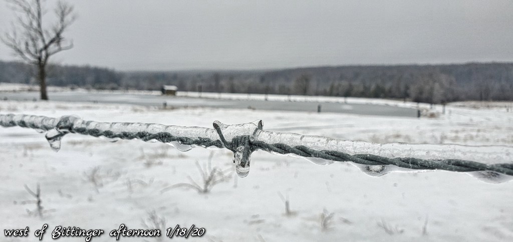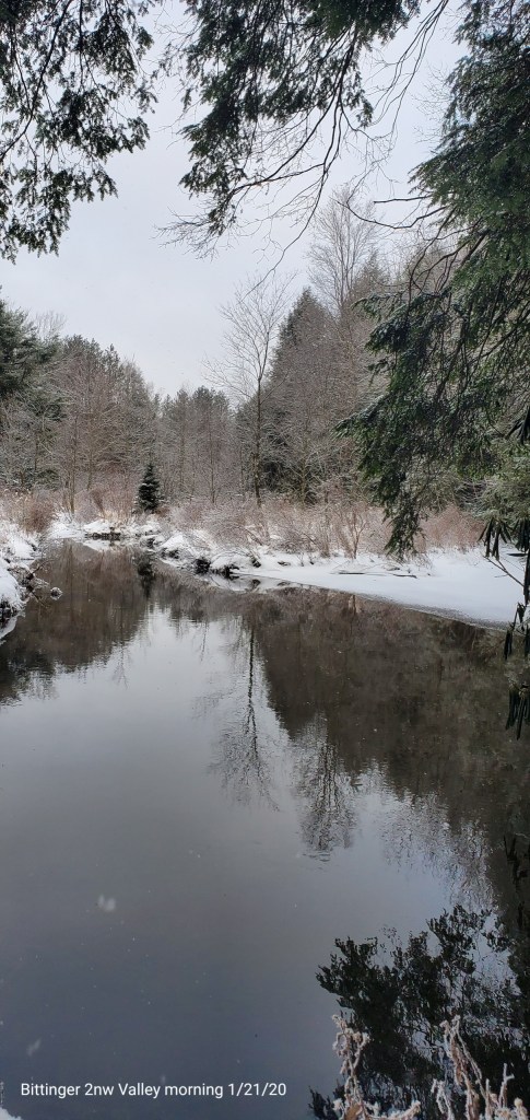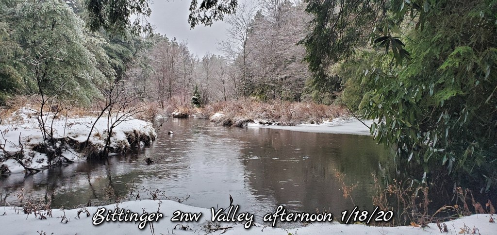Snowfall total new through 4pm at the time temps rapidly rose. If you didnt record at this time, amounts were lost between 4pm and 1 am with the mild temps and very strong wind. Totals- this INCLUDES sleet, freezing rain combo. 2.1″. The morning consisted of a duration of sleet while nearby areas, ex-McHenry was mainly freezing rain, even the Glades more ice vs this spot and less sleet…. 1.3″ occured with the predawn snow, .8 occured through the day with the snow/sleet/freezing rain combo. To show examples of how much sleet, it floats, and floated along the tops of the small creeks