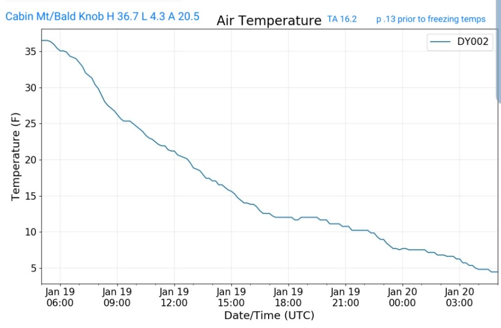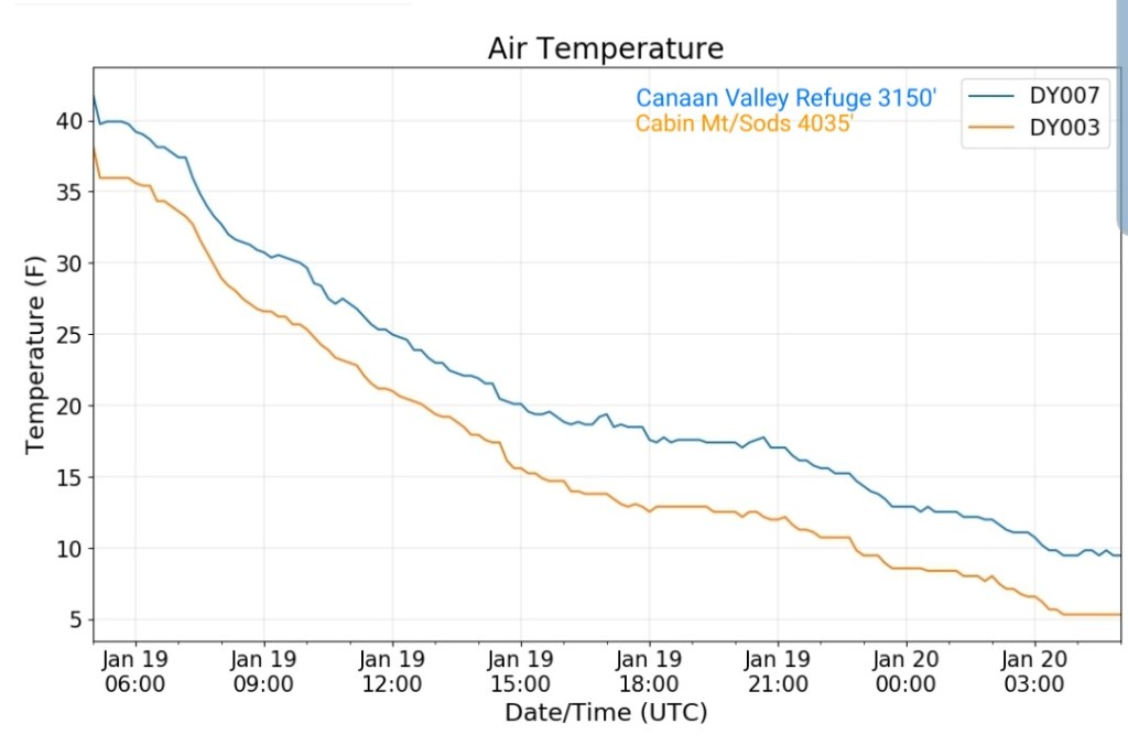 And the surface,,back below freezing here, except now the lower elevations on the east side are milder, but they too will begin the drop.