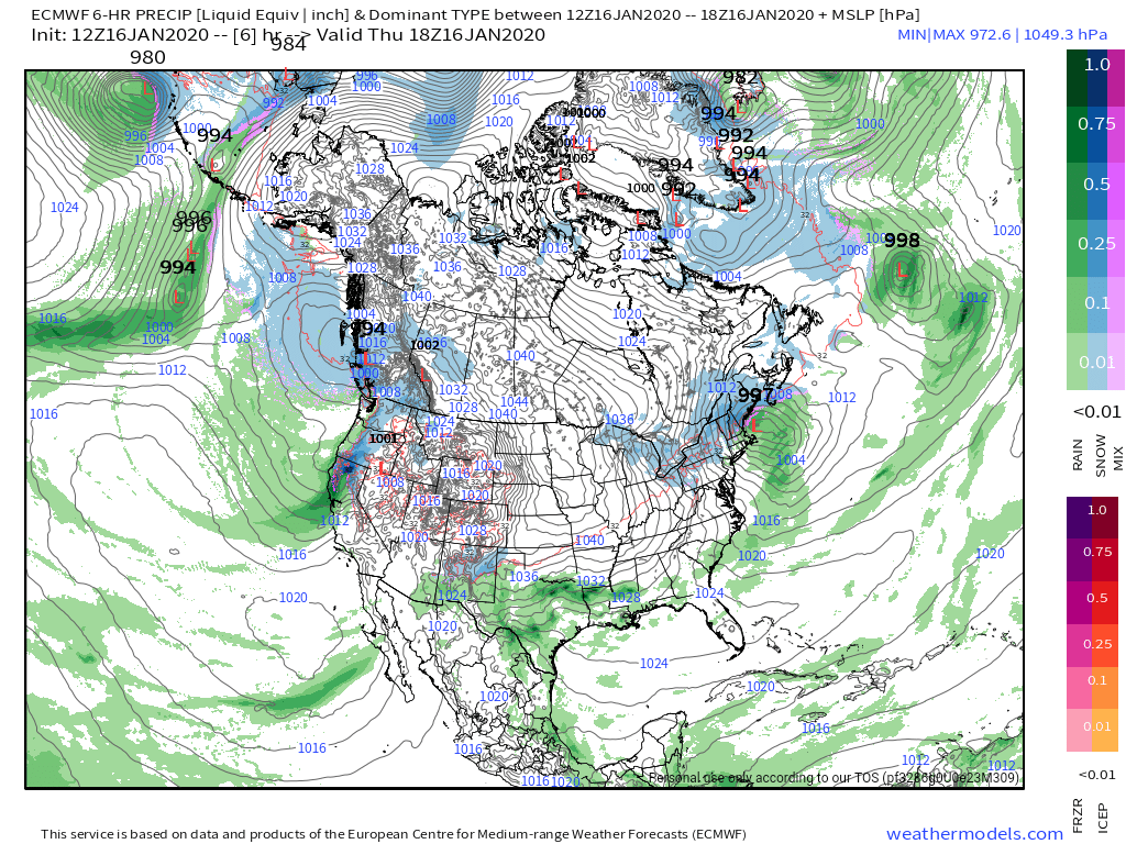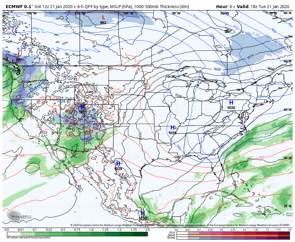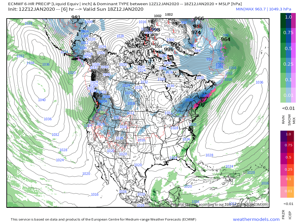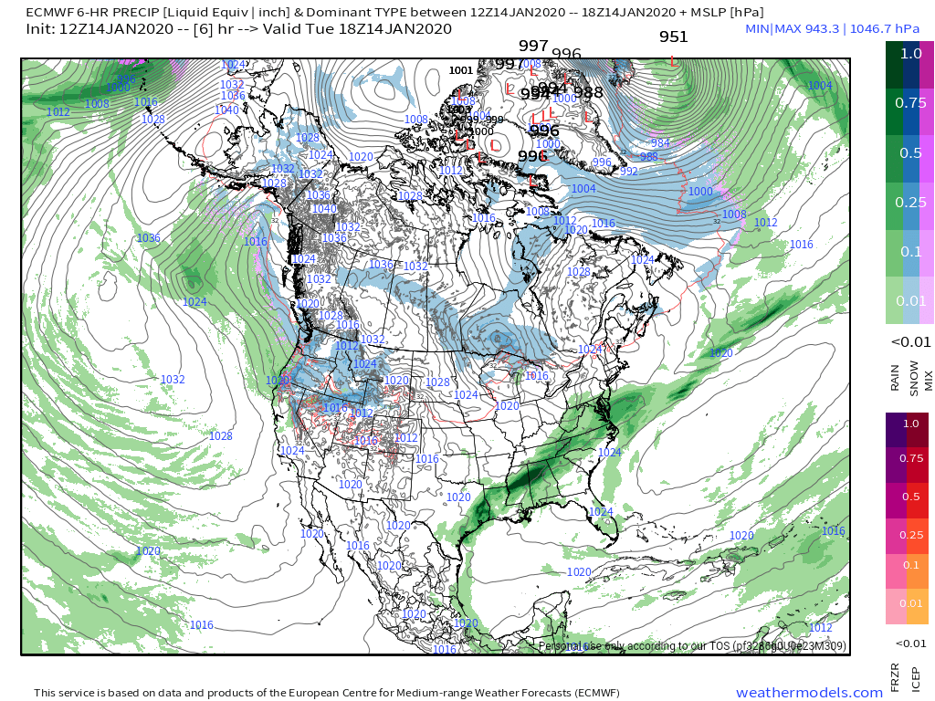 12z ECMWF MSLP/6HR/PRECIP 1/14/20