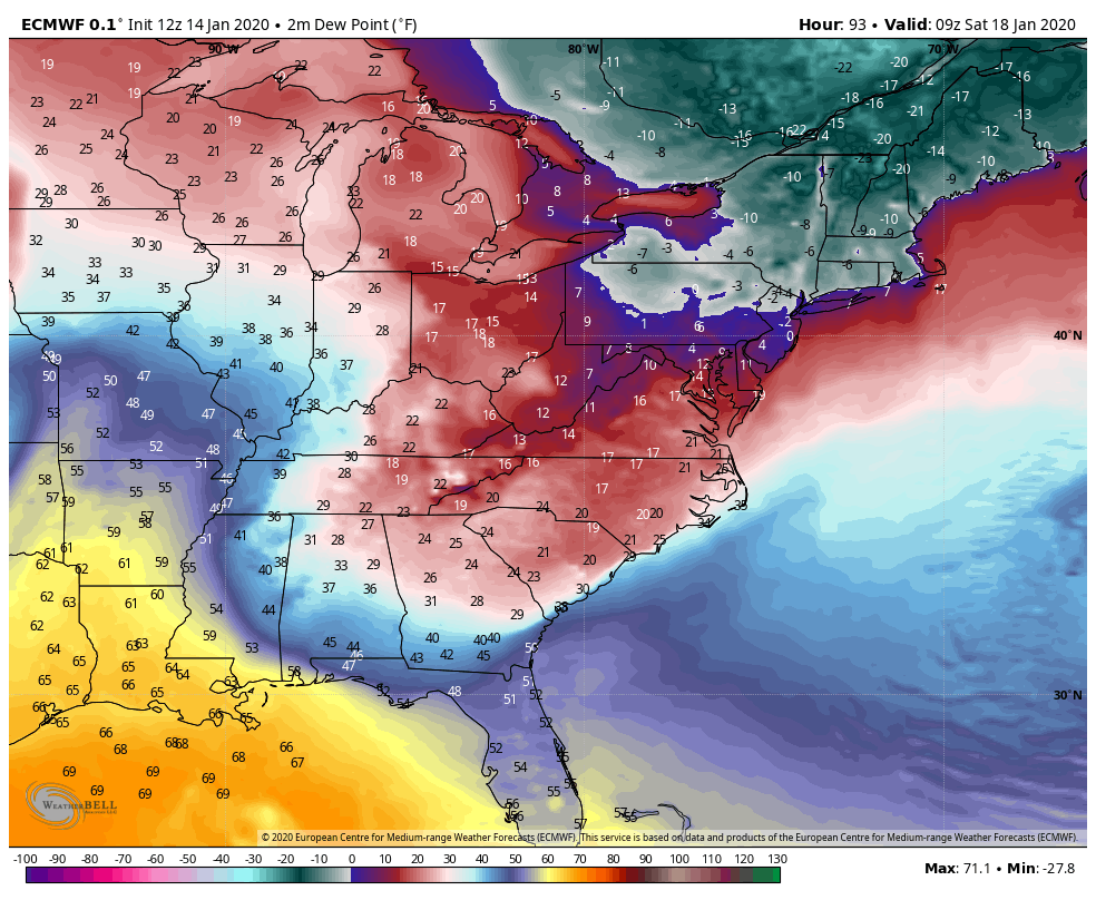 There is a big cold high that is ahead of this system, very cold, dry air mass in place overnight Friday. That’s a big player in low level cold for sleet, freezing rain, even after moving off the coast.