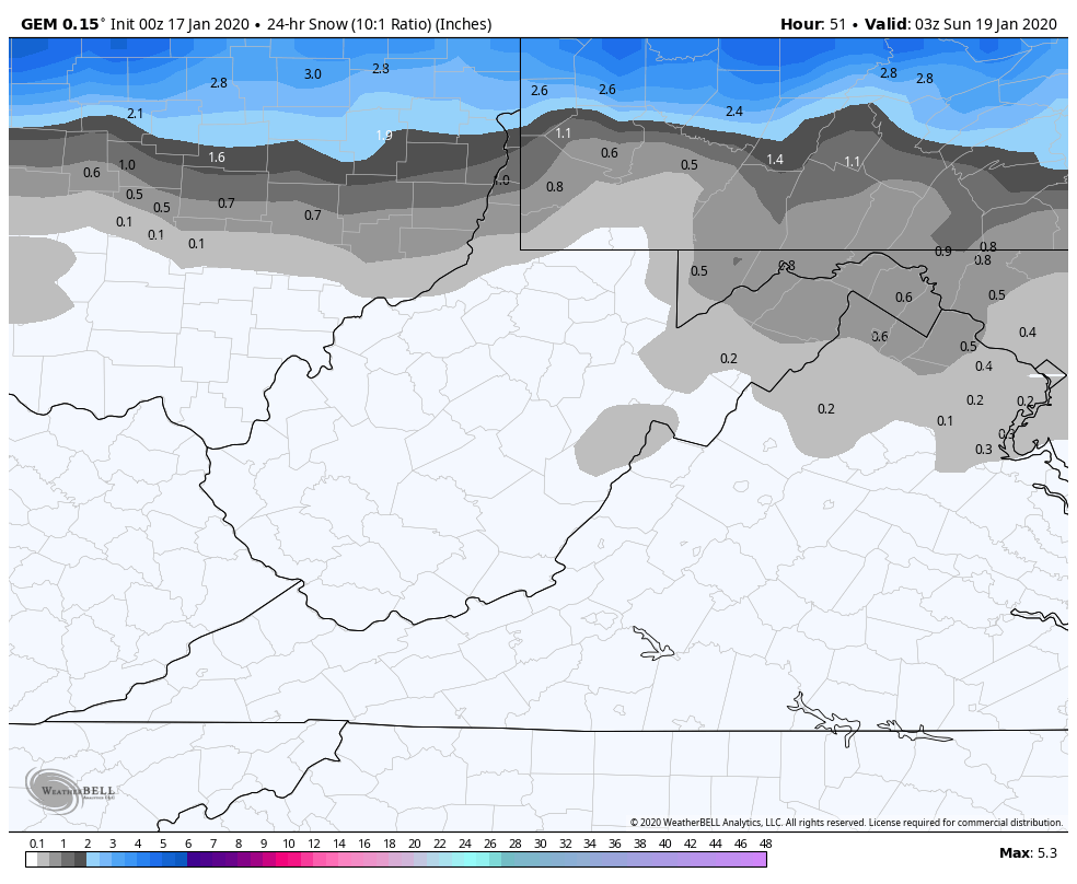 Snow thoughts are looking more 1-3/2-4″ vs 3-6/4-8″ when all is said and done Sunday.