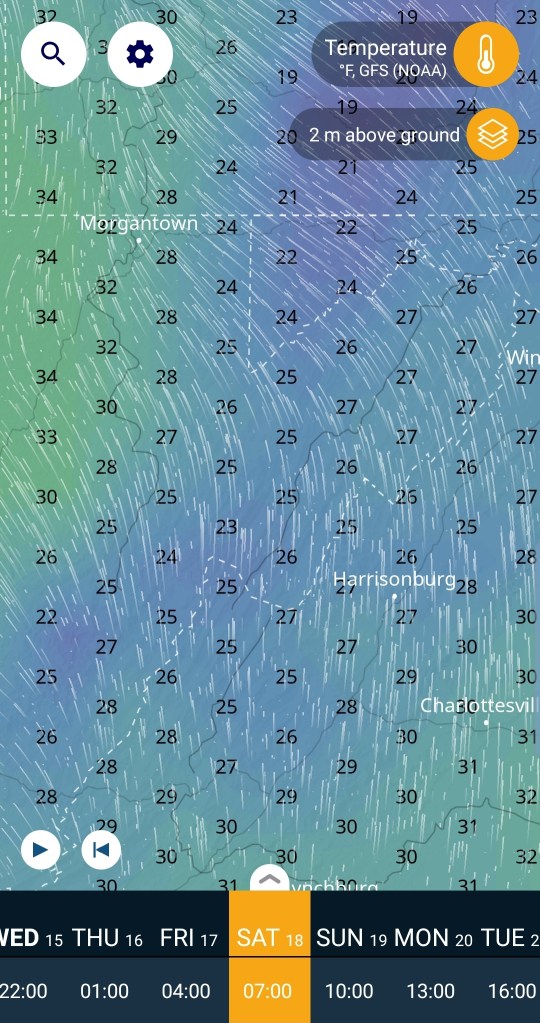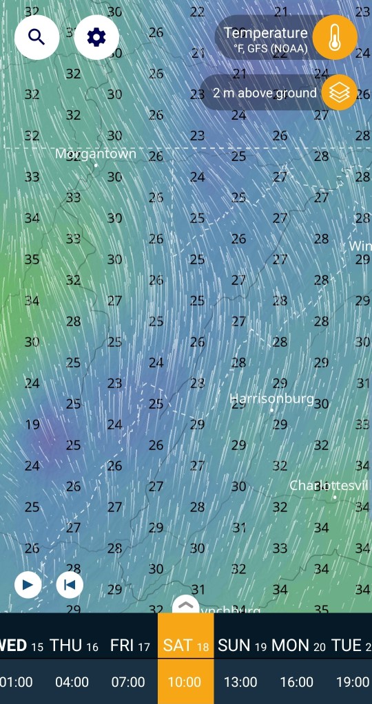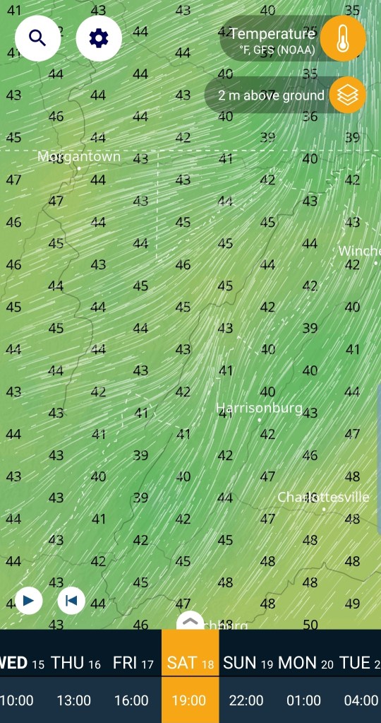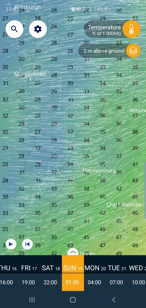The cold begins its push. By Thursday will see slowly falling temperatures through the day with any lingering precip turning into a few snow showers. Very minor event, Friday holds chilly, thanks to a big high to the north. That slides east, but is a big player in the late Friday night/Saturday system. Overnight Friday, temps hold steady to even rise overnight it appears. How much?? Those details are too far out. Typically the warm tongue plows up west of the Mts and over the Wv high ground in this setup. Model runs have trended a touch colder overall with the brunt of this system. The mild sector of the storm may be short lived in the Wv high ground and not at all across north central Garrett and points NE. Those details are still sketchy.. ..