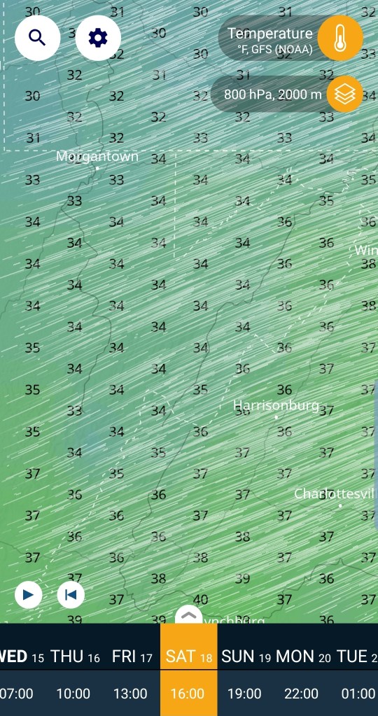 Precip type boundary from snow, sleet, freezing rain, how much of a surge or push the warm tongue has…do some areas have a lengthy period of plain rain?(best chance Wv high ground and west) those exact details are unknown. As of now, Friday night and Saturday need watched. Way to early to say snow amounts, vs sleet/freezing rain, plain rain…… This event preludes a much stronger cold push of air….