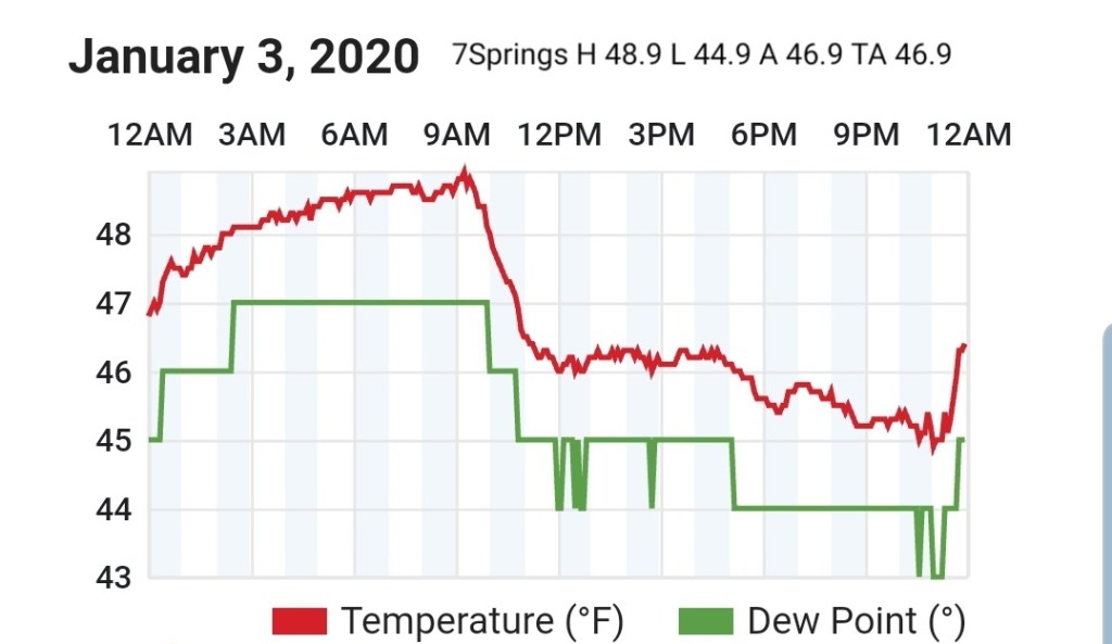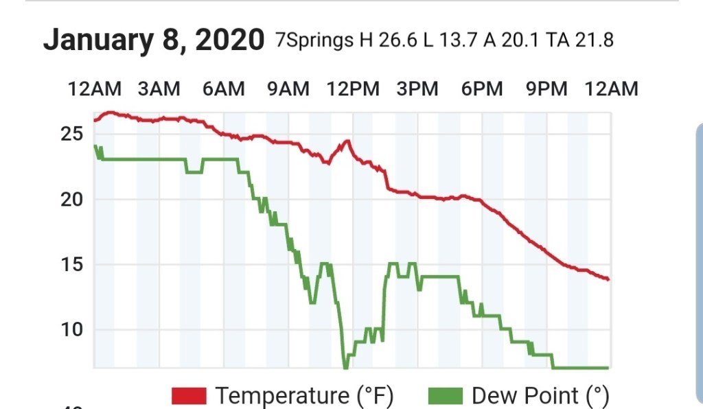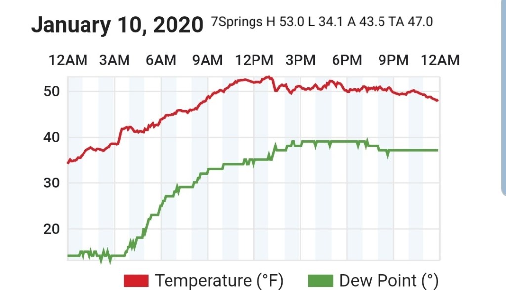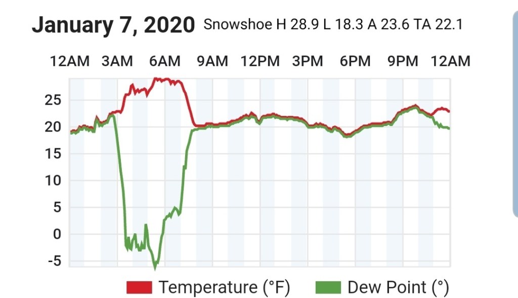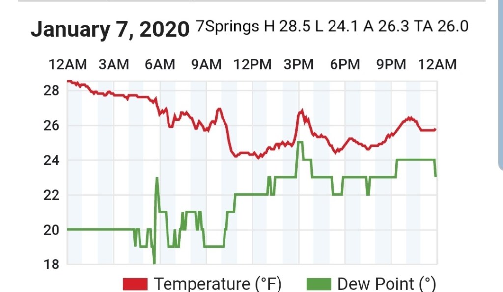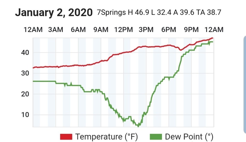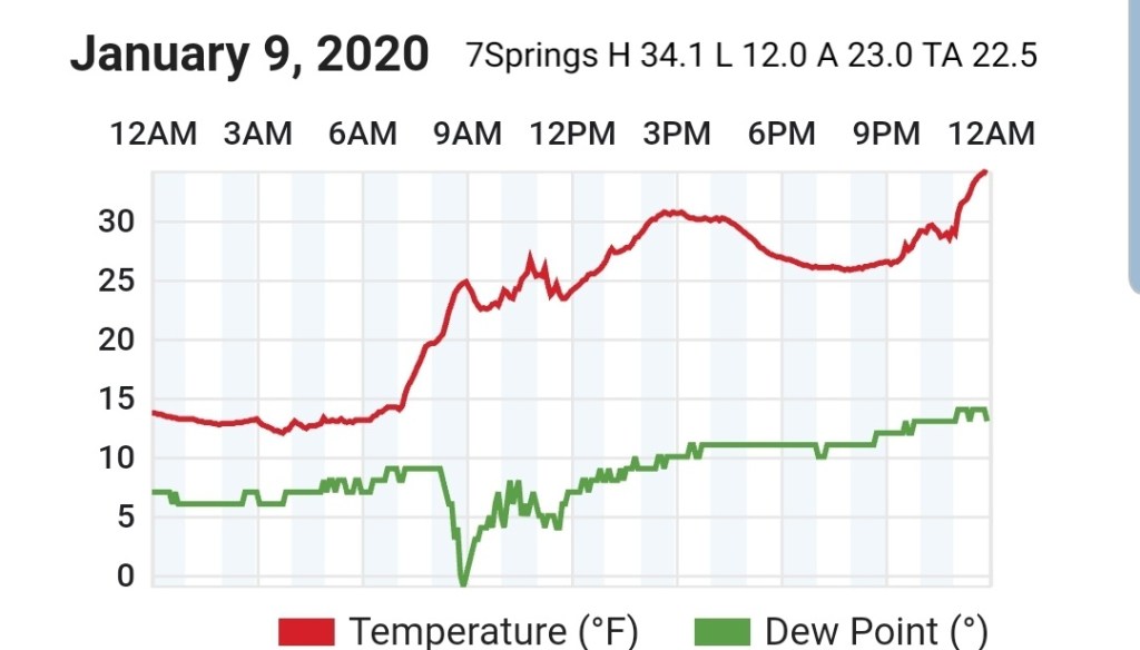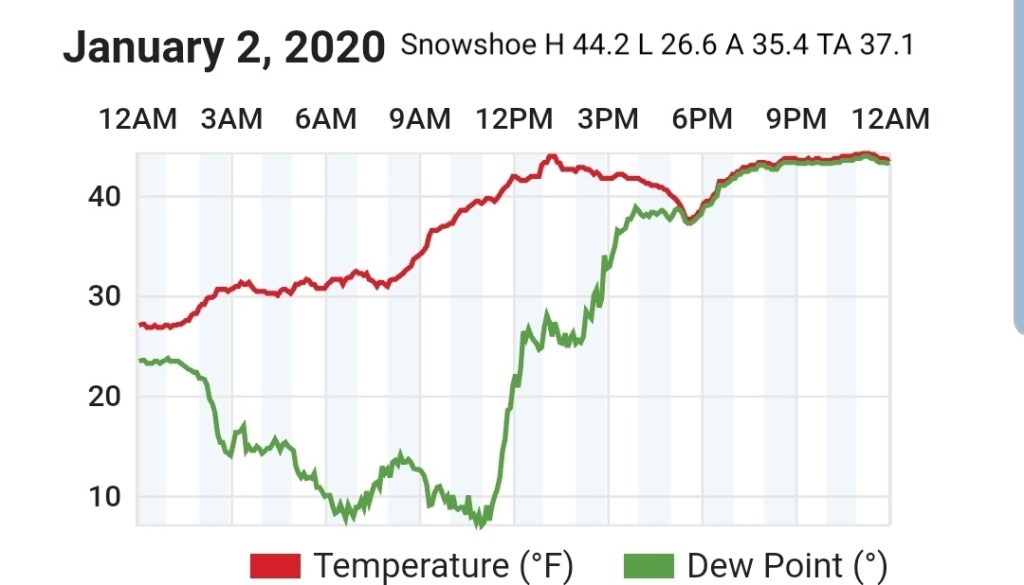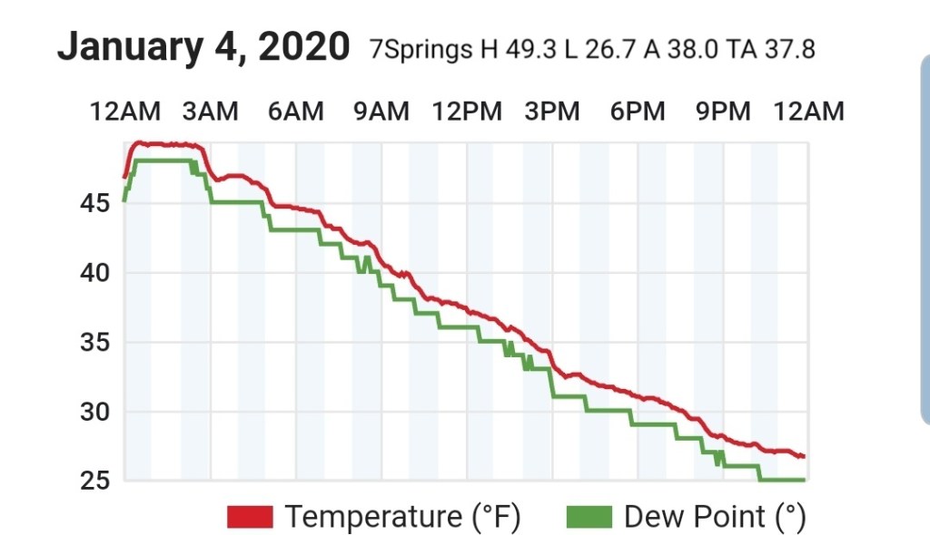 Beyond this, the ridge east, trough west pattern really looks to dominate and snow changes are very low, at best briefly on the tail end of a rain system before rapidly warming as it passes by. Temps and dewpoints both look to be up in the coming pattern beyond the 9th. Area resorts really need to take advantage of the colder snow making periods next week, a few optimal nights look to present themselves before the coming lengthy warm spell.