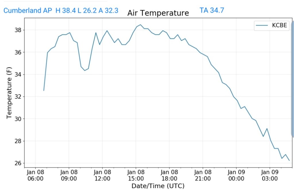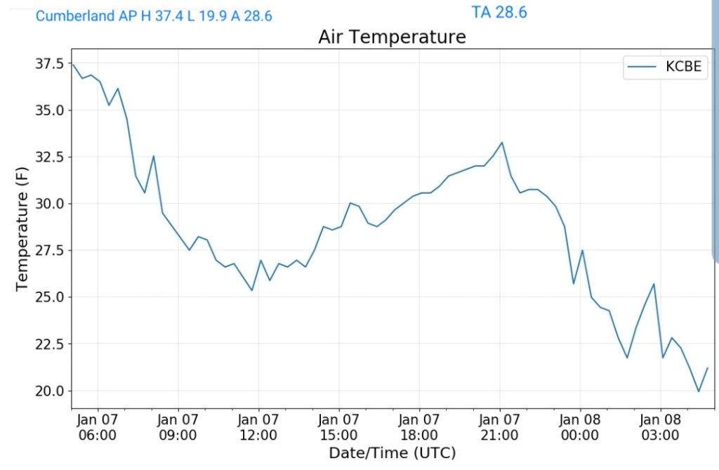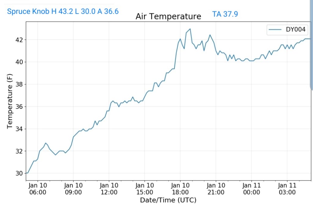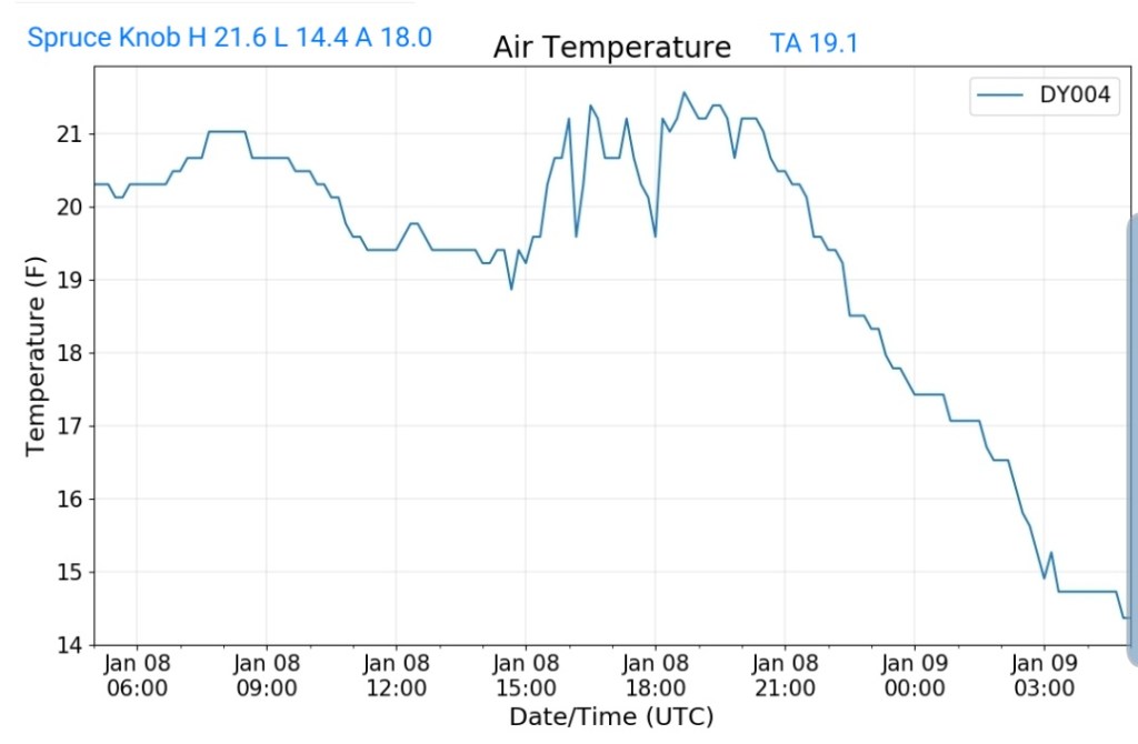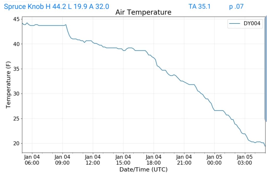 The overnight front last night came through mainly dry, with the exception of the northern Alleghenies seeing the best coverage of some light snow shower activity. Temps also rose some overnight ahead of the front, then leveled off as it passed, and now steady to slowly dropping a few degrees through the day with some gusty winds .