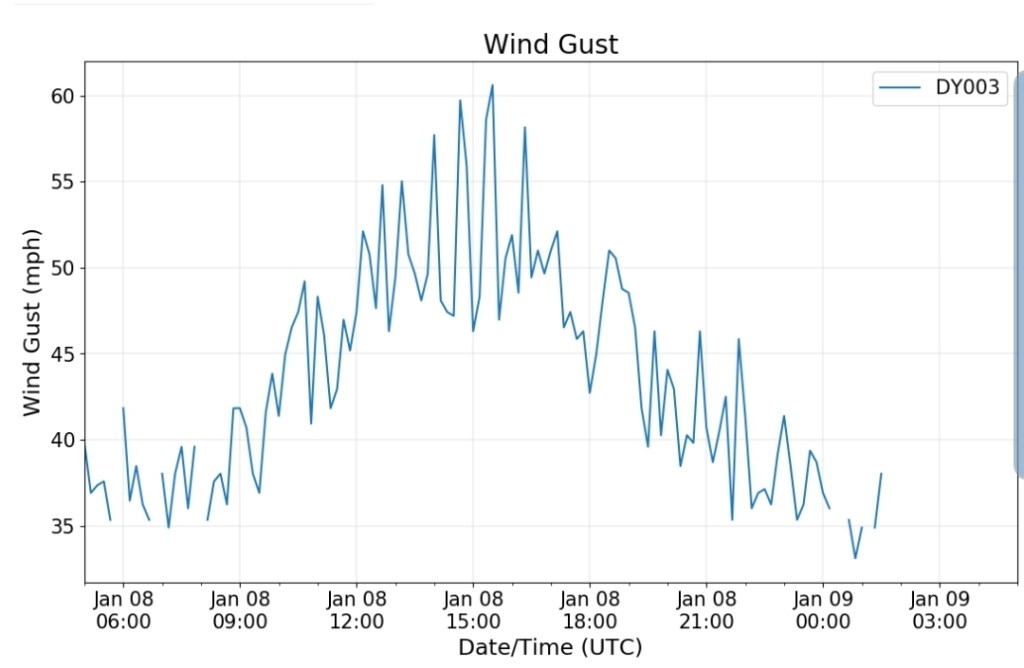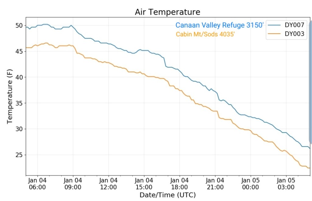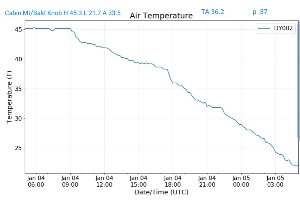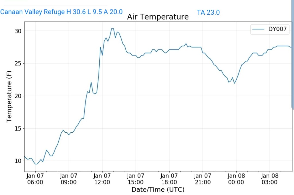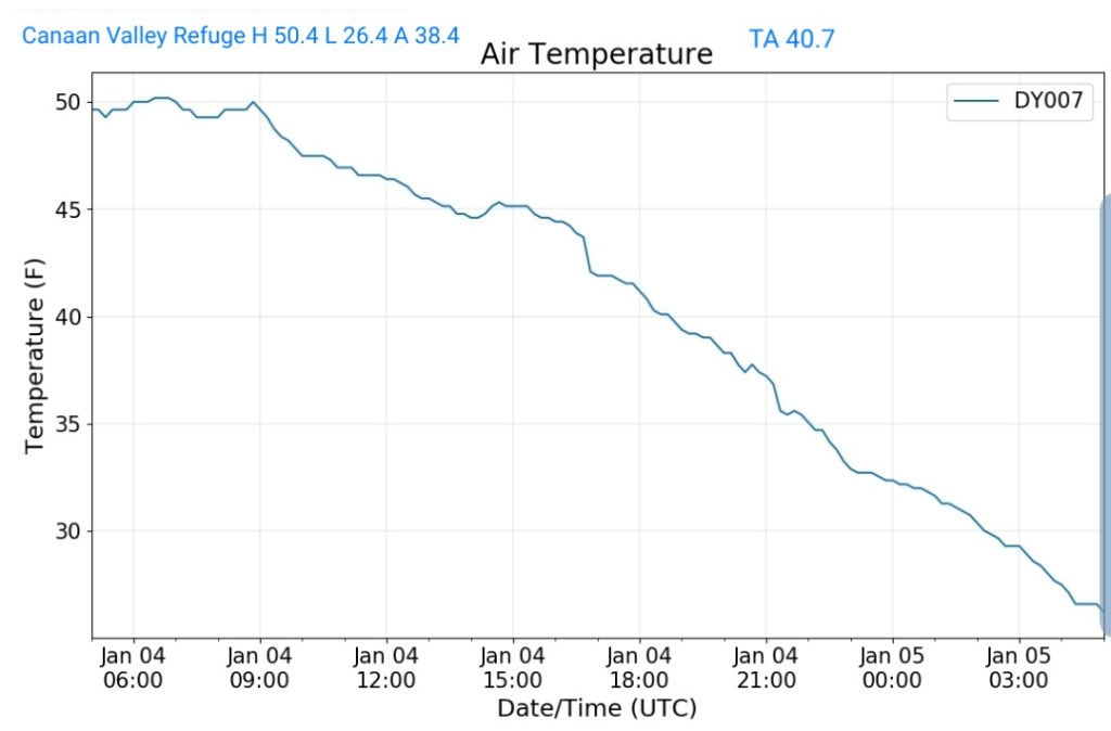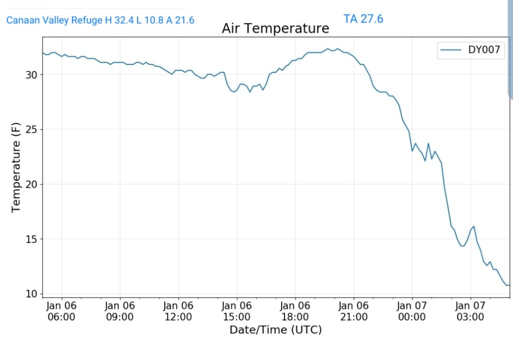 The overnight front last night came through mainly dry, with the exception of the northern Alleghenies seeing the best coverage of some light snow shower activity. Temps also rose some overnight ahead of the front, then leveled off as it passed, and now steady to slowly dropping a few degrees through the day with some gusty winds .