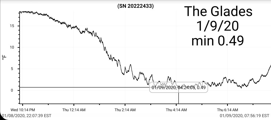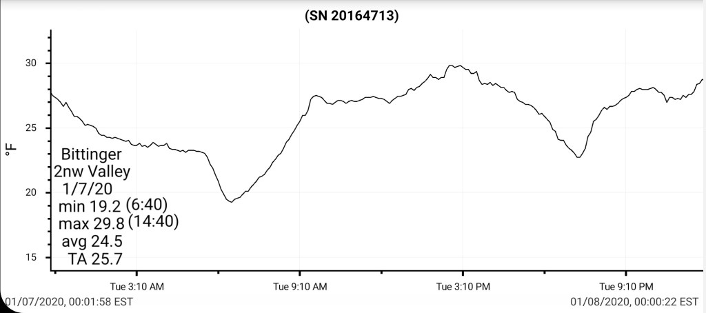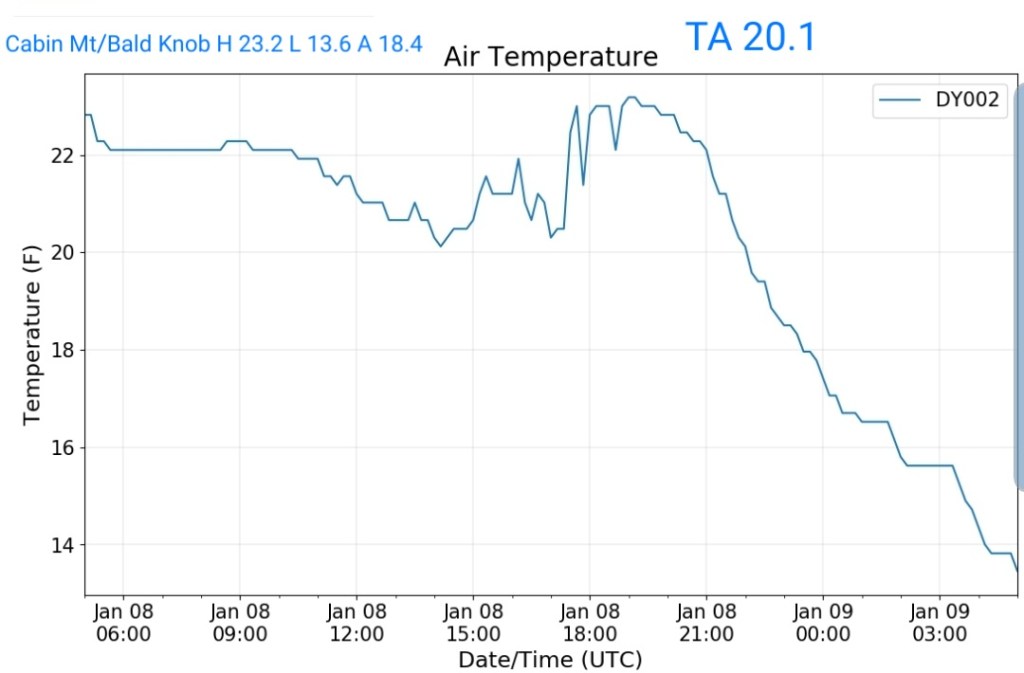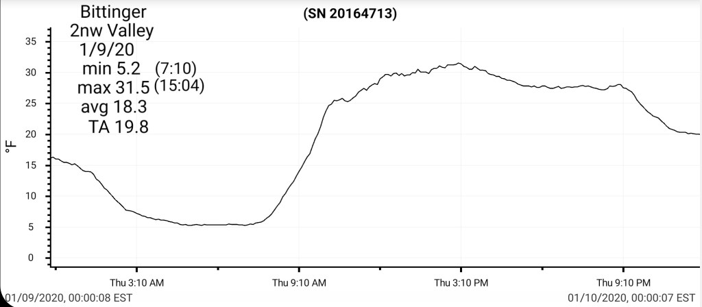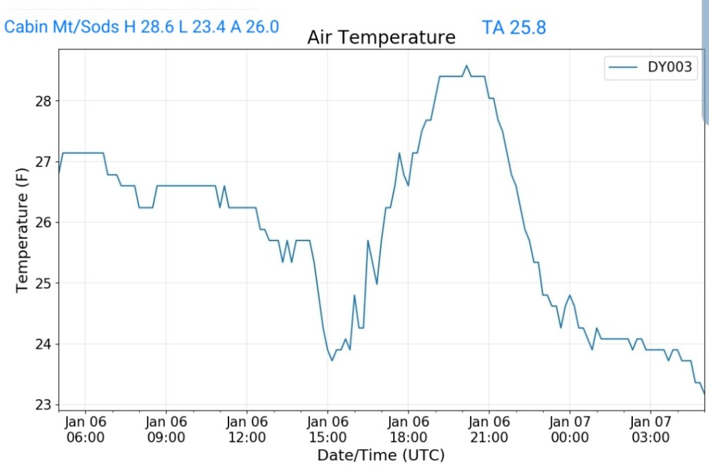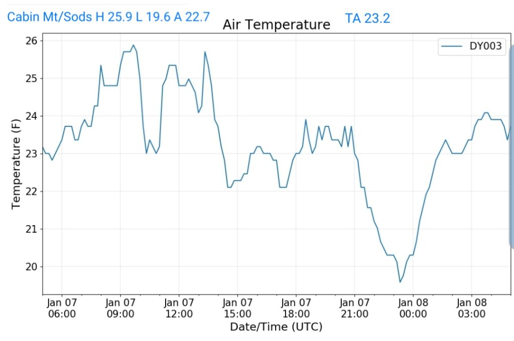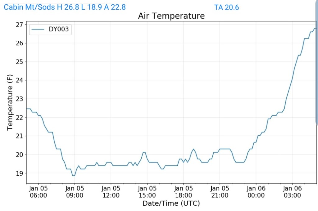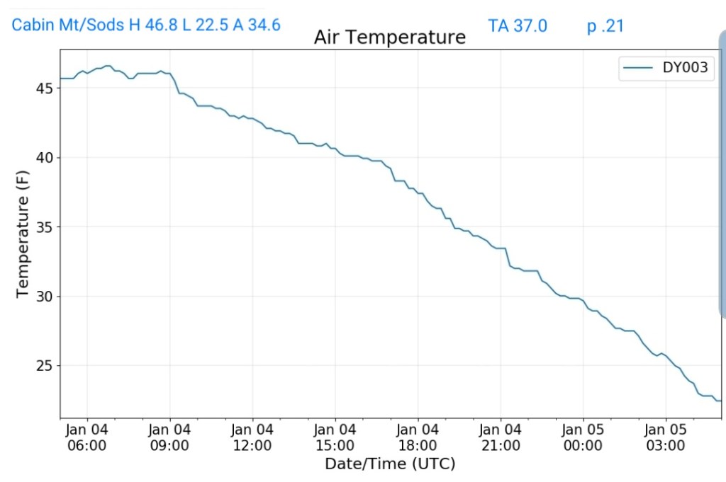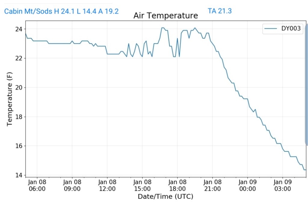 That combo shouts that some of the coldest valleys drop below 0 briefly. High ground may hold teens to around 20.