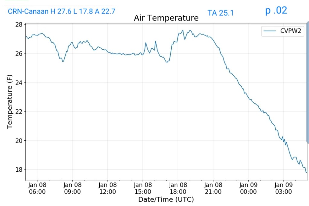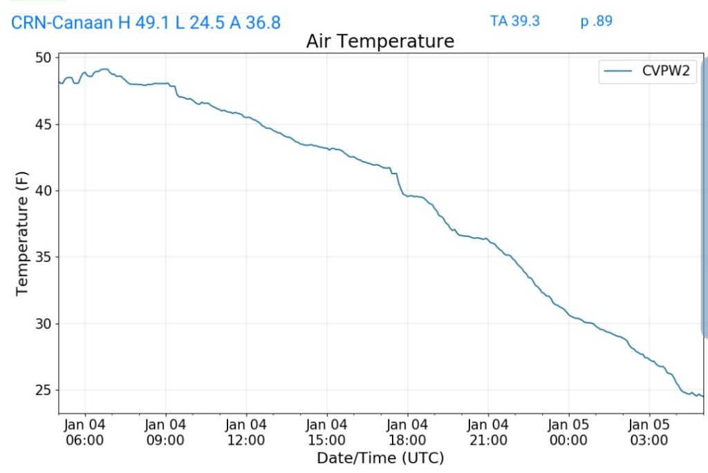 10pm- snow falling, roads in poor condition. Dave Lesher over 6″ through 10pm at Canaan Heights. Will add additional info tomorrow. Be safe, enjoy the snow.