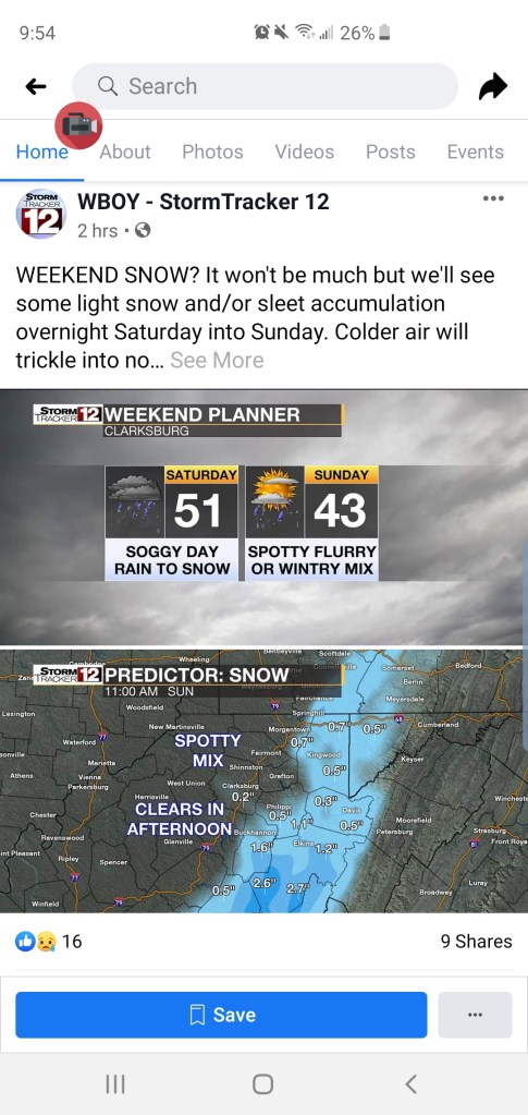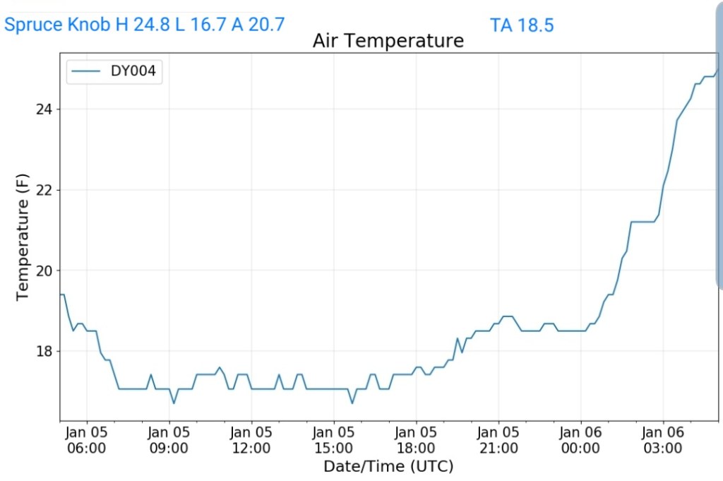 Snow overnight, heavier south. Few flurries left this a.m and there was patchy freezing drizzle. Brief but it existed this morning with temps lower to mid 20s. Breezy today as well. Fog and rime after the snow in some of the high Wv ground .