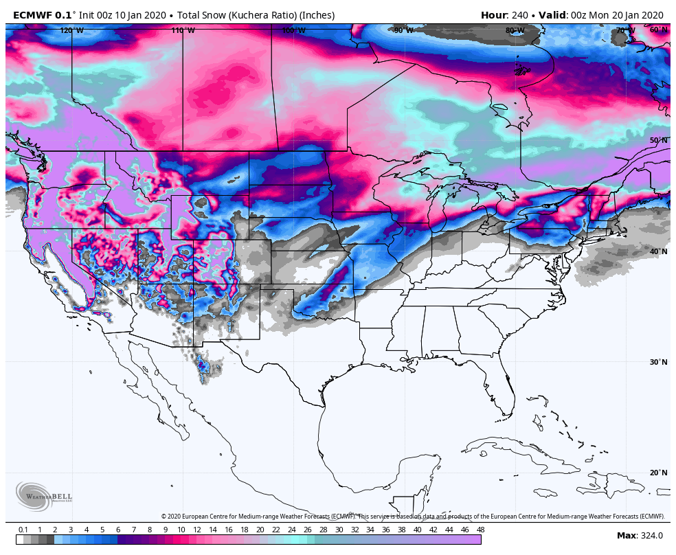 Snowfall off the ECMWF next 10 days