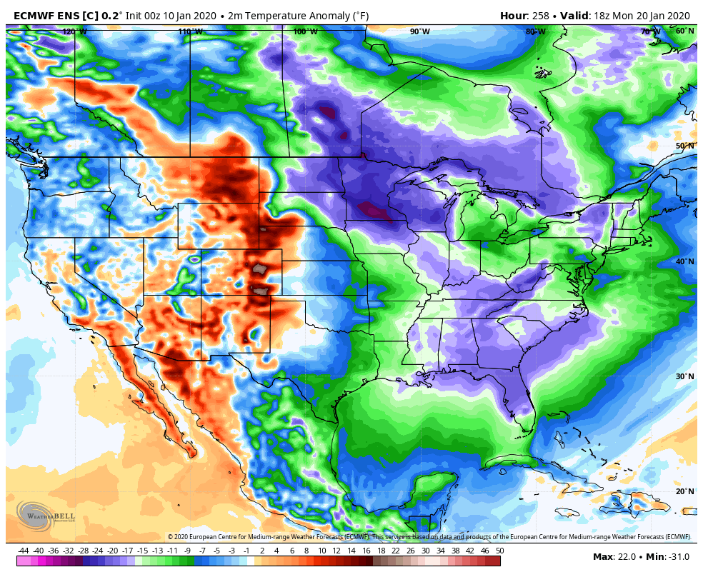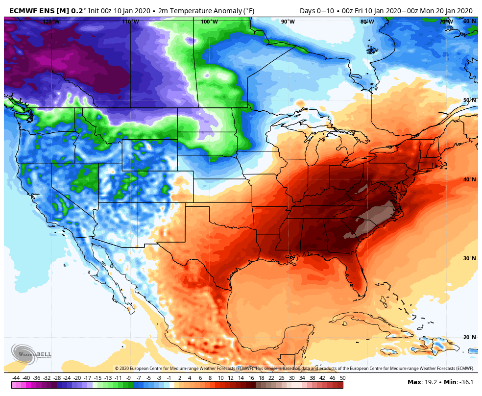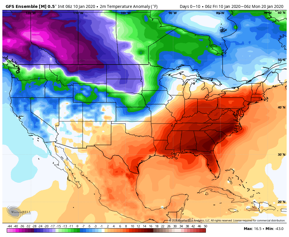 Ensembles(Ensembles will not show an extreme 10 days out, especially in a pattern with so much warmth vs cold on the table. 51 members averaging themselves out. It can show a trend though)