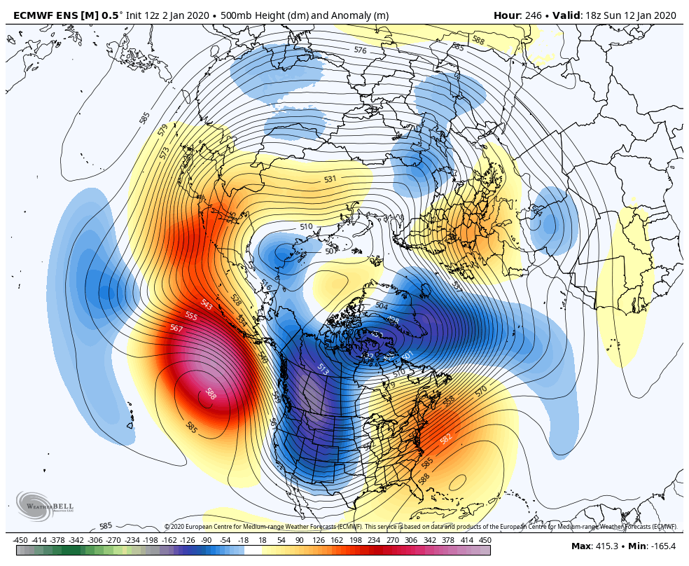 Beyond that, the dominance looks to be ridge east, trough west. Maybe some system cuts through with some wintry weather in the heart of the overall mild pattern… that is possible, but sustained winter is not upon us.