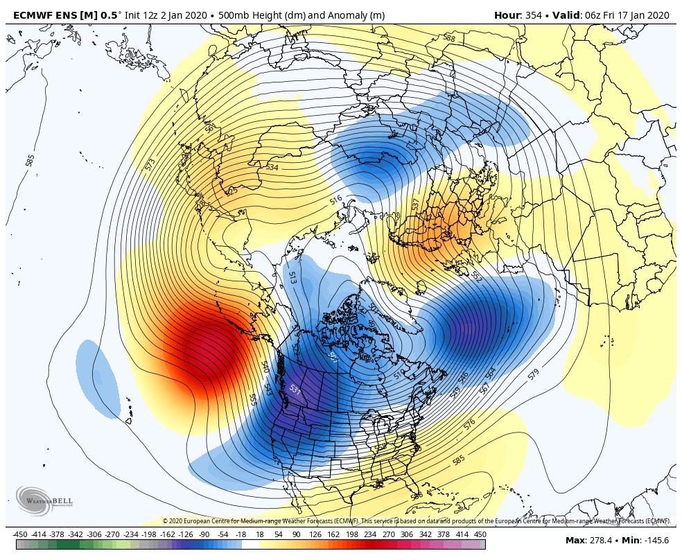Then at 354, still ugh, but that is some improvement. The trough leans positive and the ridge pokes into Alaska some. That can finally feed some cold back in, in yet a overall mild pattern.