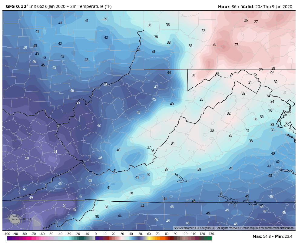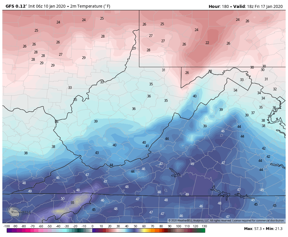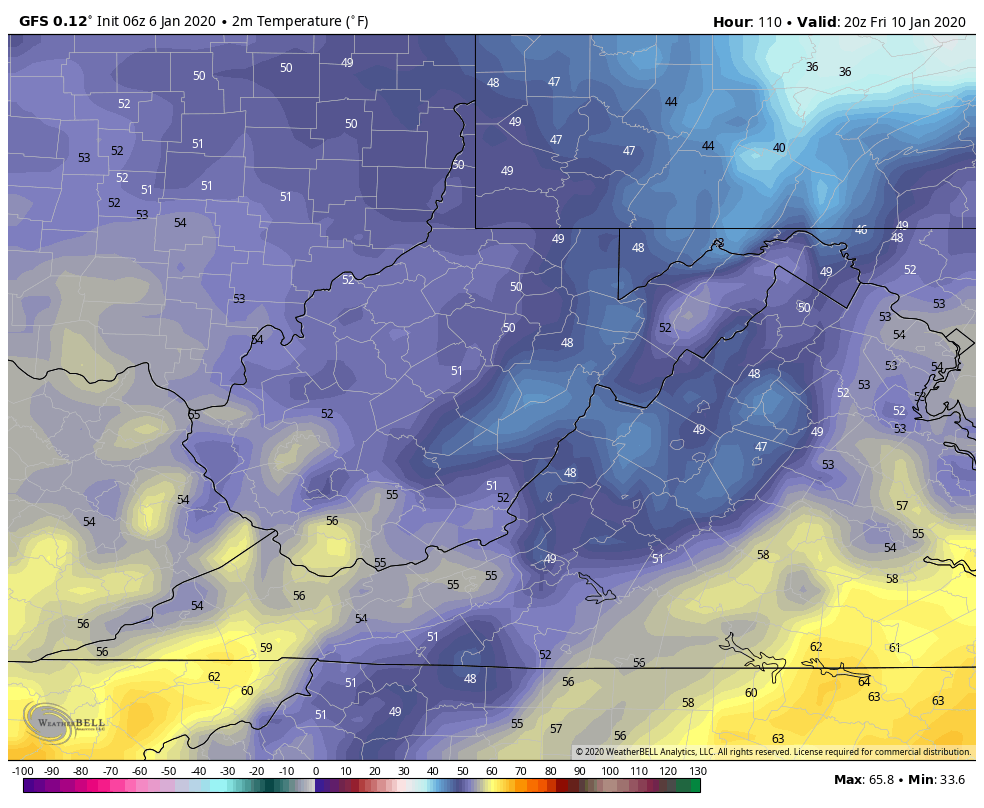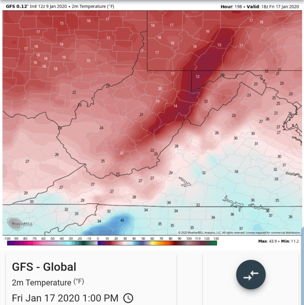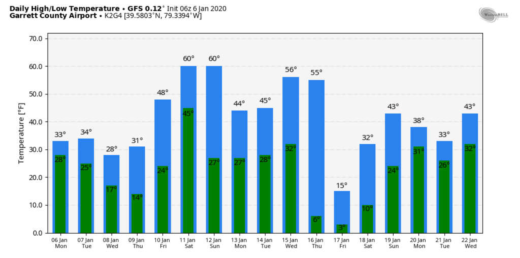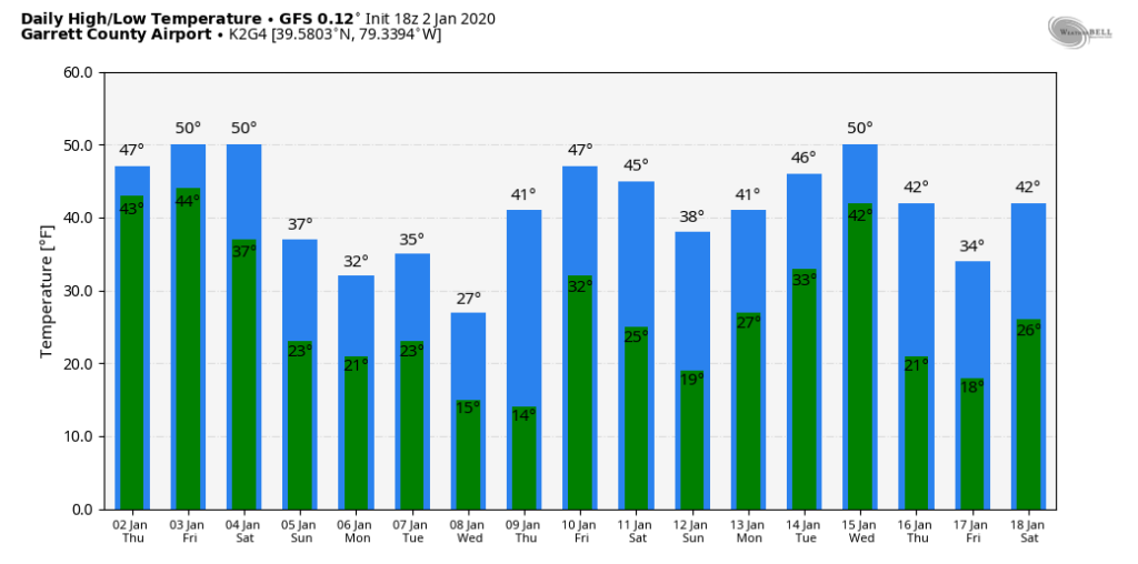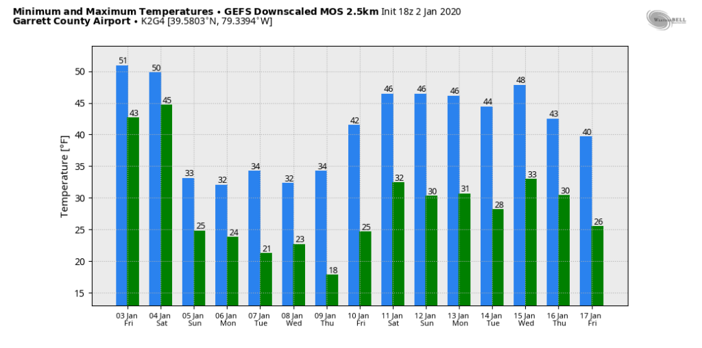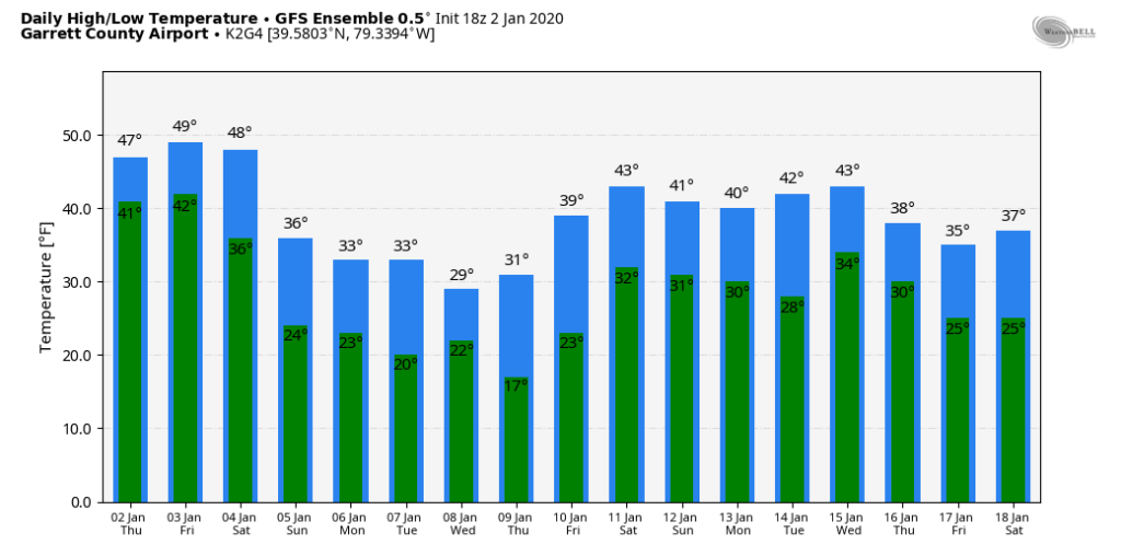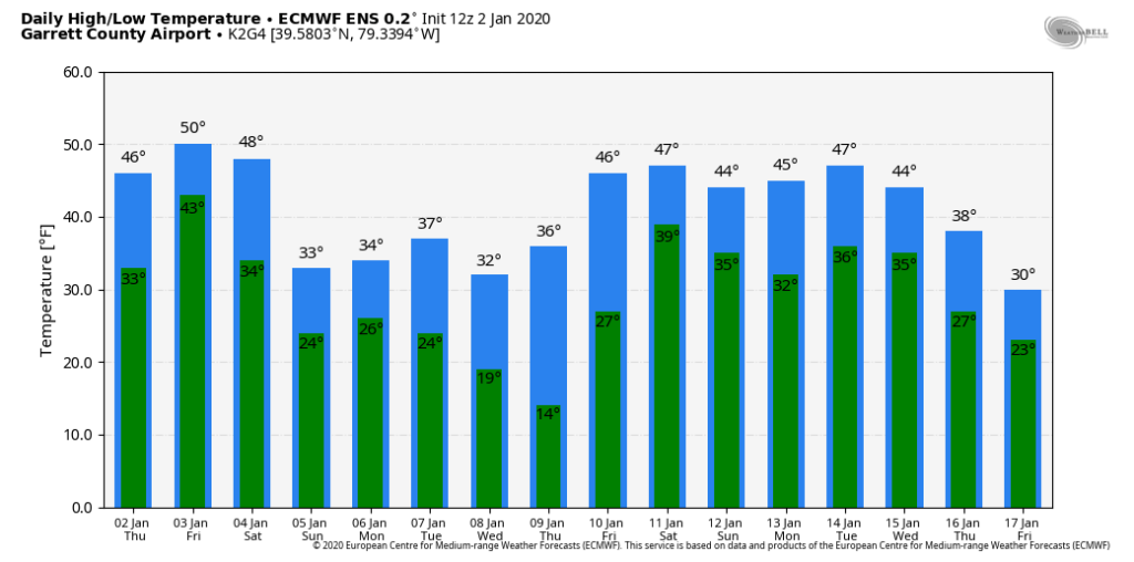 Temps off the 12z ECMWF ensemble mean. 12z GEFS mos, 12z GFS op, 12z GFS ensemble for Garrett. That 4-5 day window is it. Then beyond that, likely these temp numbers will be under done a few days. Likely a few 55°-60° days will show up.