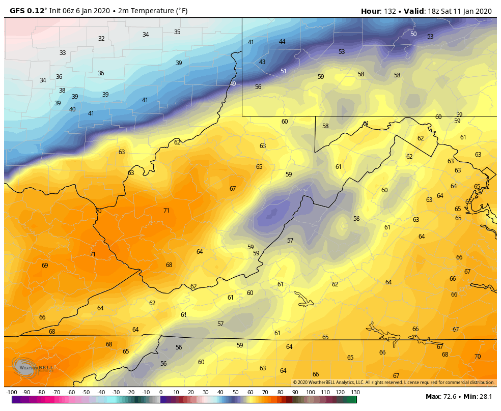 A sharp cutoff from warm to colder exist Saturday, just to our NW, some wintry precip exist up there….But we are on the wrong side of that boundary…