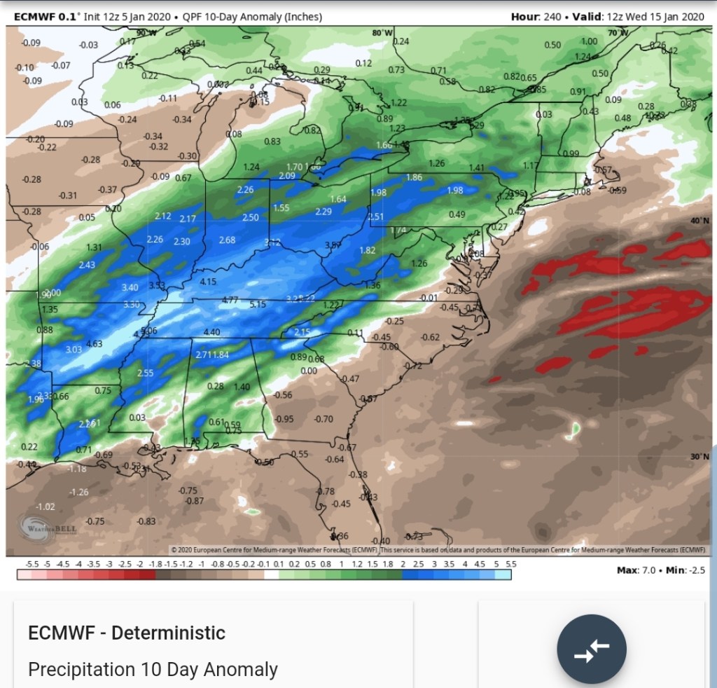 Upcoming 10 day precip anomalies off the ECMWF