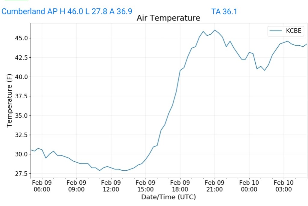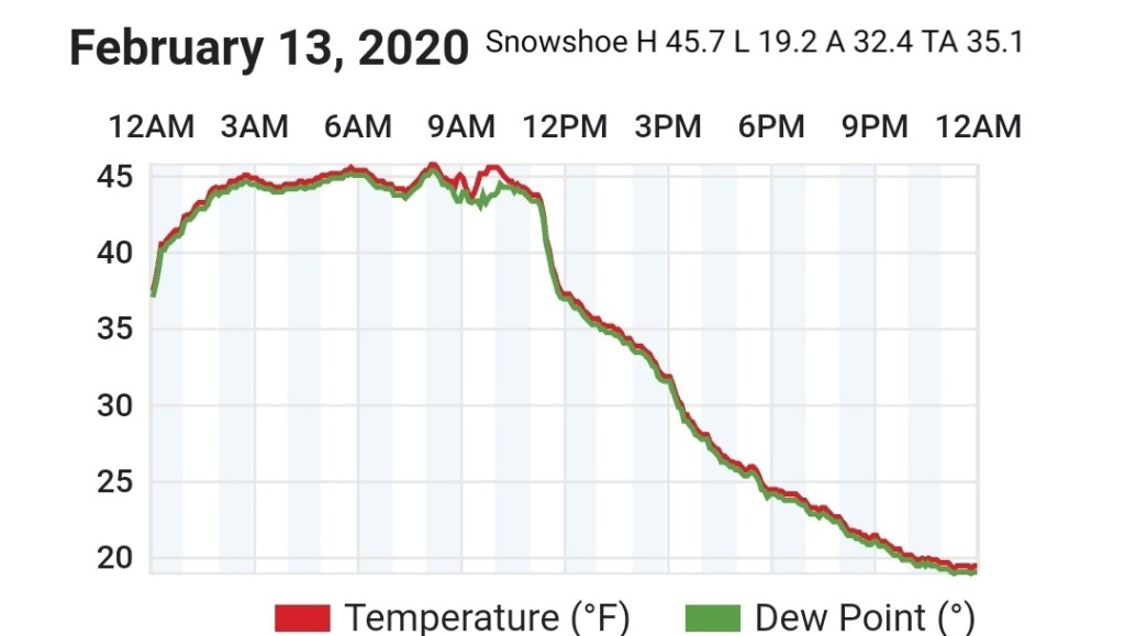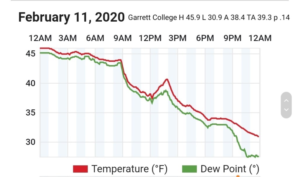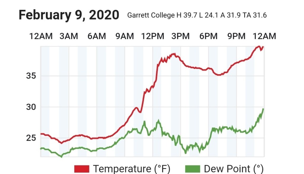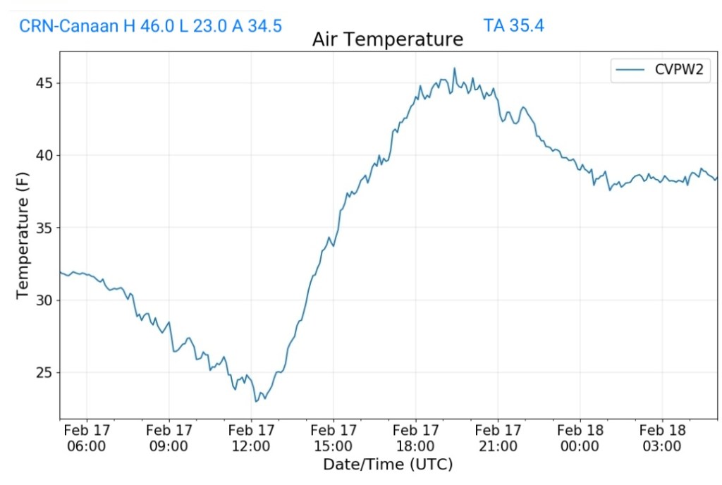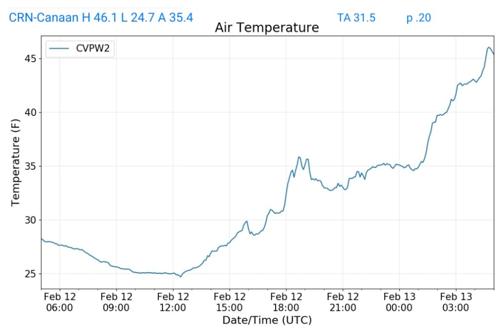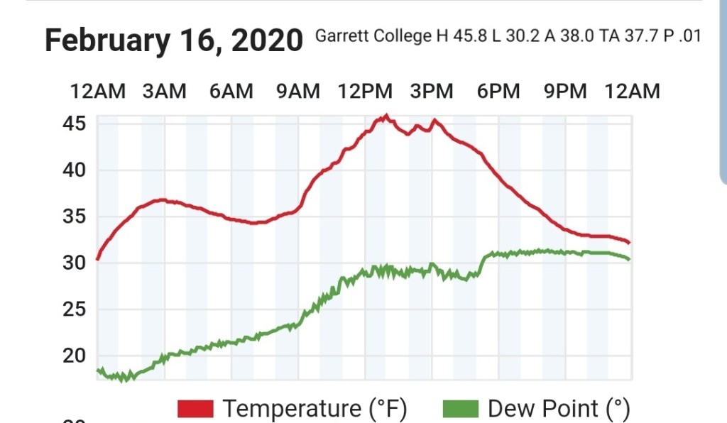 MIN[30.2]—MAX[45.9]—AVERAGE MEAN[38.0]—TRUE AVERAGE[35.7]—PRECIP[.08]