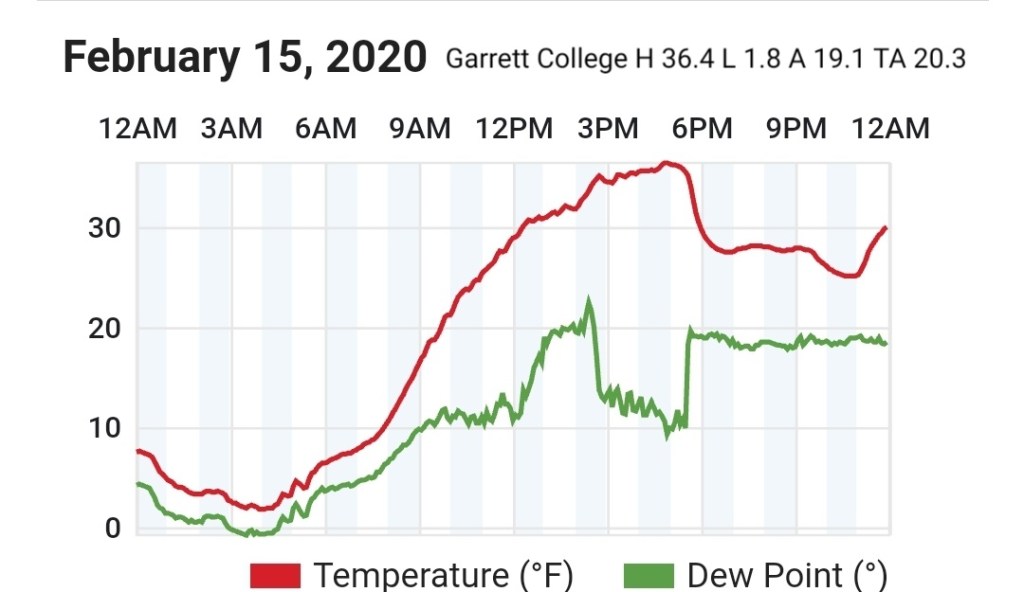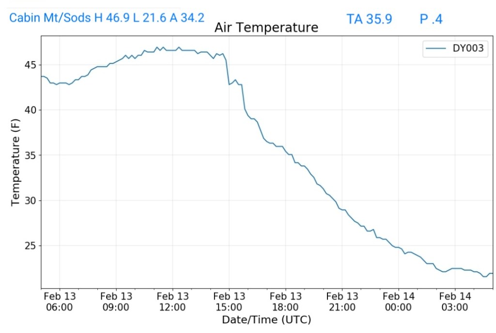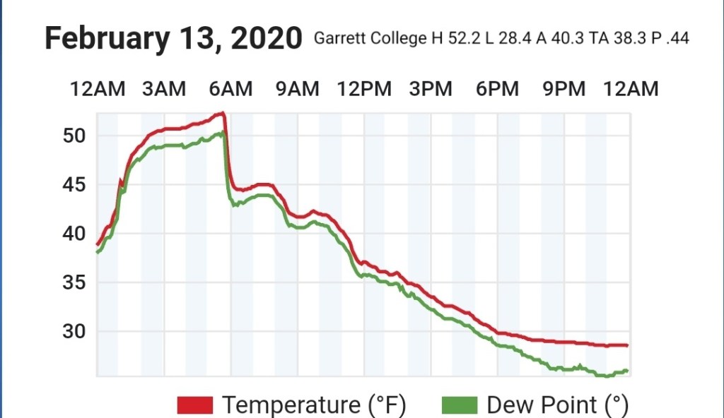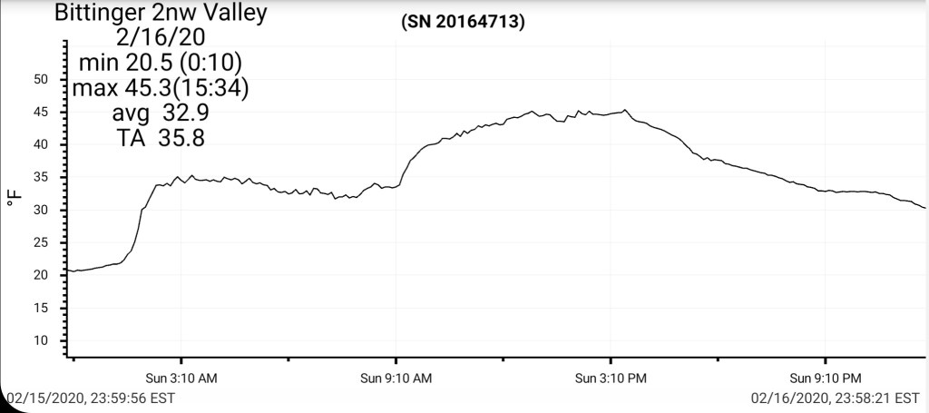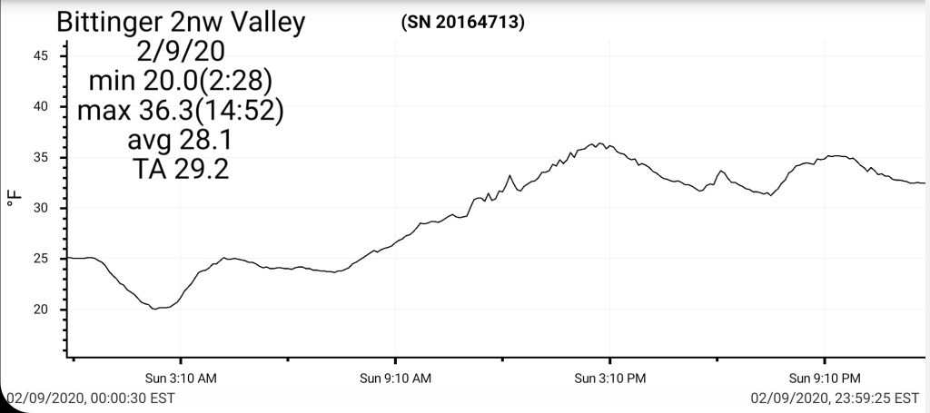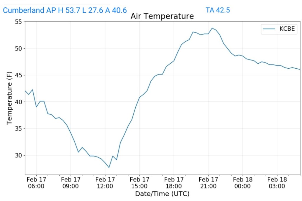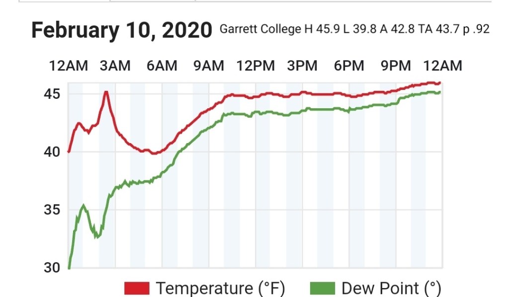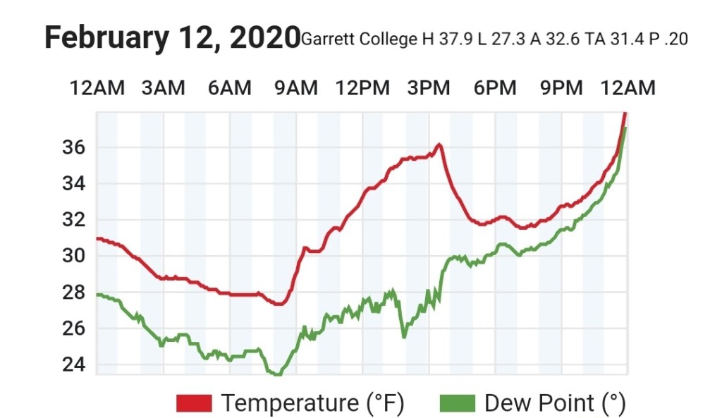 MIN[30.2]—MAX[45.9]—AVERAGE MEAN[38.0]—TRUE AVERAGE[35.7]—PRECIP[.08]