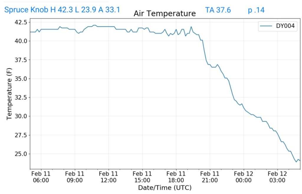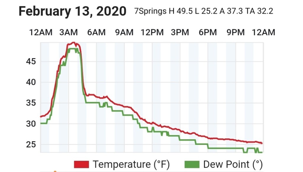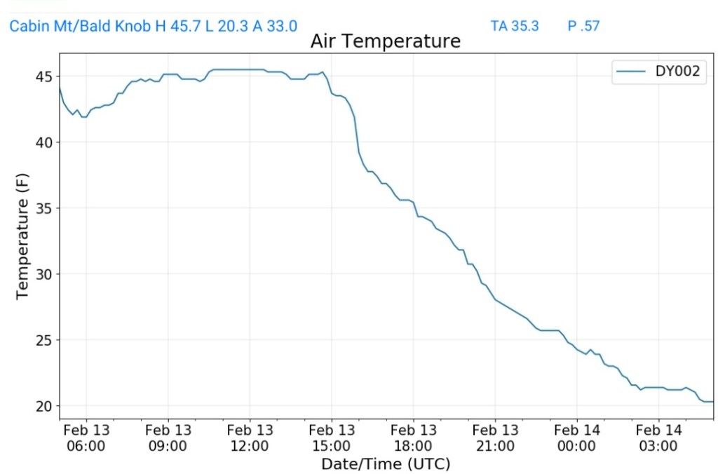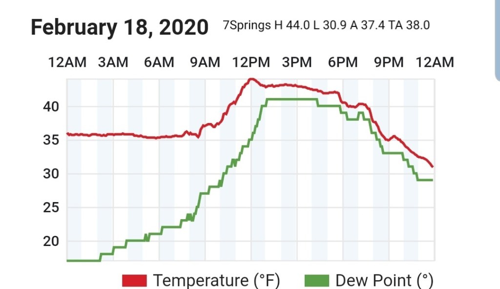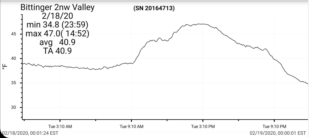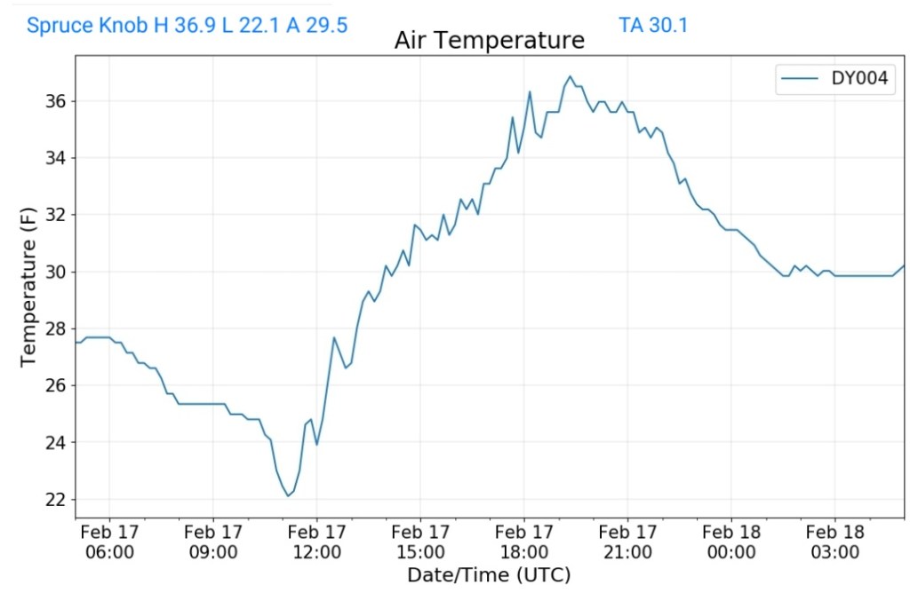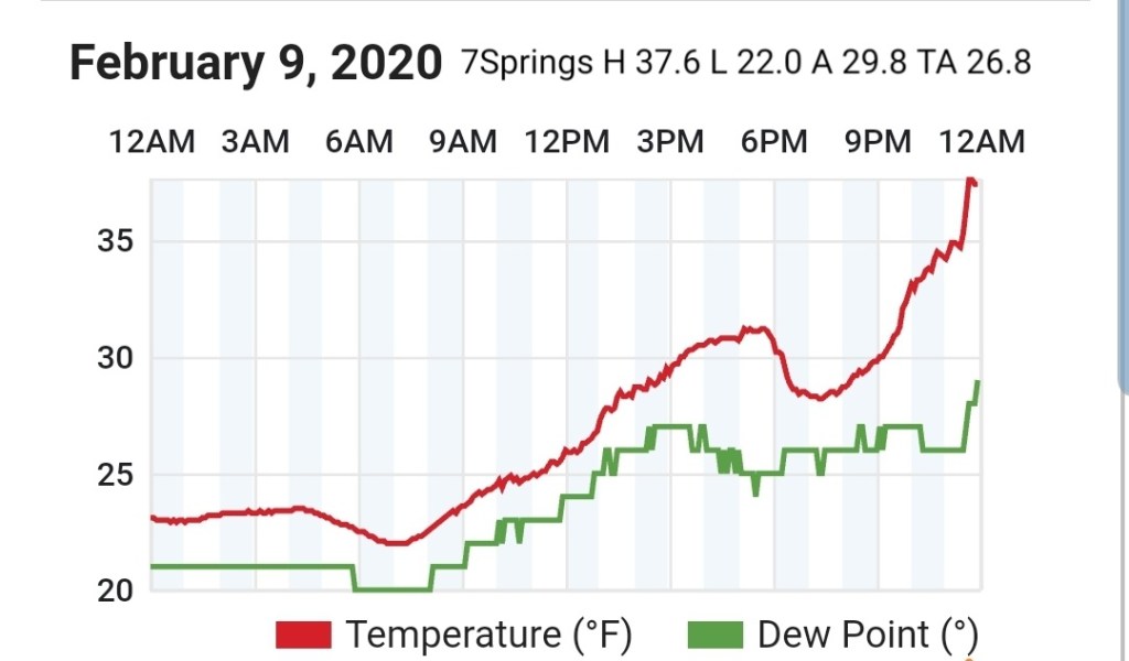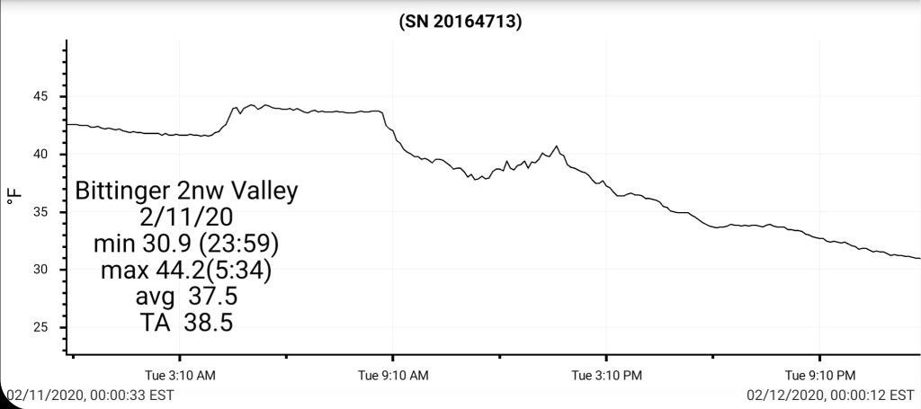 MIN[30.2]—MAX[45.9]—AVERAGE MEAN[38.0]—TRUE AVERAGE[35.7]—PRECIP[.08]