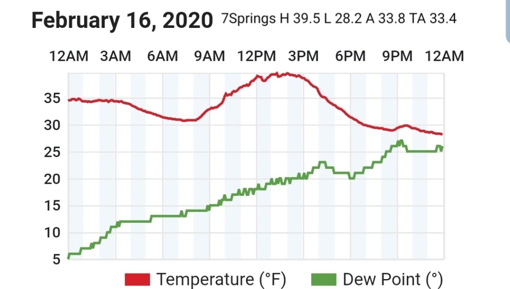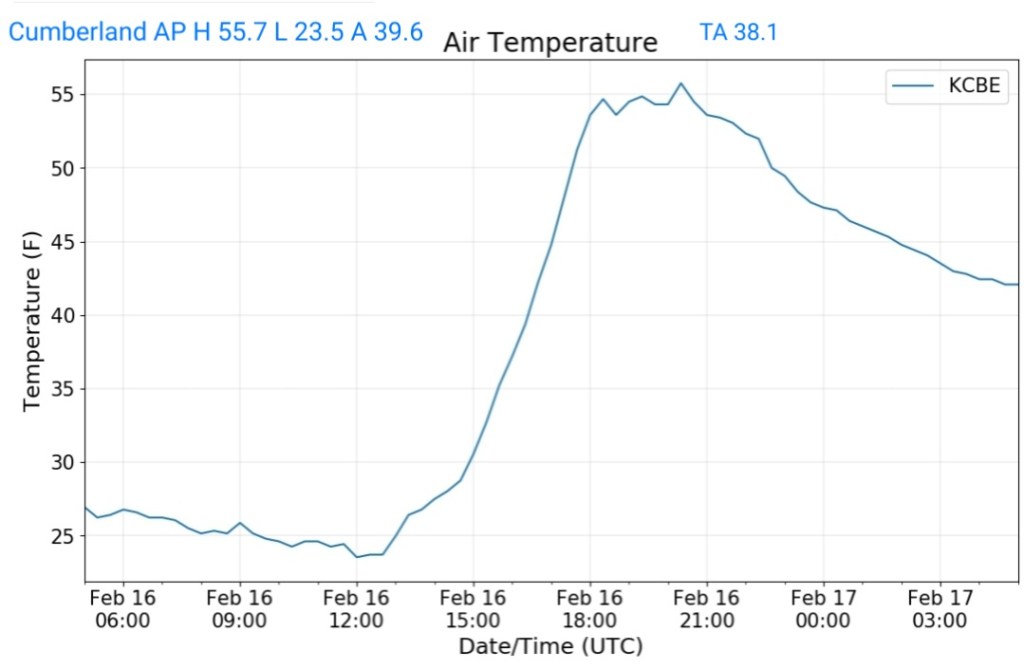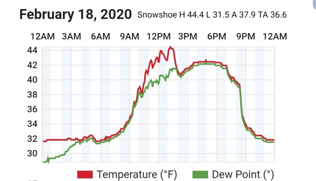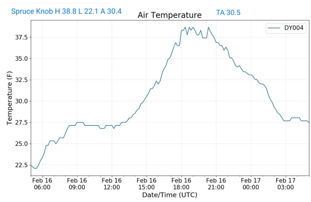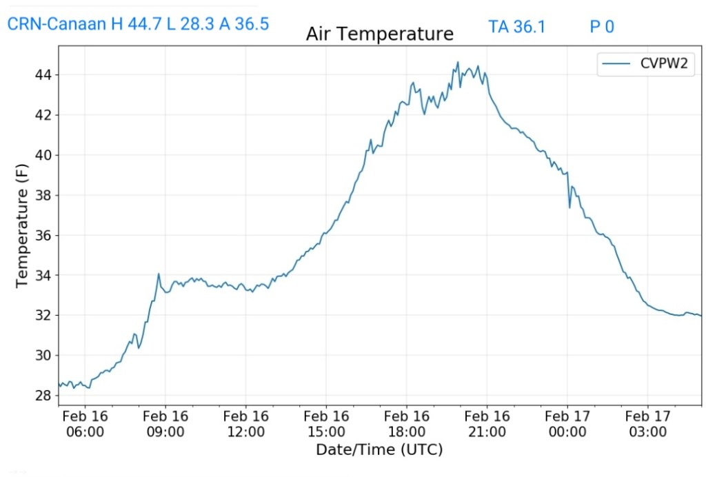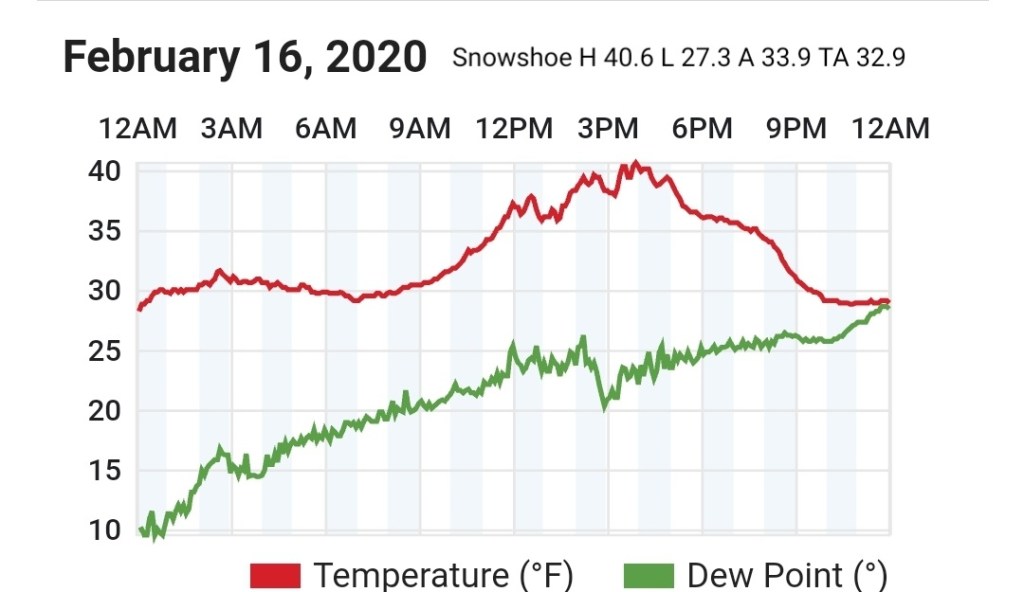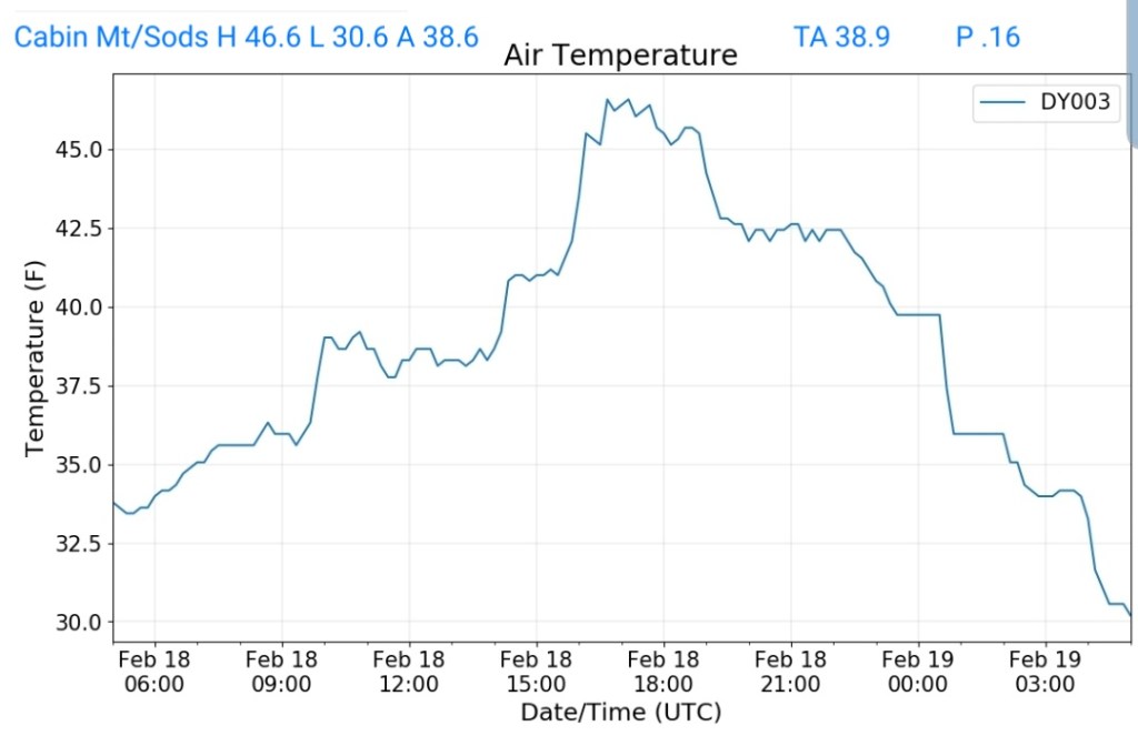 MIN[30.6]—MAX[46.6]—AVERAGE MEAN[38.6]—TRUE AVERAGE[38.9]—PRECIP[.16]