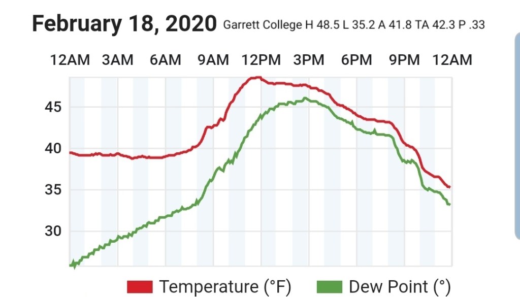 MIN[35.2]—MAX[48.5]—AVERAGE MEAN[41.8]—TRUE AVERAGE[42.3]—PRECIP[.33]